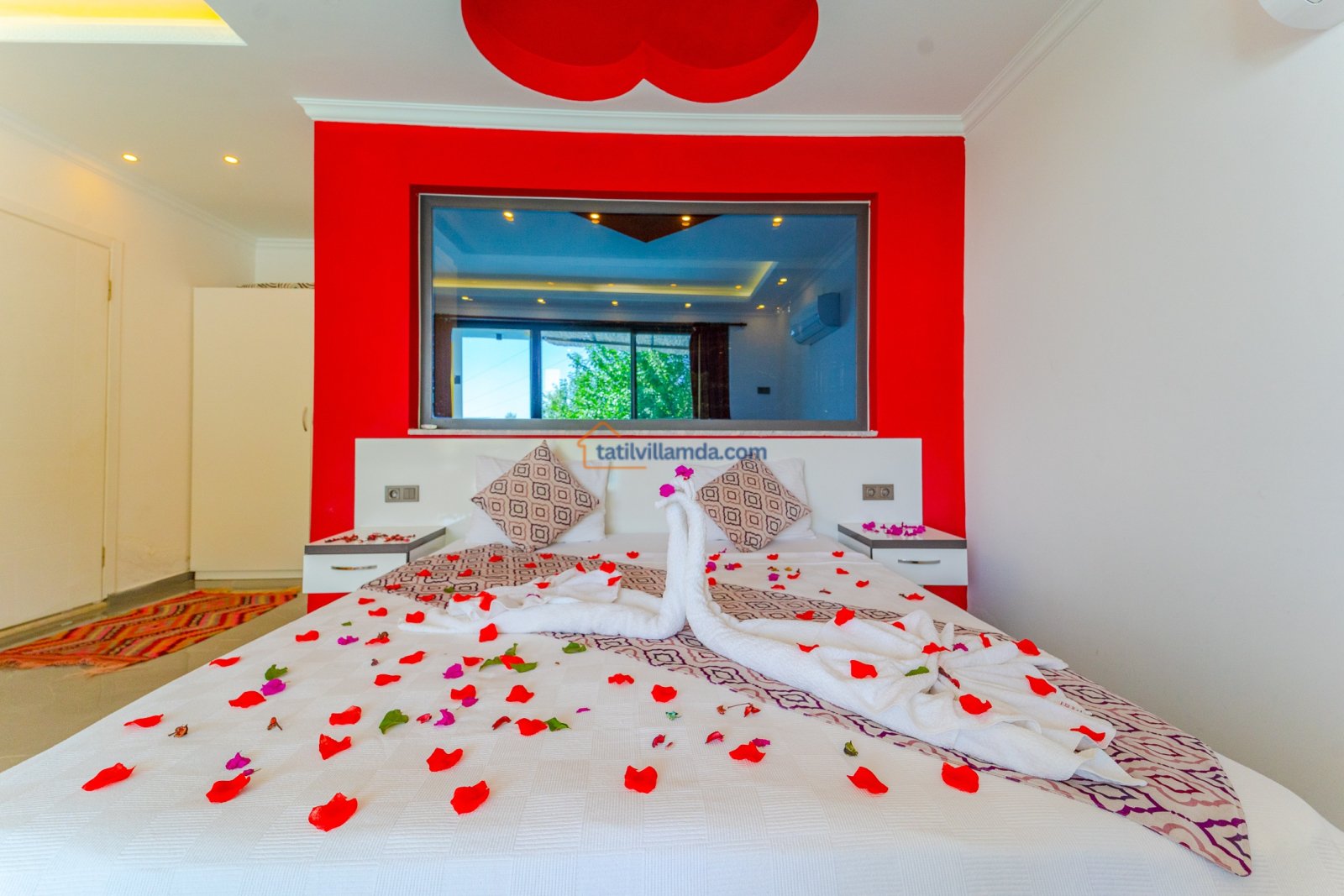 Kalkan İslamlar’da yer alan Villa Efem, doğanın içinde huzurlu bir tatil arayan çiftler için mükemmel bir seçenektir. Tamamen korunaklı havuz alanı sayesinde misafirlerine tam gizlilik sunar. Villada konforlu bir yatak odası, modern tasarımlı bir oturma alanı ve tam donanımlı mutfak bulunmaktadır. Jakuzisiyle keyifli anlar yaşayabilir, gün boyu havuz başında güneşlenerek tatilin tadını çıkarabilirsiniz. Havuz çevresinde şezlong, şemsiye ve salıncak yer alır, bu da dinlenme alanınızı daha konforlu hale getirir.