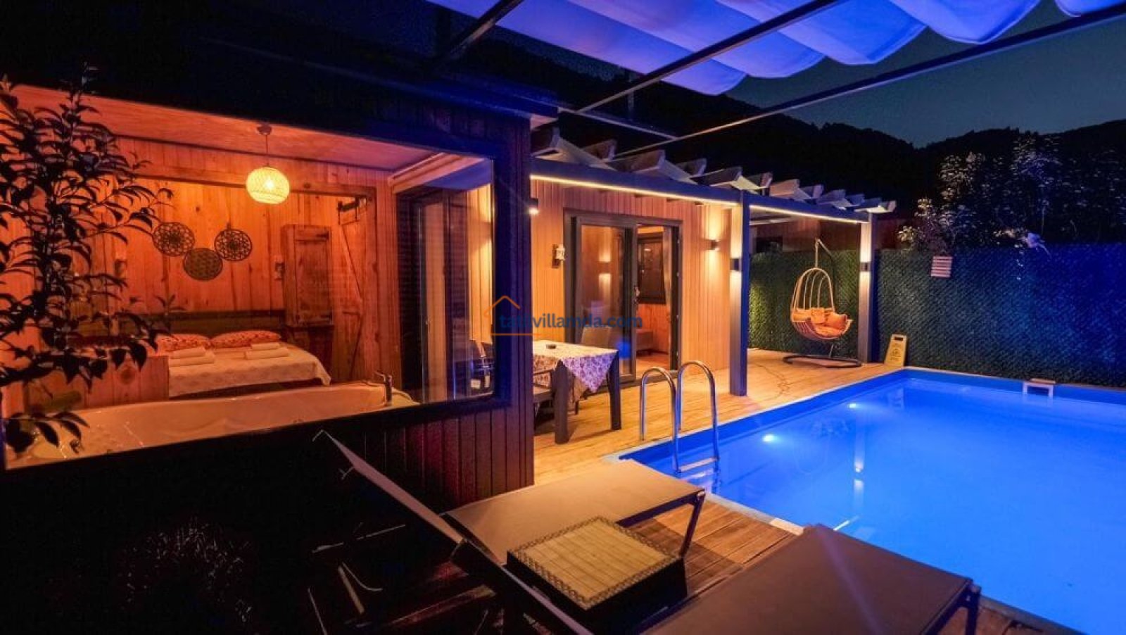 Villa Ege Bungalov, Fethiye’nin İnlice bölgesinde, doğayla iç içe huzurlu bir tatil geçirmek isteyenler için özel olarak tasarlanmış müstakil bir bungalov villadır. Modern mimarisi ve şık tasarımıyla dikkat çeken bu özel villa, balayı çiftleri ve aileler için mükemmel bir konaklama imkânı sunar.