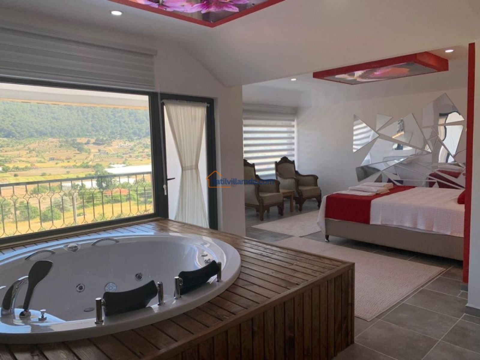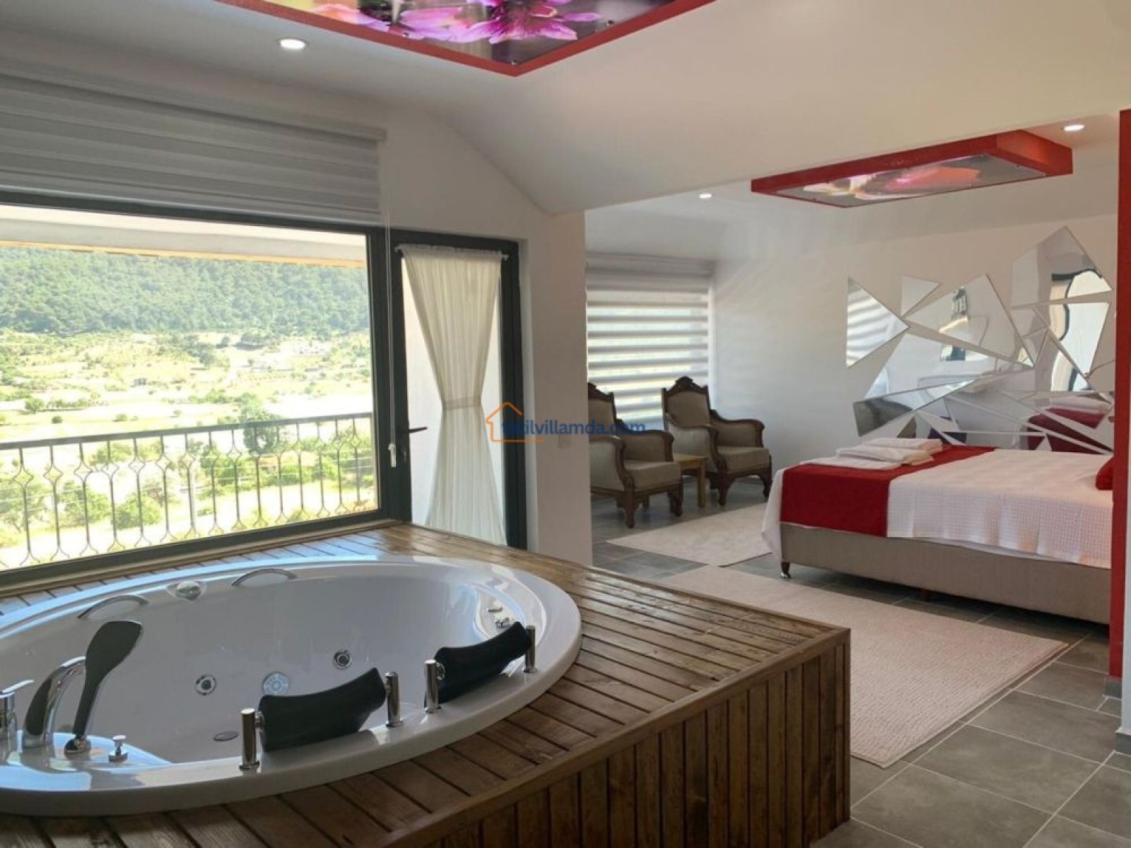 Villanın havuz başında şezlong, şemsiye, salıncak ve barbekü alanı bulunur. Jakuzisi sayesinde tatilinize ekstra konfor katar. Sessiz ve sakin bir ortamda, doğanın içinde rahatlatıcı bir konaklama deneyimi sunar.