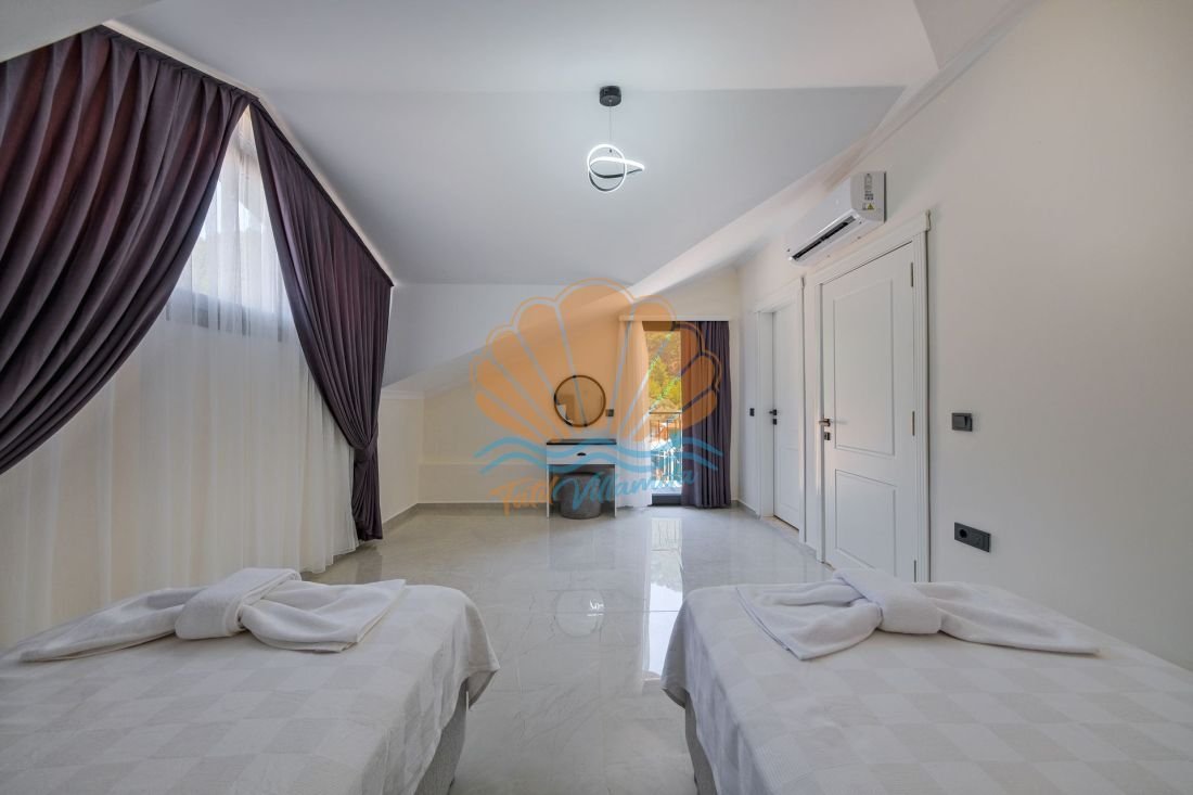 Fethiye’nin eşsiz doğasıyla öne çıkan Faralya mevkiinde konumlanan, konfor ve huzuru bir arada sunan özel bir tatil villasıdır. 4 yatak odasına sahip olan villa, toplamda 8 kişilik konaklama kapasitesi ile geniş aileler ve arkadaş grupları için oldukça ideal bir seçenektir. Modern ve şık bir şekilde dizayn edilen villada yer alan tüm yatak odaları ebeveyn banyolu olup, misafirlerine maksimum konfor ve mahremiyet sağlamaktadır.