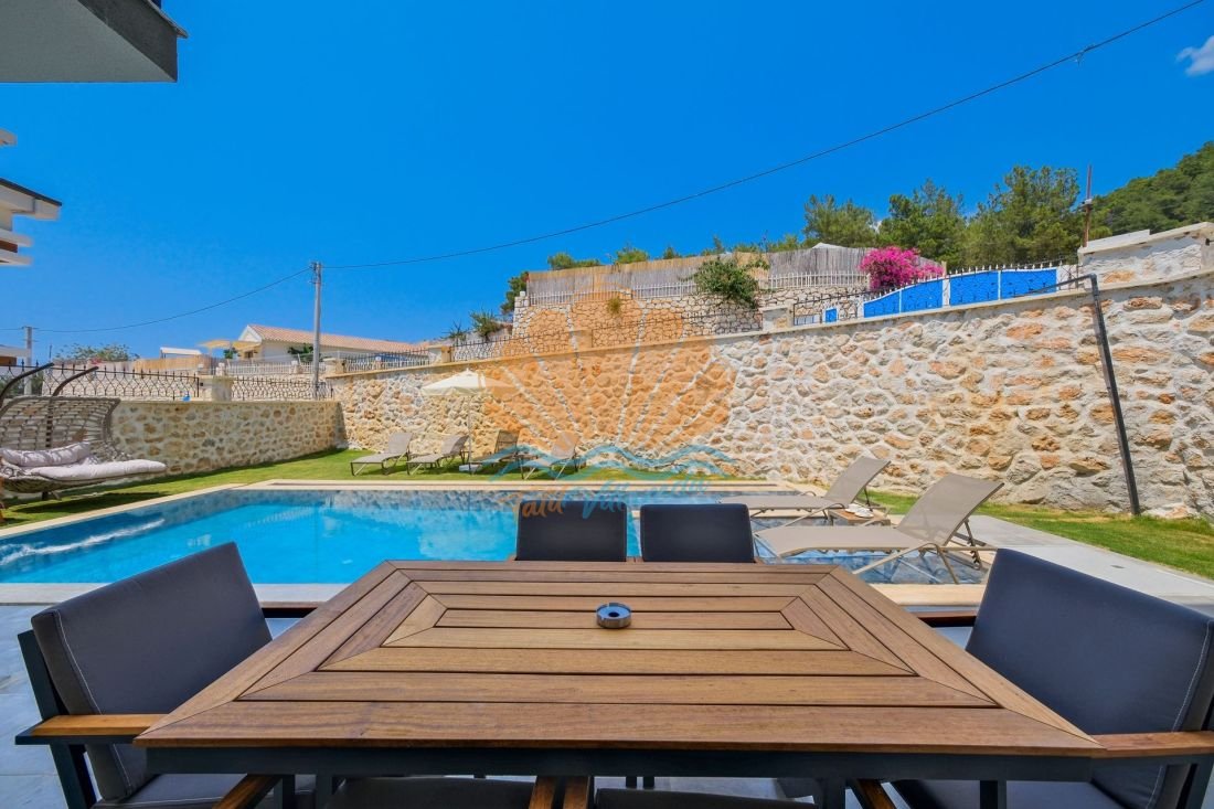 Villanın geniş ve özel yüzme havuzu, gözlerden uzak keyifli bir tatil geçirmek isteyen misafirler için özenle tasarlanmıştır. Havuz başında şezlonglar, şemsiye, salıncak, masa takımı ve rahat bir bahçe oturma grubu yer almakta olup, gün boyu güneşin ve doğanın tadını çıkarabilirsiniz. Ayrıca barbekü alanı sayesinde akşam saatlerinde sevdiklerinizle birlikte keyifli yemekler hazırlayabilirsiniz.