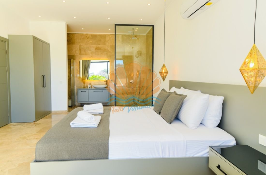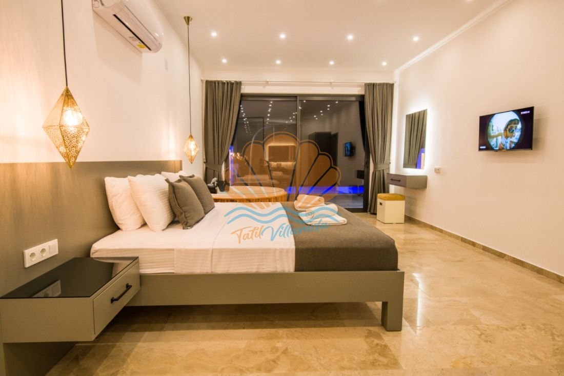 Tek yatak odalı ve 2 kişi konaklama kapasiteli olan villamız, modern ve şık detaylarla dekore edilmiştir. Yatak odasında yer alan jakuzi, tatilinize hem romantizm hem de rahatlık katar. Günün yorgunluğunu jakuzide atabilir, sevdiceğinizle keyifli anlar yaşayabilirsiniz.
