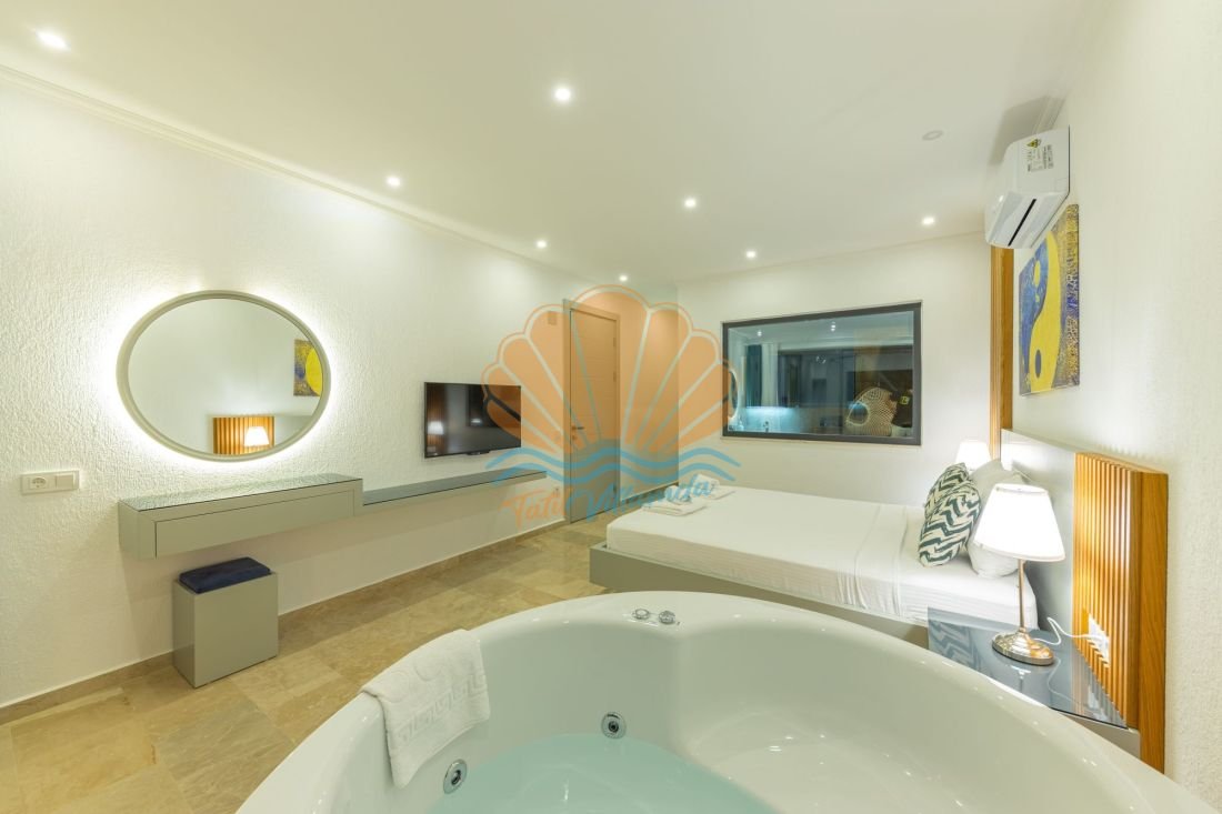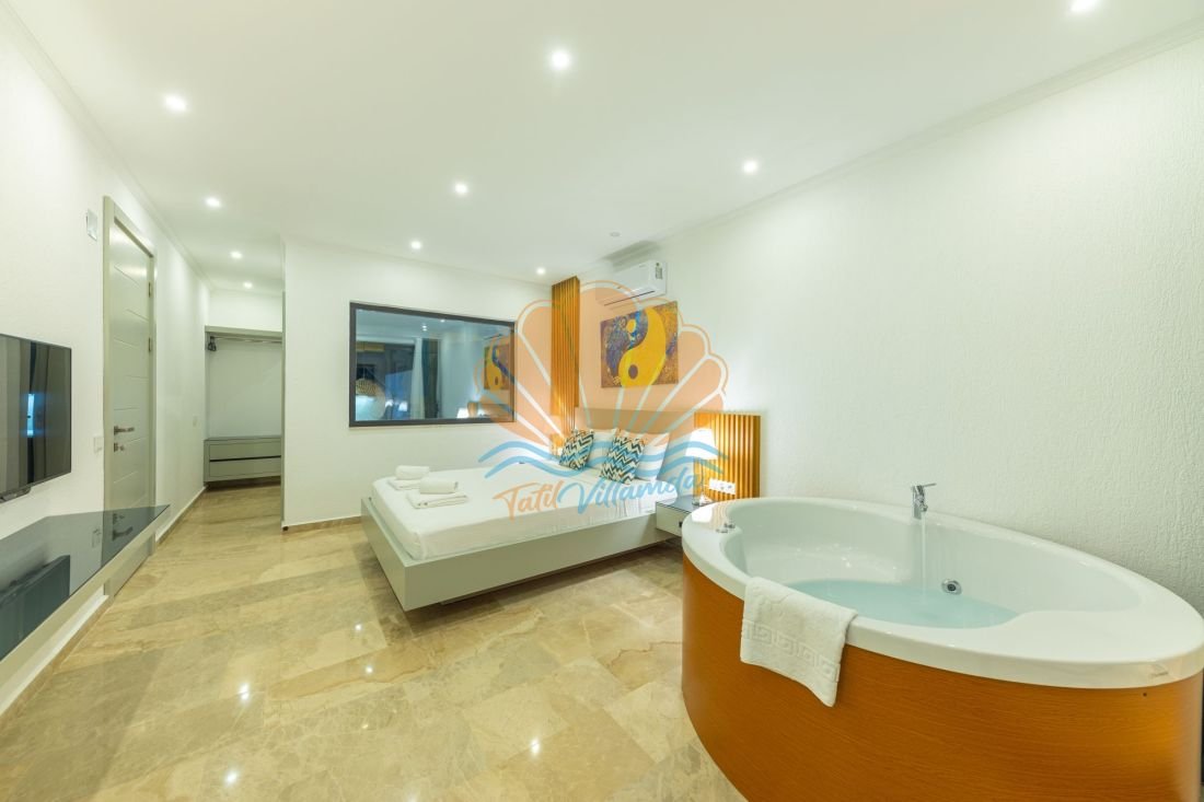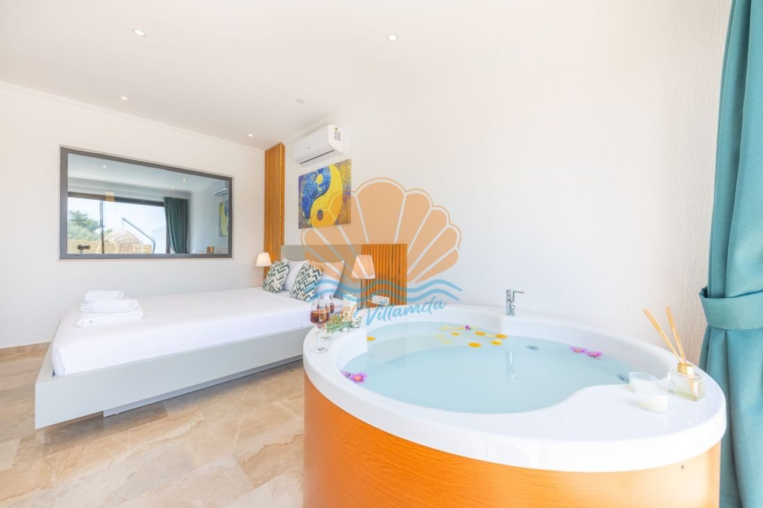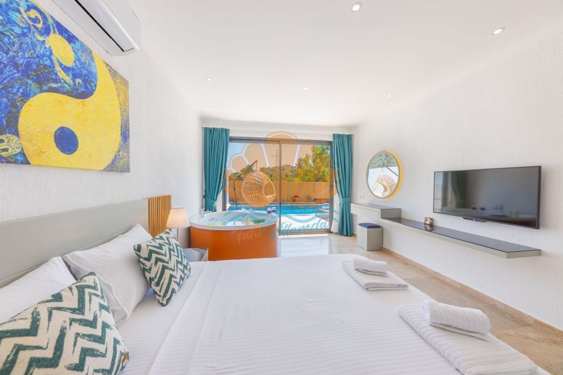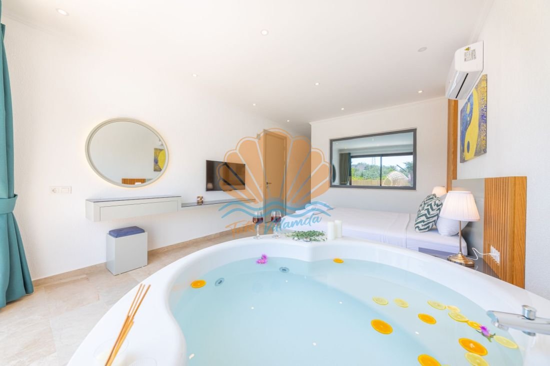 Tek yatak odalı ve 2 kişi konaklama kapasiteli olan villamız, modern ve şık detaylarla dekore edilmiştir. Yatak odasında yer alan jakuzi, tatilinize hem romantizm hem de rahatlık katar. Günün yorgunluğunu jakuzide atabilir, sevdiceğinizle keyifli anlar yaşayabilirsiniz.