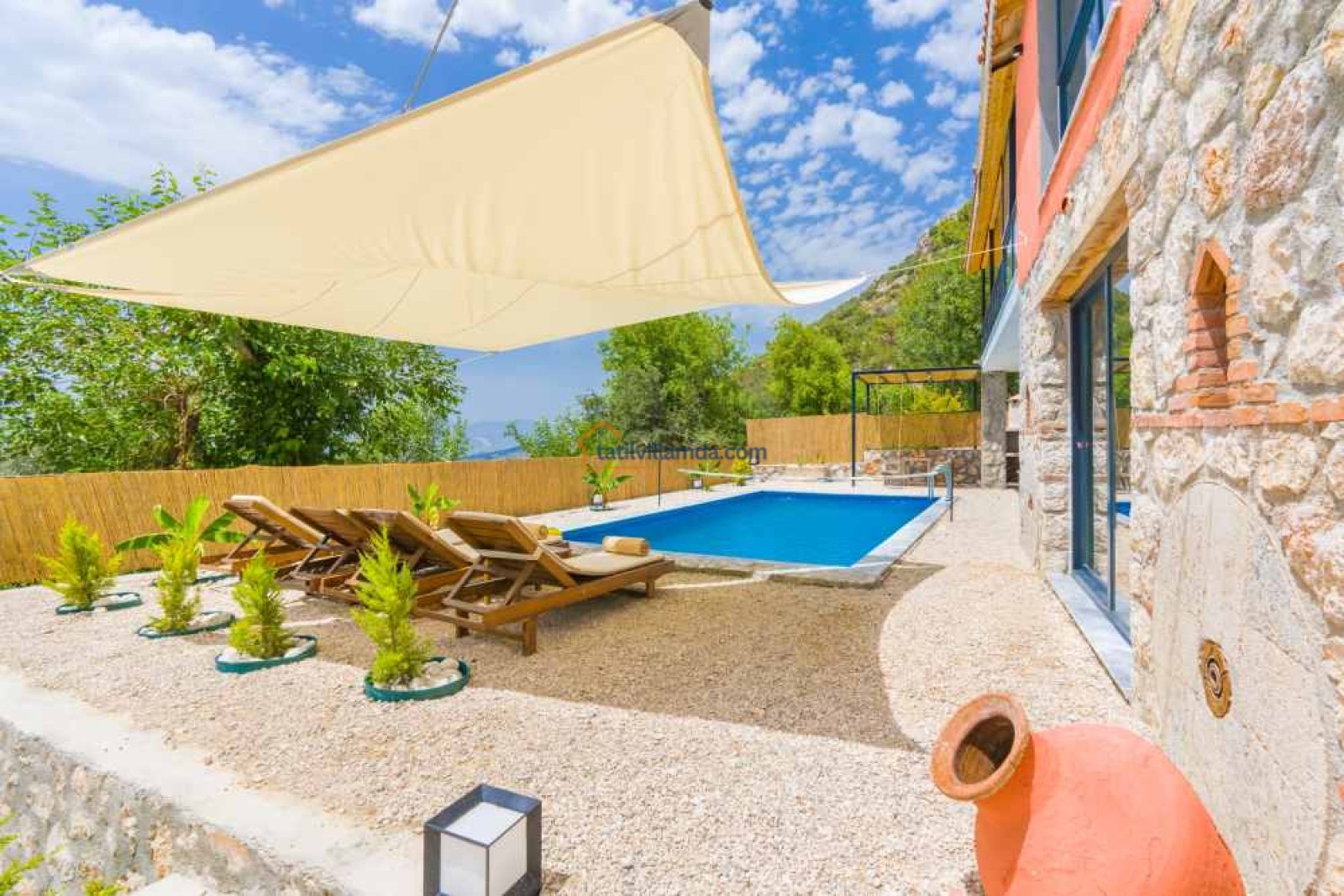 Villa Grand Ata, Kalkan Üzümlü’de, doğanın içinde huzurlu bir tatil imkânı sunuyor! Geniş, korunaklı havuzu ve yemyeşil bahçesiyle özel bir konaklama deneyimi sizleri bekliyor.
