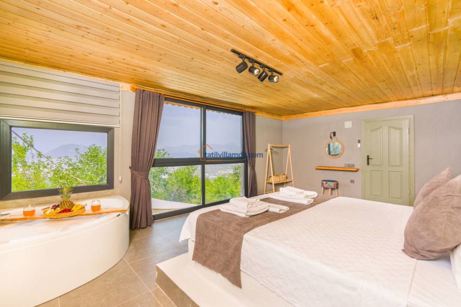 Villa Grand Ata, 2 yatak odasına sahip olup her iki odada da çift kişilik yatak bulunmaktadır. Odaların her biri ebeveyn banyosuna sahiptir, bu da konforunuzu bir üst seviyeye taşıyor. Ayrıca, jakuzili lüks tasarımı ile tatilinize romantik bir dokunuş katıyor.
