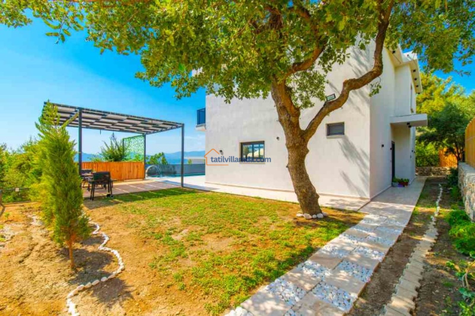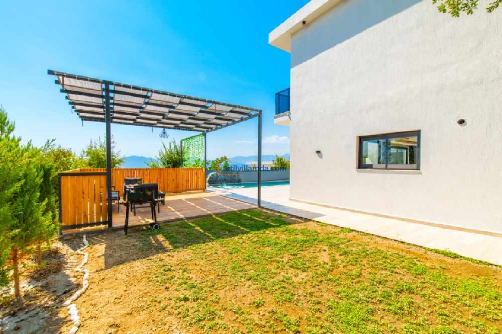 Villa Kaila, iki yatak odası ve toplamda beş kişilik konaklama kapasitesiyle aileler ve küçük gruplar için uygundur. Modern ve şık şekilde döşenmiş iç mekânlar, misafirlerine konforlu bir konaklama deneyimi sunarken, geniş terası ve deniz manzaralı oturma alanları güneşin ve manzaranın tadını çıkarmak isteyenler için idealdir. Doğa içinde huzurlu ve lüks bir tatil arayanlar için Villa Kaila harika bir seçenektir.