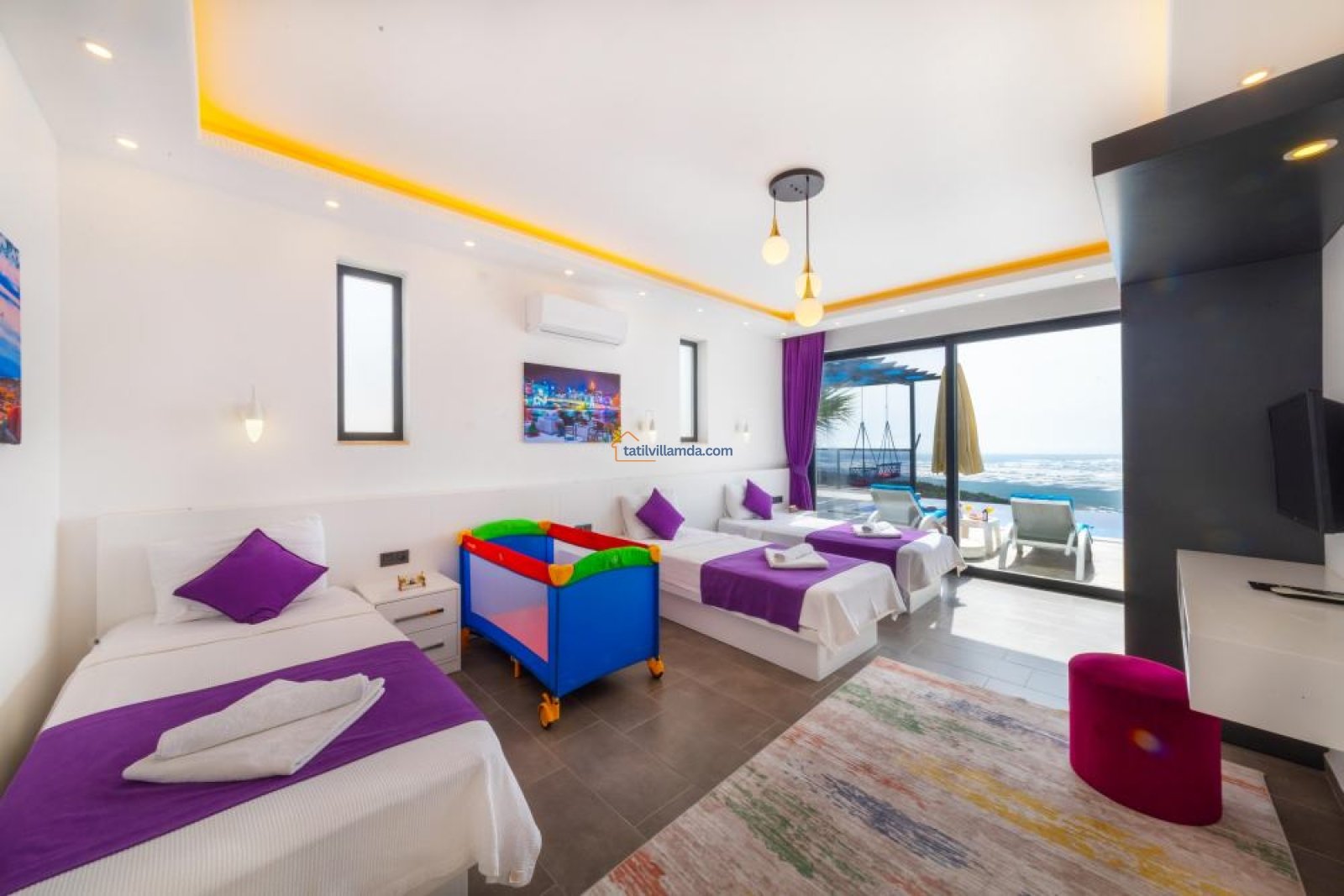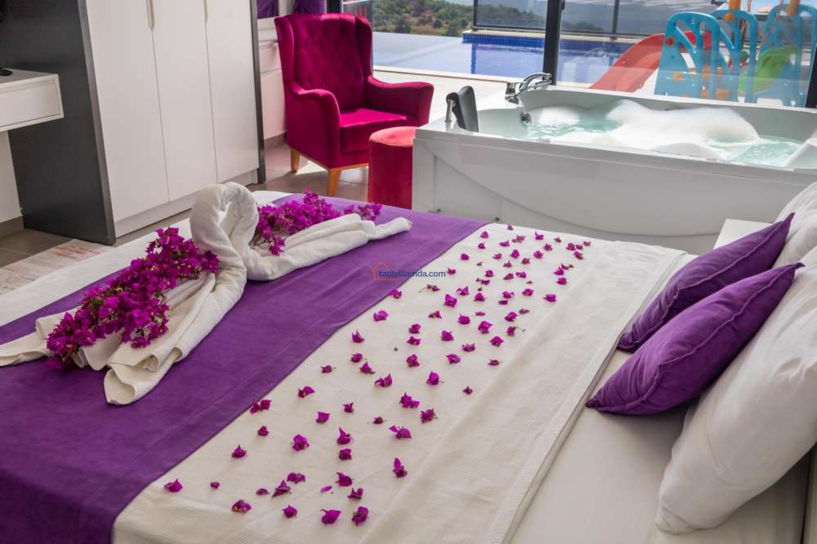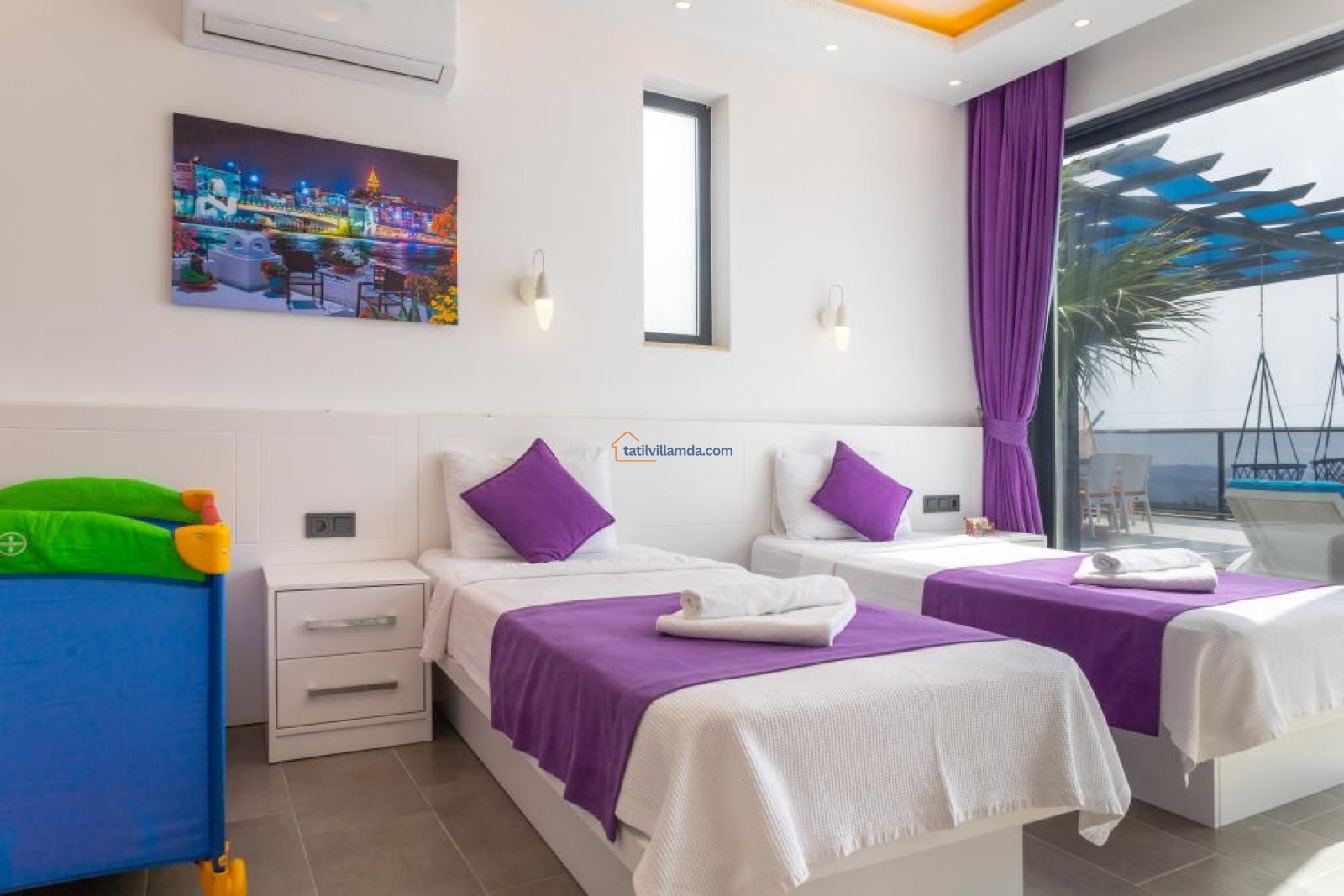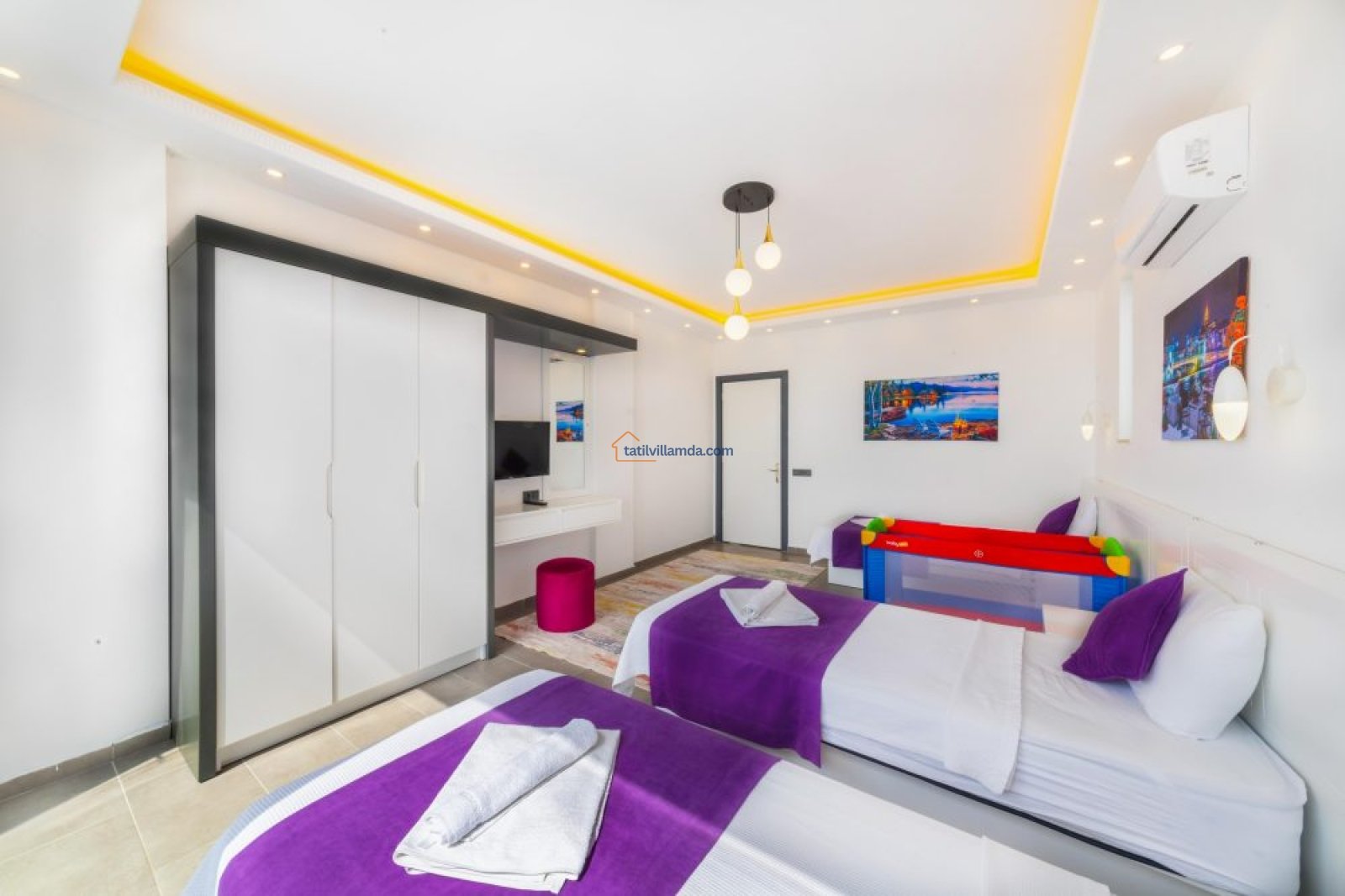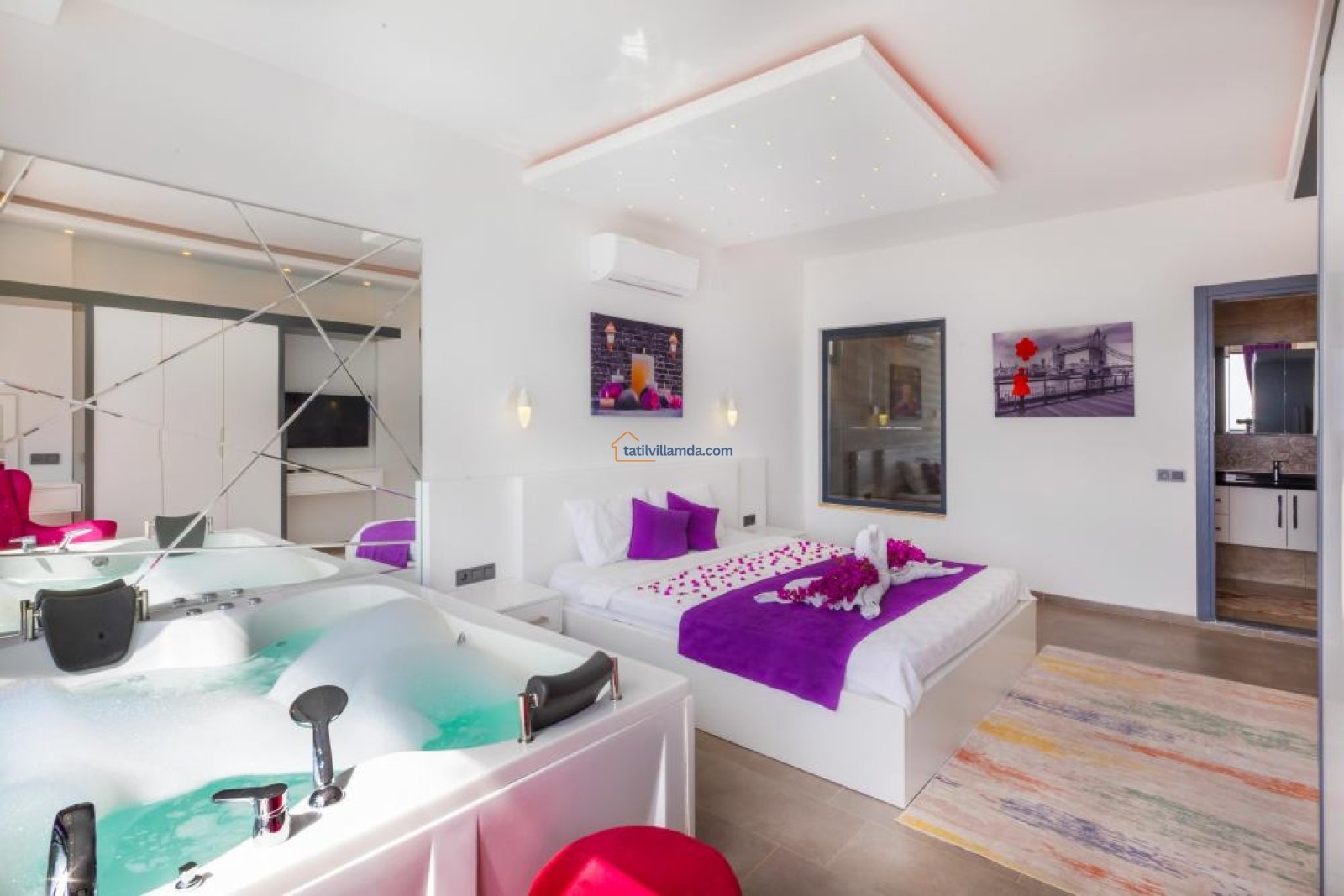 Villa, 2 yatak odası ve 1 salondan oluşmakta olup toplamda 5 kişilik konaklama kapasitesine sahiptir. Odalardan biri çift kişilik yatak içerirken, diğerinde 3 adet tek kişilik yatak bulunmaktadır. Modern ve şık tasarımıyla dikkat çeken villada ayrıca konforlu bir jakuzi bulunmaktadır.