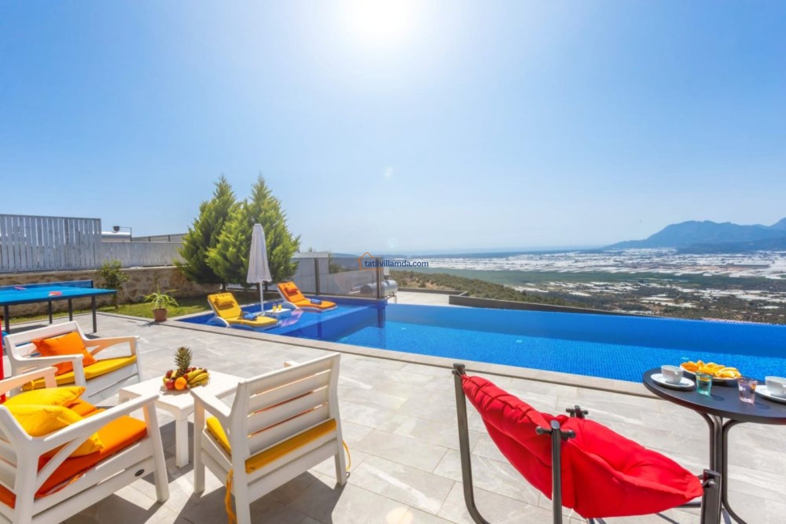 Havuz başında masa tenisi, salıncak, şezlong ve şemsiye gibi keyifli vakit geçirmenizi sağlayacak olanaklar bulunmaktadır. Ayrıca çocuk havuzu sayesinde küçük misafirler de güvenli ve eğlenceli bir tatilin tadını çıkarabilir. Doğa ile iç içe bir konumda bulunan Villa Kübra, sessiz ve sakin atmosferiyle dinlendirici bir tatil geçirmek isteyenler için mükemmel bir seçenektir. Konforlu iç mekânı, özel havuzu ve sunduğu olanaklarla Villa Kübra, Kalkan’daki en özel tatil villalarından biridir.