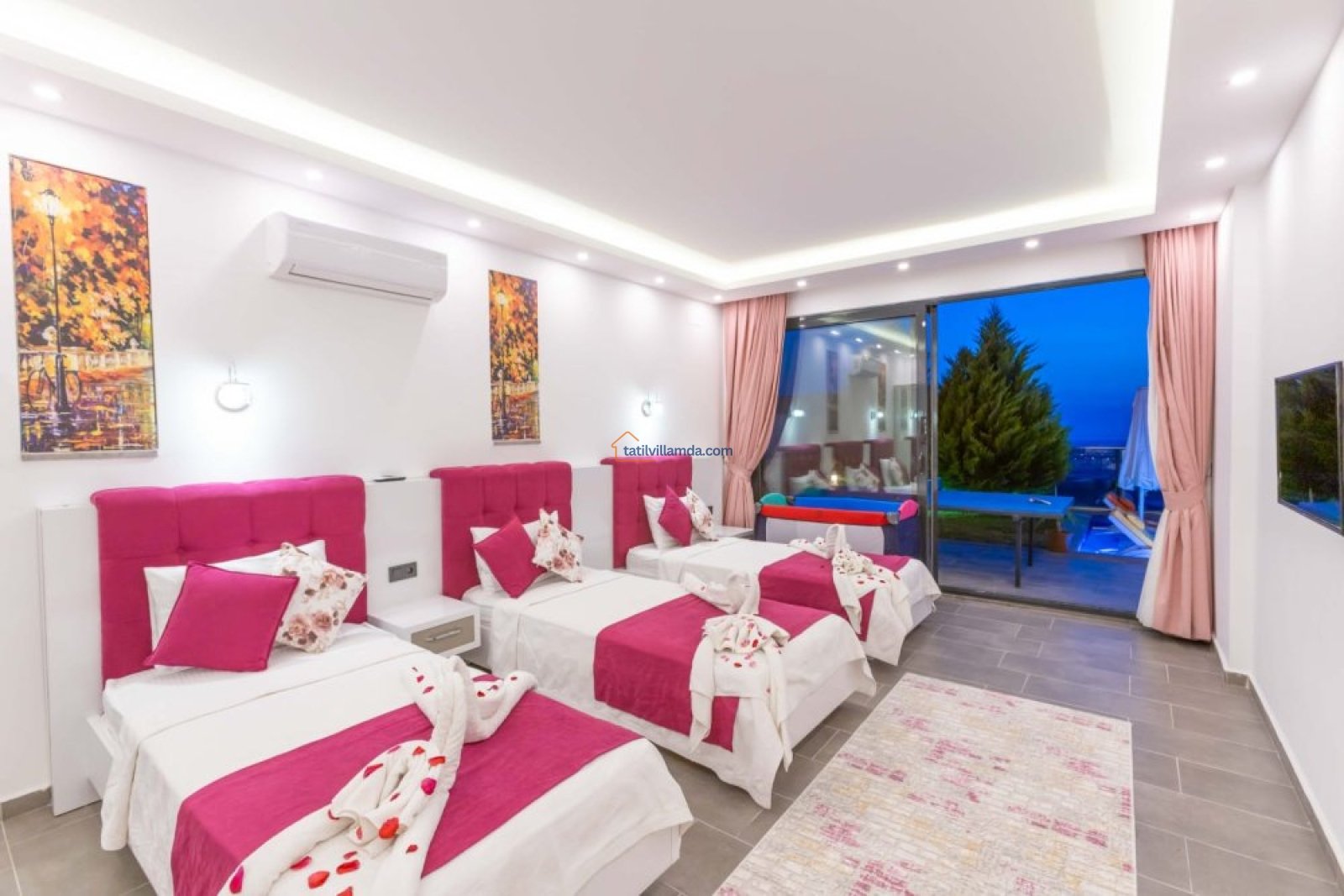 Villa Kübra, 2 oda ve 1 salondan oluşmakta olup toplamda 5 kişiye kadar konaklama kapasitesine sahiptir. Odalardan birinde 1 adet çift kişilik yatak, diğerinde ise 3 adet tek kişilik yatak bulunmaktadır. Konforlu bir tatil için tüm detayların düşünüldüğü villada jakuzi de mevcuttur.