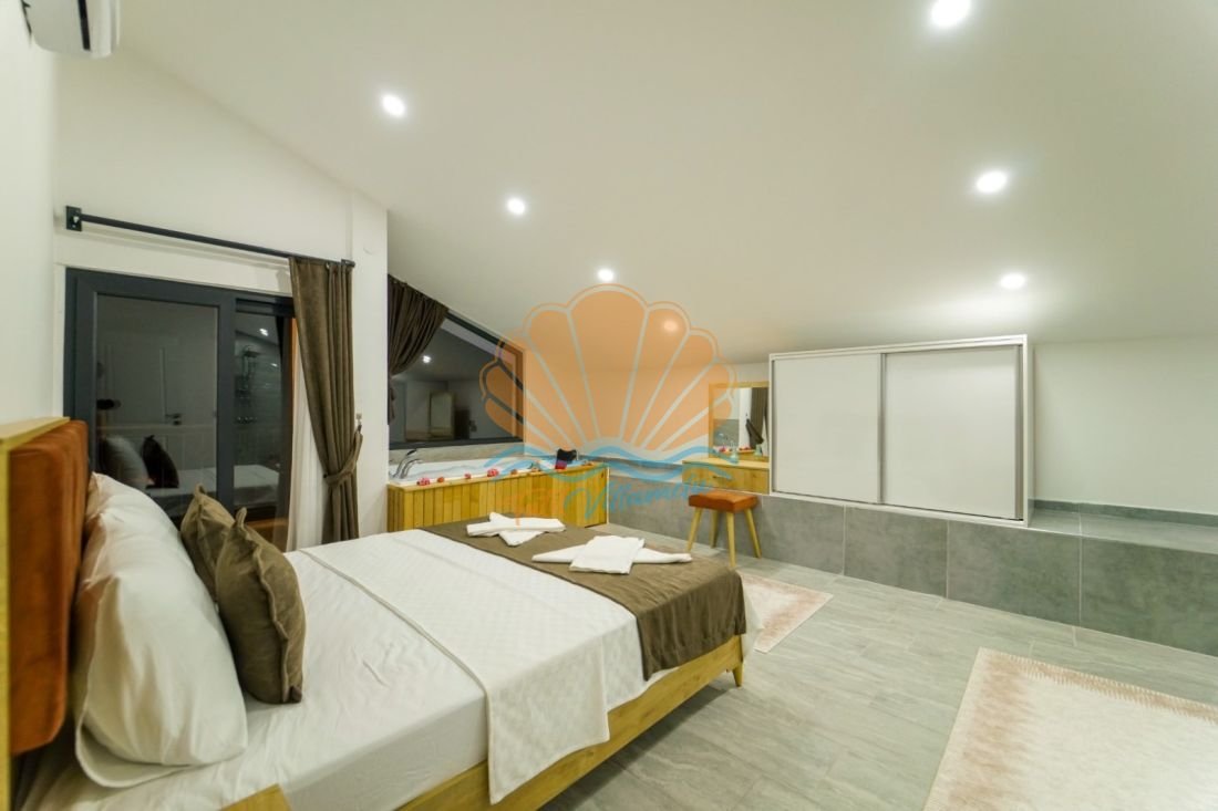 Doğanın huzur veren atmosferiyle öne çıkan Seydikemer Kumluova mevkiinde konumlanmış, lüks detayları ve geniş yaşam alanlarıyla dikkat çeken özel bir tatil villasıdır. Toplam 4 yatak odasına sahip olan villa, 8 kişilik konaklama kapasitesiyle kalabalık aileler ve arkadaş grupları için ideal bir seçenek sunmaktadır. Tüm yatak odalarının ebeveyn banyolu olması, misafirlere konforlu ve ayrıcalıklı bir konaklama deneyimi sağlar. Ayrıca 3 yatak odasında bulunan jakuziler, günün yorgunluğunu atmanız için keyifli bir ortam sunar.