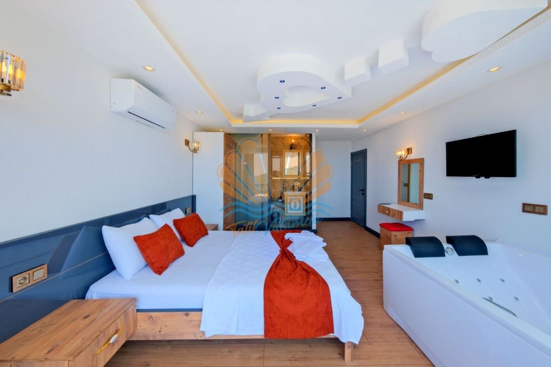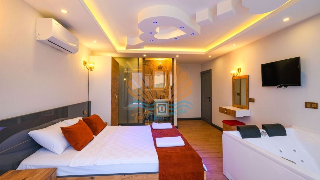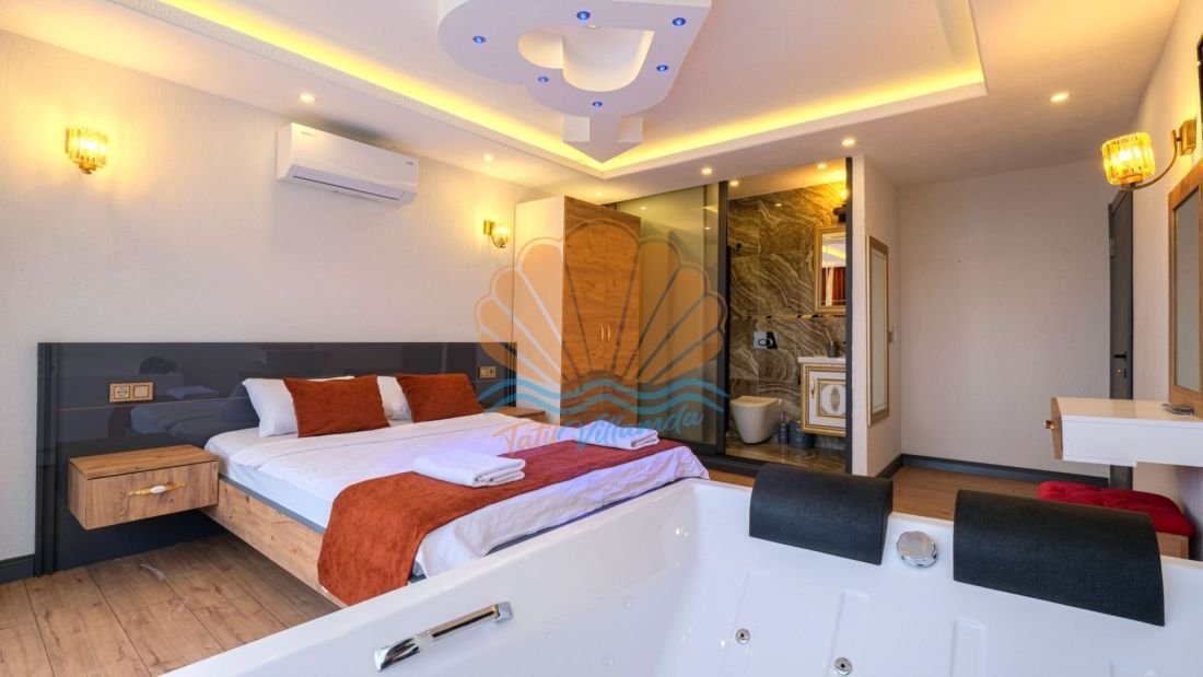 Toplamda 2 yatak odasına sahip olan Villa Leyla, 4 kişilik konaklama kapasitesiyle çekirdek aileler ve balayı çiftleri için oldukça uygundur. Her iki yatak odasında da ebeveyn banyosu bulunmakta olup, misafirlere maksimum mahremiyet ve rahatlık sağlanmaktadır. Ayrıca villada yer alan jakuzi, tatilinize keyif ve rahatlama katacak özel detaylardan biridir.