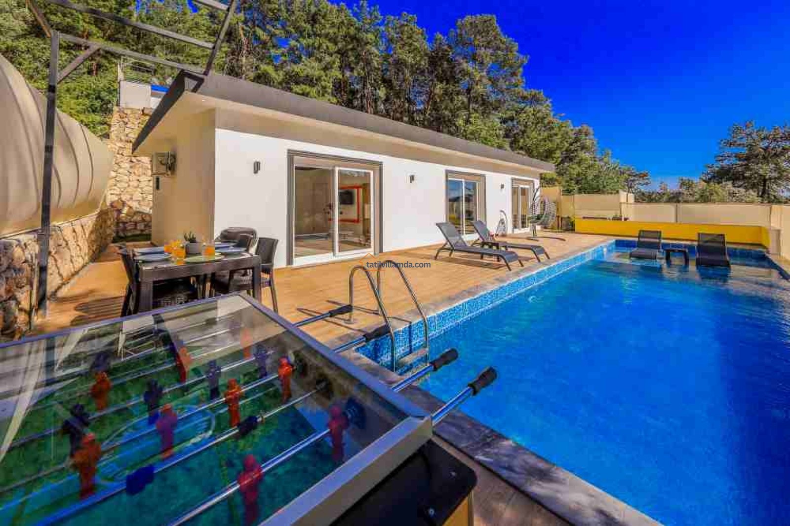 Villa Life, Kalkan Üzümlü Mevkii'nde, geniş havuzuyla dikkat çeken şık bir villadır. Hem balayı çiftleri hem de aileler için ideal olan bu villa, rahatlık ve eğlencenin bir arada sunulduğu mükemmel bir tatil dünyasıdır. Villa, geniş ve korunaklı havuz alanı ile misafirlerine tamamen özel bir ortam sunuyor. Havuz başında güneşlenebilir veya serin sularda yüzebilirsiniz. Ayrıca,