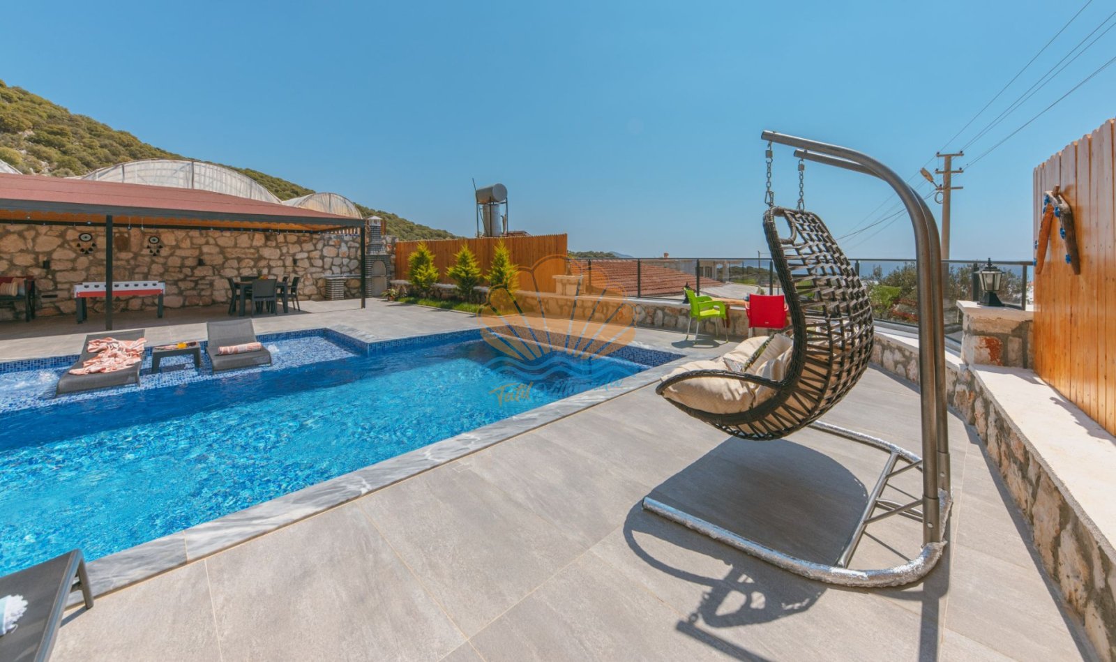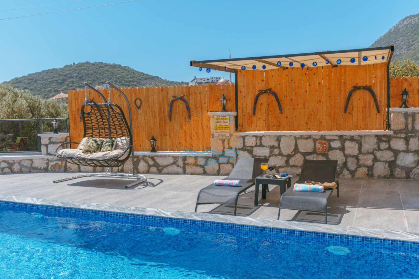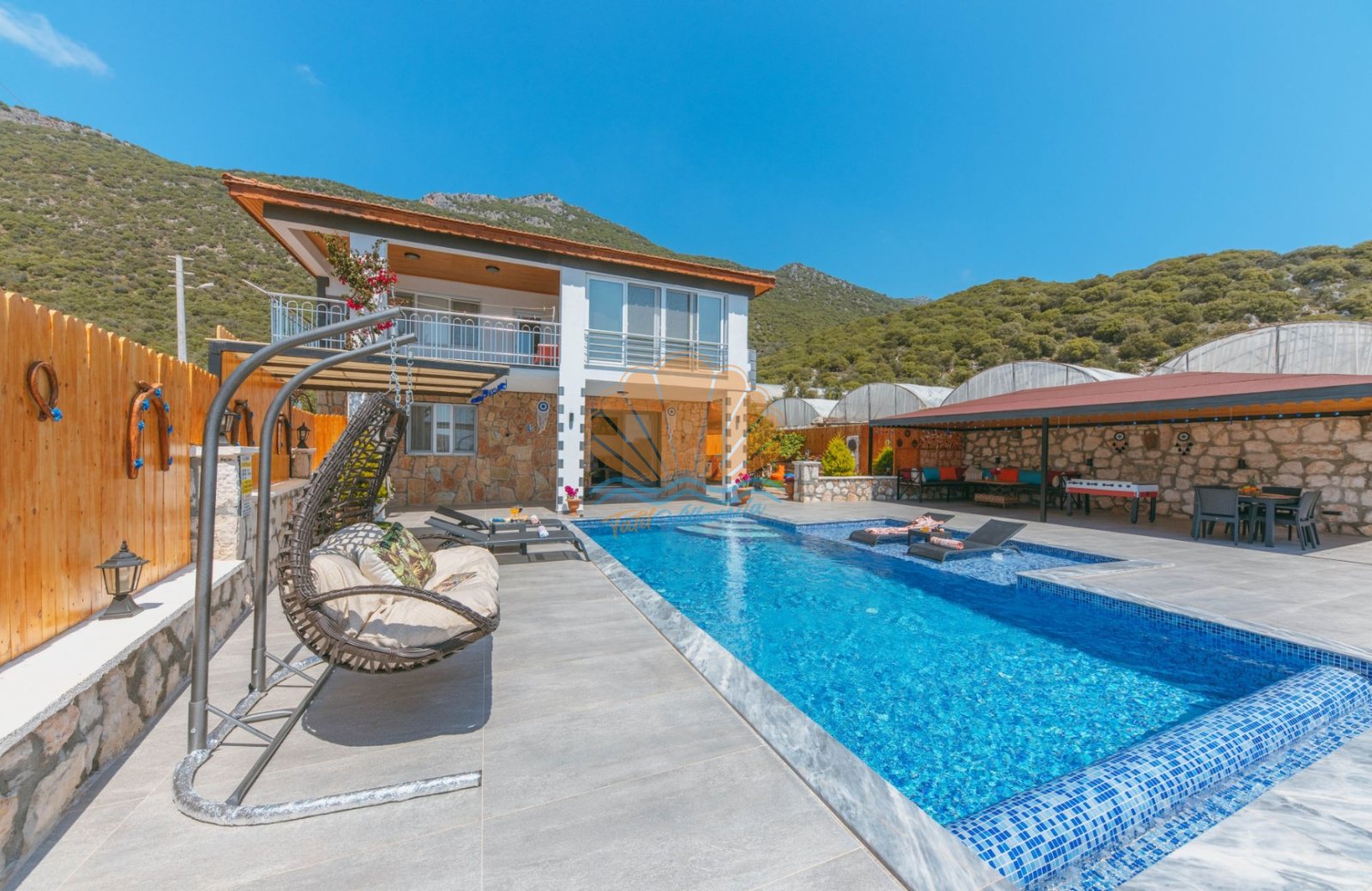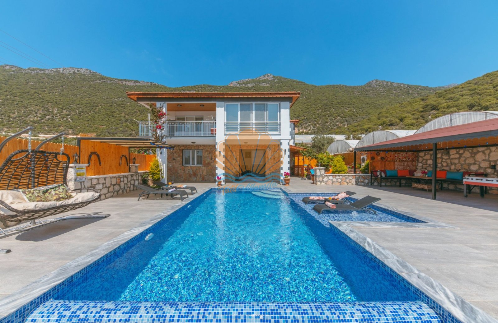 Villa Mercan, Kaş’ın doğayla iç içe ve sakin bölgelerinden biri olan Sısla mevkiinde yer almaktadır. Korunaklı yapıya sahip geniş özel havuzu sayesinde muhafazakâr aileler ve gözlerden uzak tatil arayan misafirler için oldukça ideal bir seçenektir. İki yatak odası bulunan villamız, 4 kişilik konaklama kapasitesiyle çekirdek aileler ve arkadaş grupları için konforlu bir tatil imkânı sunar. Tüm odalar ebeveyn banyolu olup, ferah ve kullanışlı bir şekilde dizayn edilmiştir.