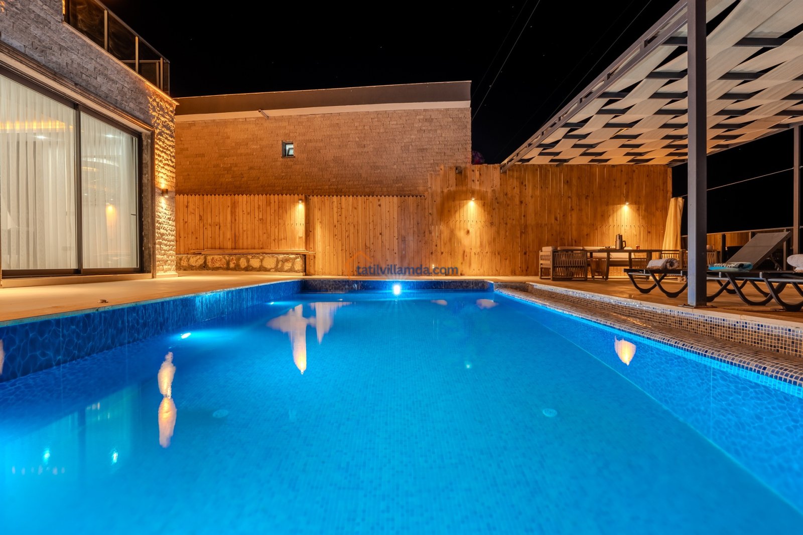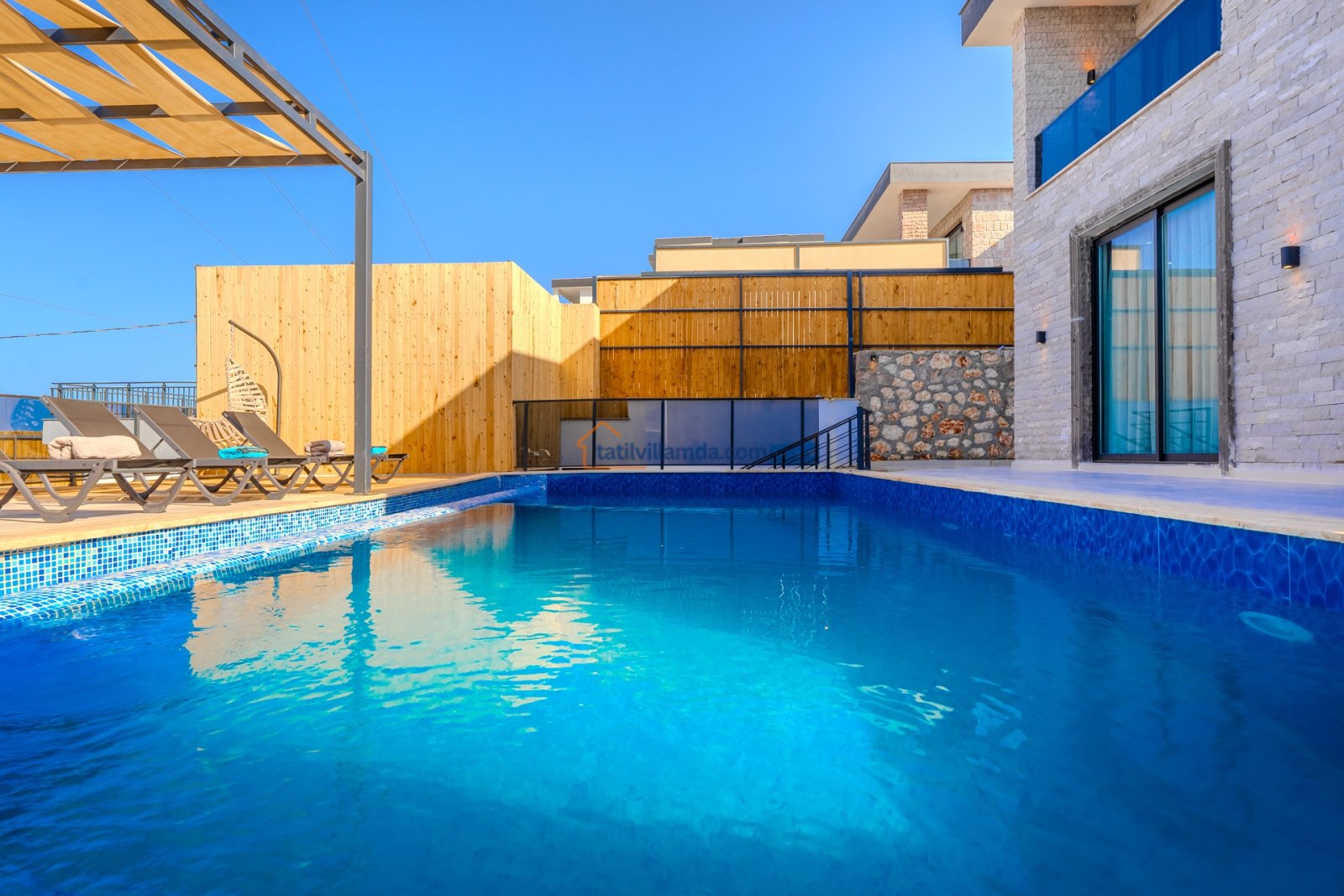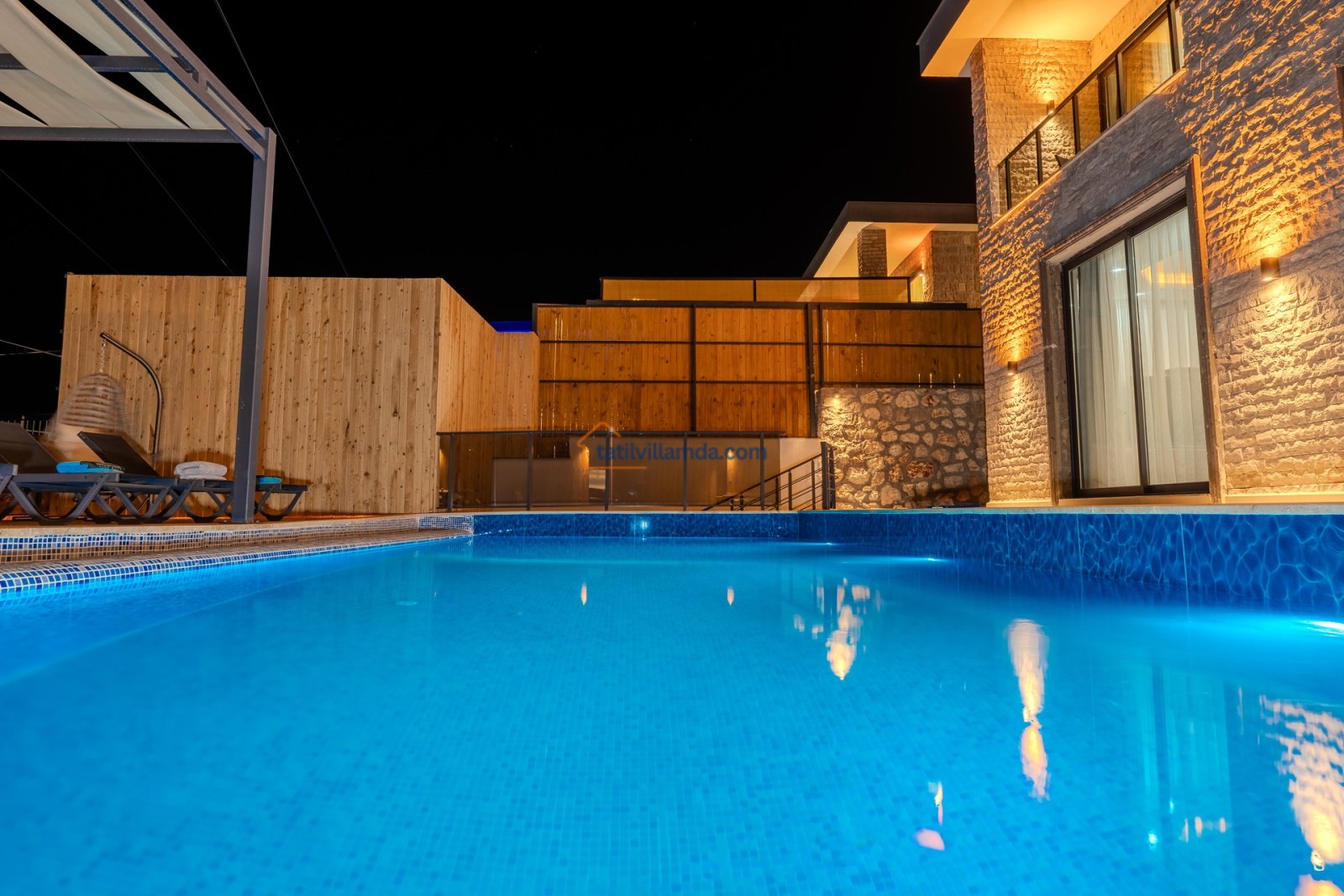 Villa Merva 2, Antalya Kaş Kalkan'ın Kördere mevkiinde konumlanmış, muhteşem deniz manzarasına hakim, korunaklı olup, geniş ailelere ve kalabalık arkadaş gruplarına hitap eden, bütün bir yılın stresini atacağınız özel havuza ve jakuziye sahip, geniş bahçesinde mangal keyfi yapabileceğiniz barbeküsü olup, taş yapıda tasarlanmış modern ve şık mimaride dizayn edilmiş, kiralık lüks tatil villasıdır.