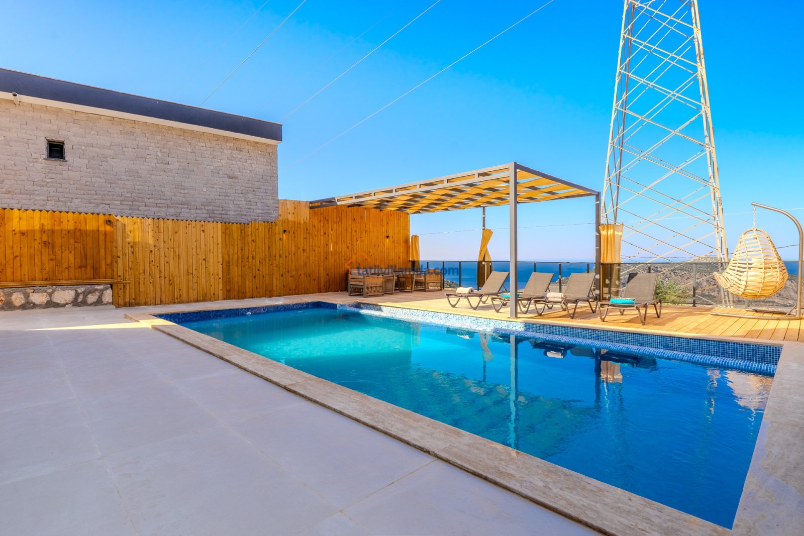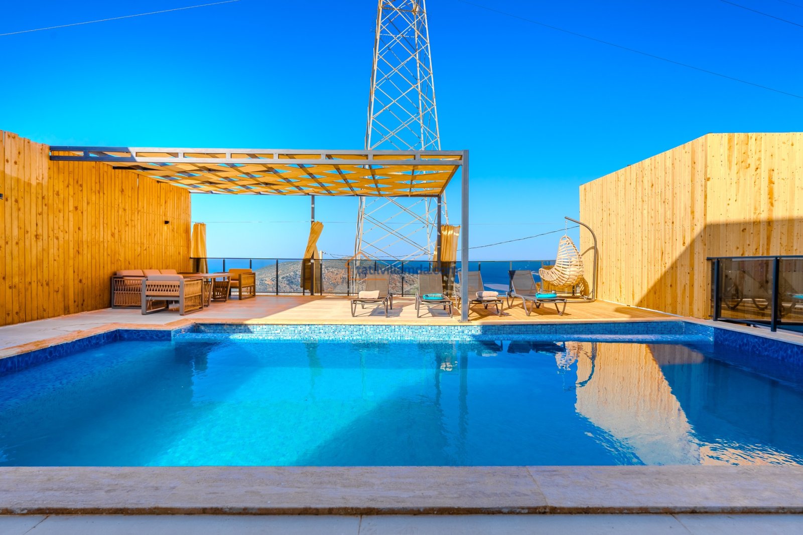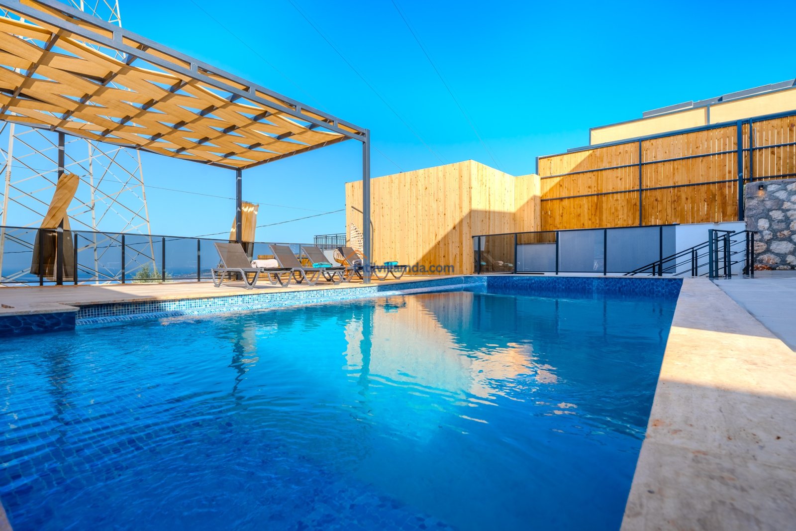 Villa Merva 2, Antalya Kaş Kalkan'ın Kördere mevkiinde konumlanmış, muhteşem deniz manzarasına hakim, korunaklı olup, geniş ailelere ve kalabalık arkadaş gruplarına hitap eden, bütün bir yılın stresini atacağınız özel havuza ve jakuziye sahip, geniş bahçesinde mangal keyfi yapabileceğiniz barbeküsü olup, taş yapıda tasarlanmış modern ve şık mimaride dizayn edilmiş, kiralık lüks tatil villasıdır.