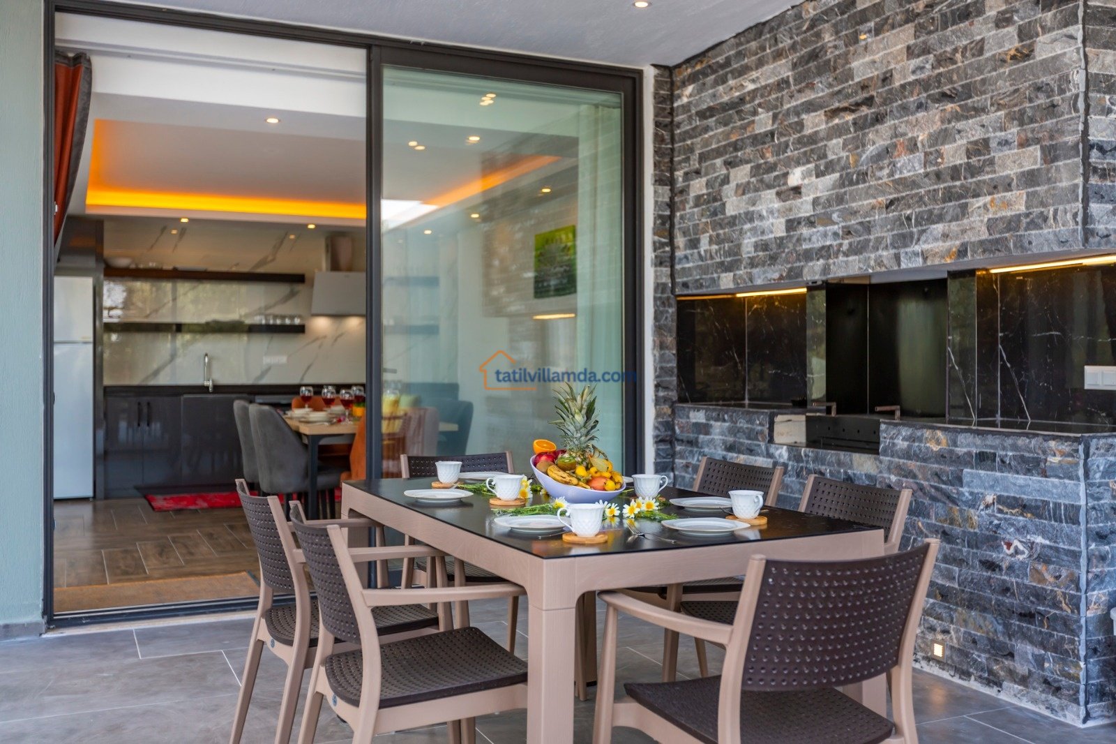 Dış mekânda geniş bir özel yüzme havuzu, çocuklar için ayrı bir çocuk havuzu, rahat şezlonglar ve keyifli bir barbekü alanı mevcuttur. Ayrıca, havuz kenarında konforlu bir oturma grubu bulunur, böylece sevdiklerinizle gün boyu keyifli vakit geçirebilirsiniz.