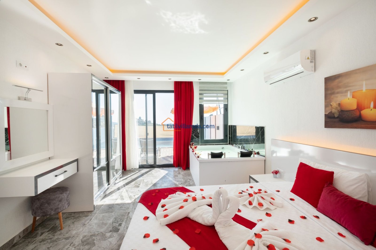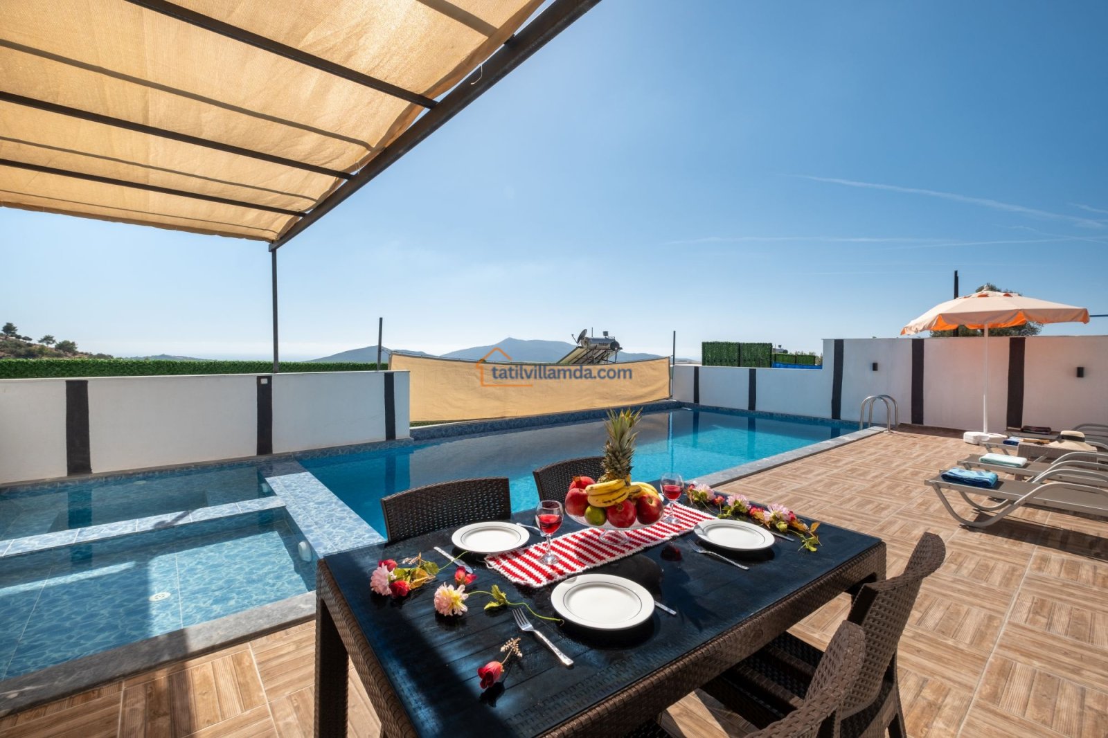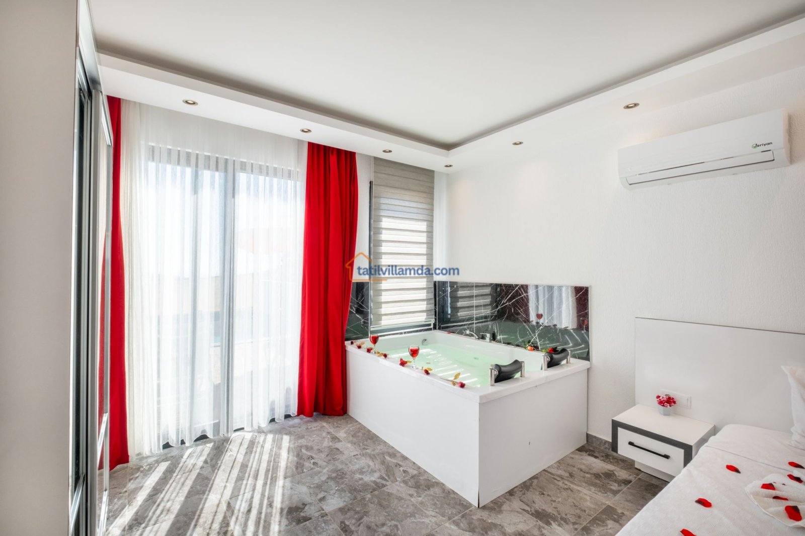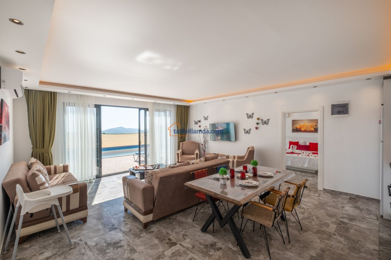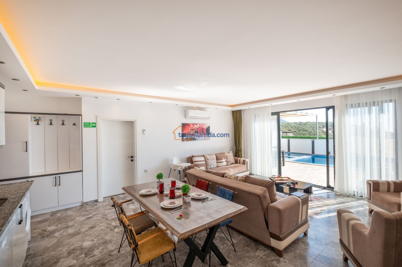 doğa ile iç içe konumu ve konforlu yapısıyla Kalkan’ın gözde bölgelerinden Üzümlü mevkiinde yer almaktadır. Korunaklı ve geniş özel yüzme havuzu sayesinde muhafazakâr aileler ve balayı çiftleri için oldukça ideal bir seçenektir. Ayrıca çocuklar için ayrı bir çocuk havuzu bulunması, aile tatillerini daha güvenli ve keyifli hale getirir. Villamız 2 yatak odalı olup toplam 4 kişi konaklama kapasitesine sahiptir. Yatak odalarından biri ebeveyn banyolu olup jakuzisi ile tatilinize ekstra konfor katar.