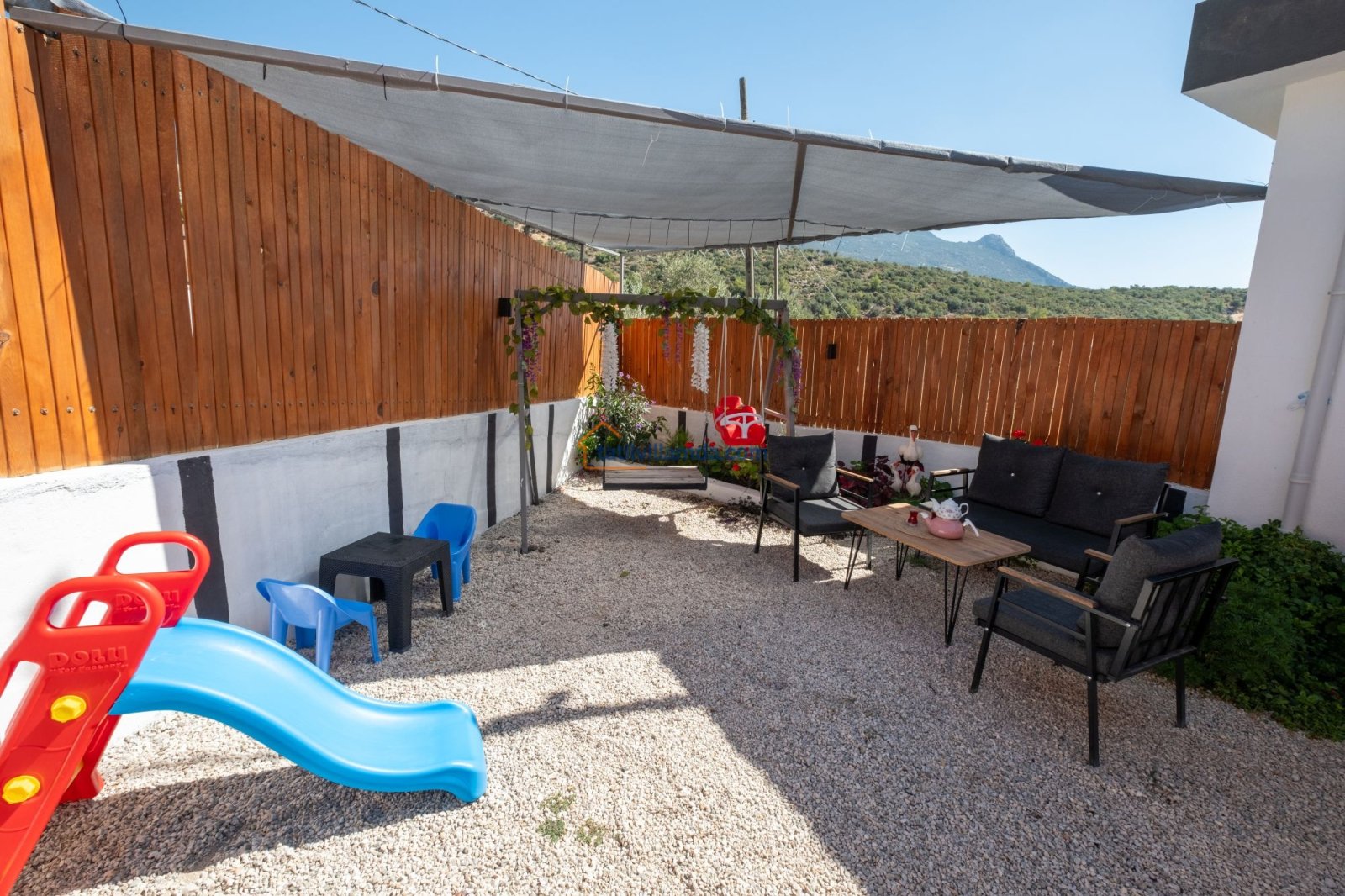 Havuz başında yer alan şezlong, şemsiye, salıncak ve masa takımı sayesinde gün boyu keyifli vakit geçirebilir, akşamları bahçede sevdiklerinizle huzurlu sohbetler edebilirsiniz. Bahçe alanında bulunan mini çocuk oyun parkı ve bahçe oturma grubu, özellikle çocuklu aileler için büyük bir avantaj sunar. Geniş bahçesi ve ferah yapısı ile Villa Miraç 2, şehir gürültüsünden uzak, sakin ve rahatlatıcı bir tatil arayan misafirler için ideal bir tercihtir. Kalkan merkeze ve plajlara ulaşım ise araçla kısa sürede sağlanabilmektedir.