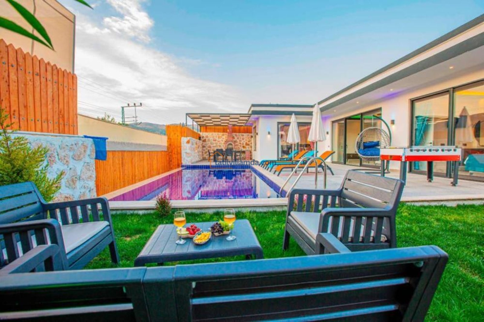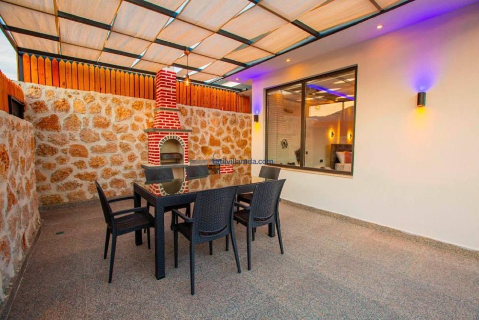 İç mekanda jakuzili bir yatak odası bulunur, böylece tatilinizi daha da konforlu hale getirebilirsiniz. Villanın bahçesi oldukça geniş olup, havuz başında langırt masası ve mini çocuk oyun alanı yer almaktadır. Bu sayede hem yetişkinler hem de çocuklar için keyifli bir ortam sunar.