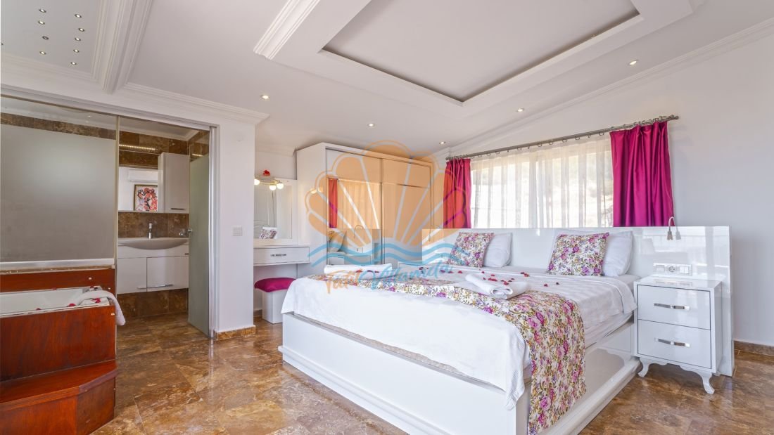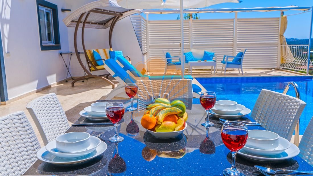 Antalya’nın gözde tatil bölgelerinden biri olan Kalkan’ın huzurlu ve doğayla iç içe konumlarından Üzümlü mevkiinde yer almaktadır. Doğanın sakin atmosferi içinde konumlanan villa, özellikle gözlerden uzak bir tatil geçirmek isteyen misafirler için ideal bir seçenek sunmaktadır. Korunaklı özel havuzu sayesinde muhafazakâr aileler ve balayı çiftleri için de oldukça uygun bir konaklama imkânı sağlamaktadır.