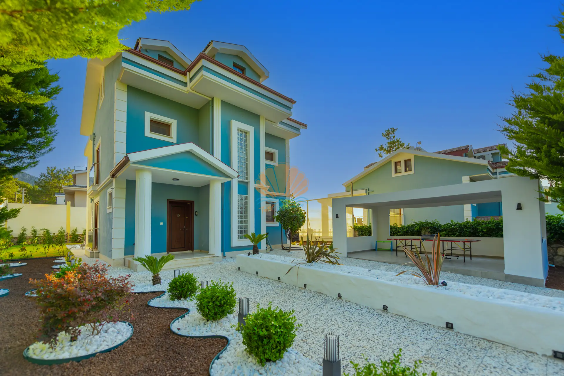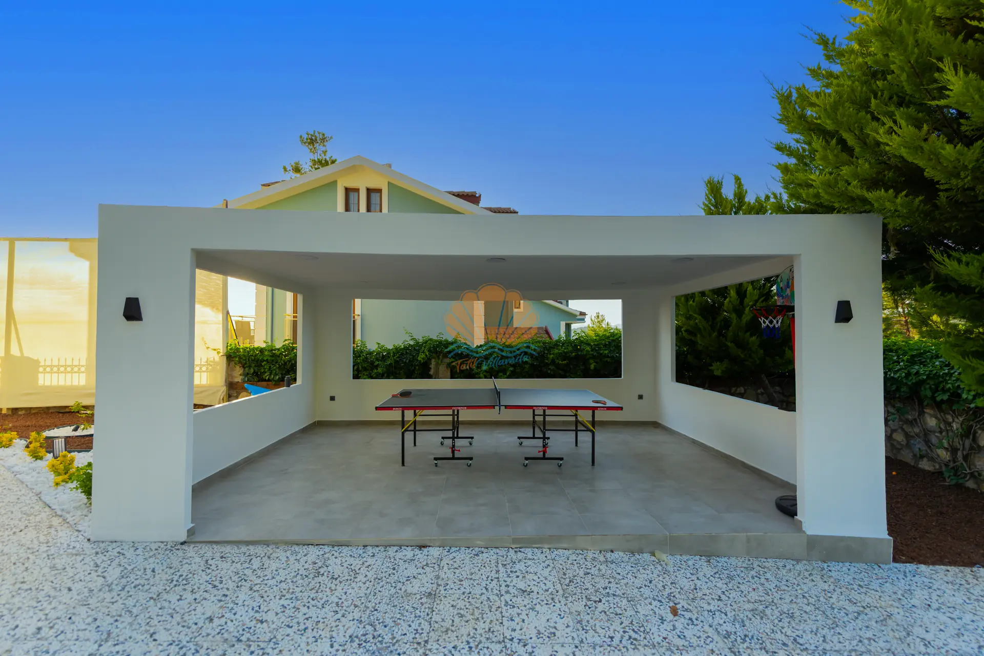 Villanın en dikkat çeken özelliklerinden biri, tamamen size özel geniş yüzme havuzudur. Havuz başında konforlu şezlonglar, şemsiye, bahçe oturma grubu ve keyifli akşam yemekleri için masa takımı yer almaktadır. Barbekü alanı sayesinde sevdiklerinizle birlikte lezzetli mangal keyfi yapabilirsiniz. Geniş ve düzenli bahçesi sadece yetişkinler için değil, çocuklar için de eğlenceli bir alan sunar. Bahçede yer alan masa tenisi ile keyifli vakit geçirebilir, mini çocuk oyun parkı sayesinde çocuklarınızın güvenle eğlenmesini sağlayabilirsiniz.
