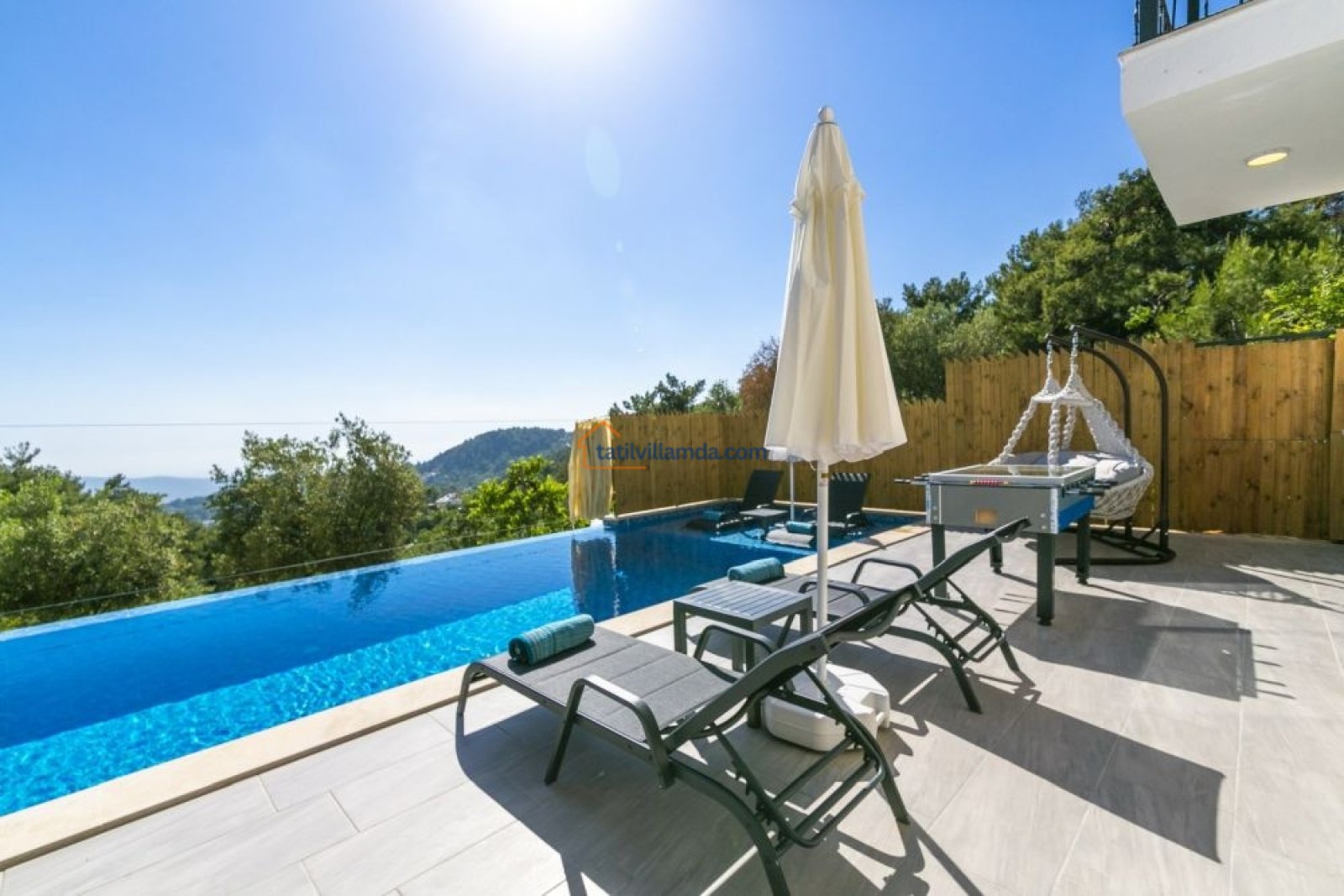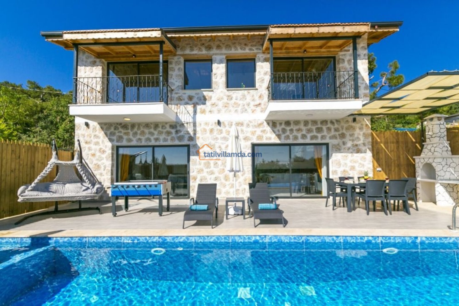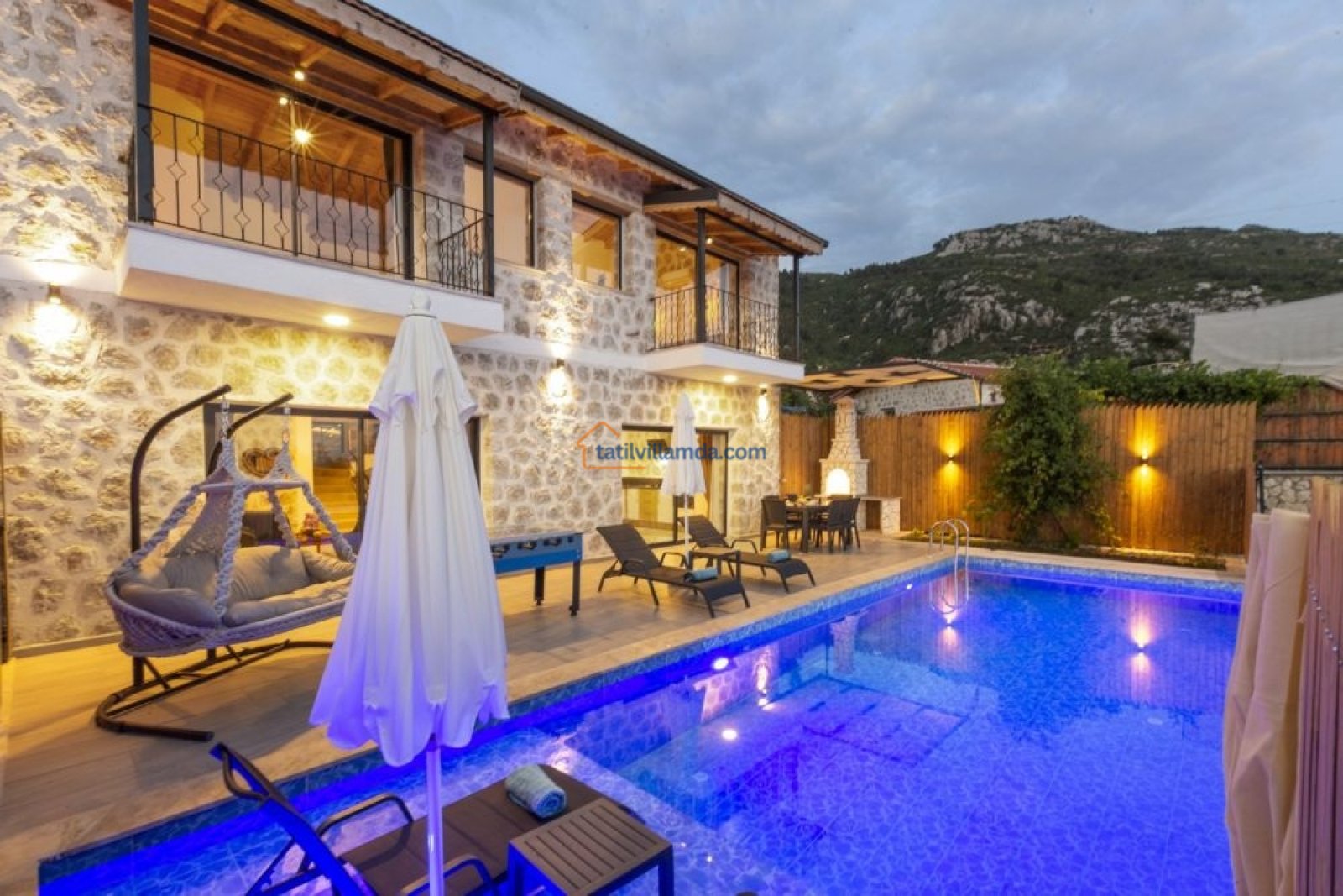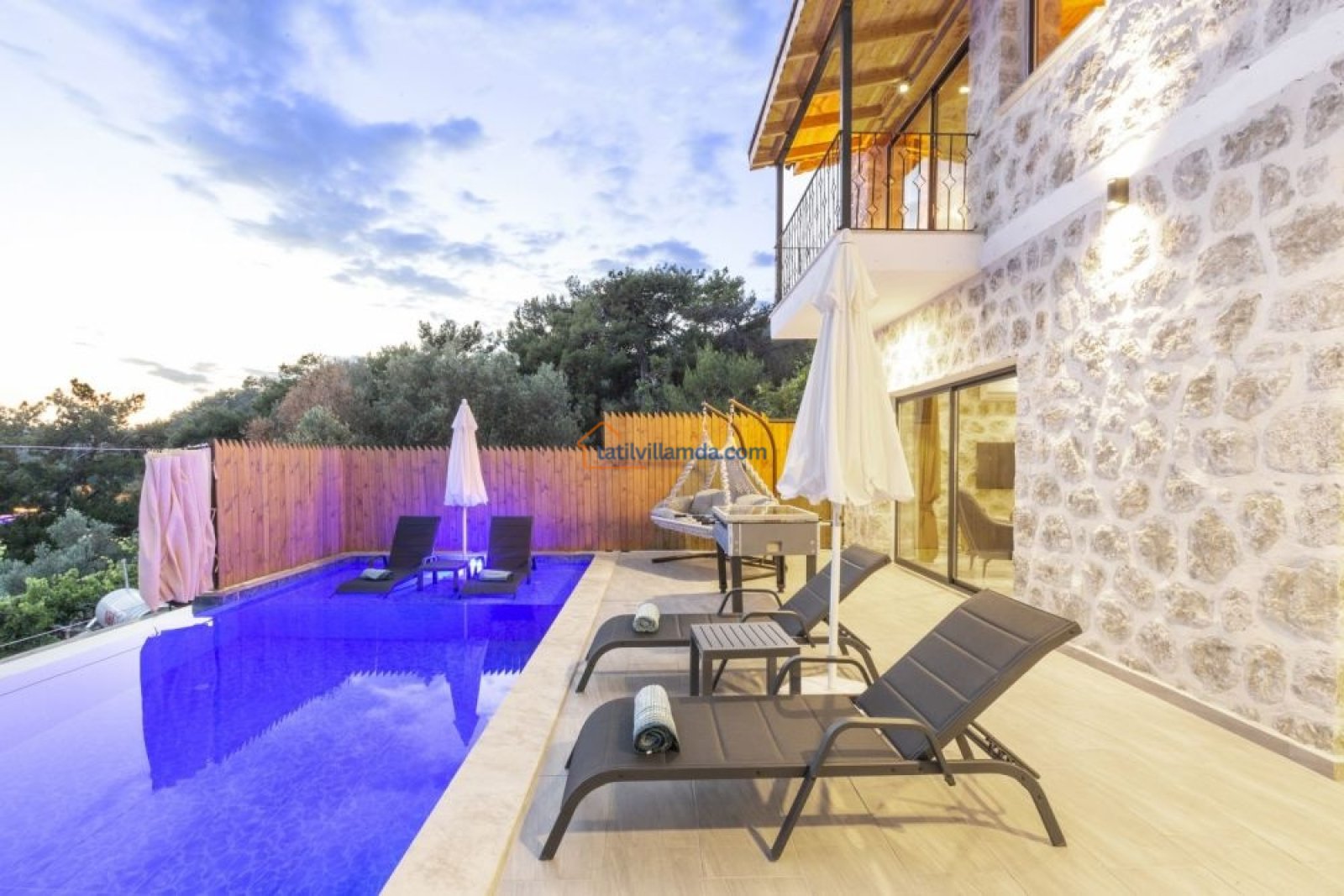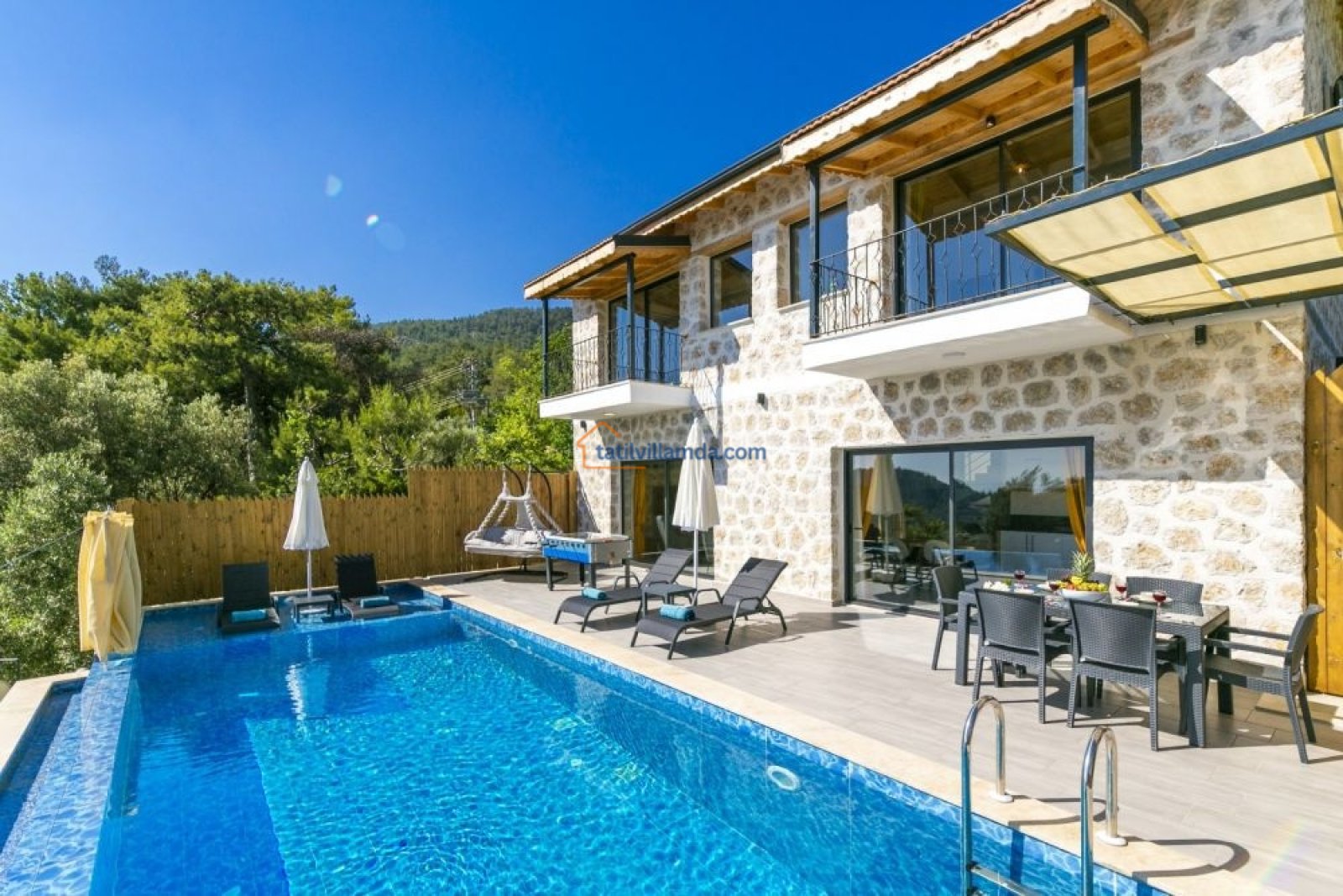 Villa, 2 yatak odasıyla toplamda 4 kişilik konaklama kapasitesine sahiptir. Hem çekirdek aileler hem de arkadaş grupları için uygundur. Modern ve konforlu iç dizaynı sayesinde kendinizi evinizde gibi hissedeceksiniz. Villanın havuz başında bulunan langırt masası, eğlenceli vakit geçirmeniz için güzel bir alternatiftir. Aynı zamanda salıncak keyfiyle doğanın tadını çıkarabilir, güneşin batışını huzur içinde izleyebilirsiniz.