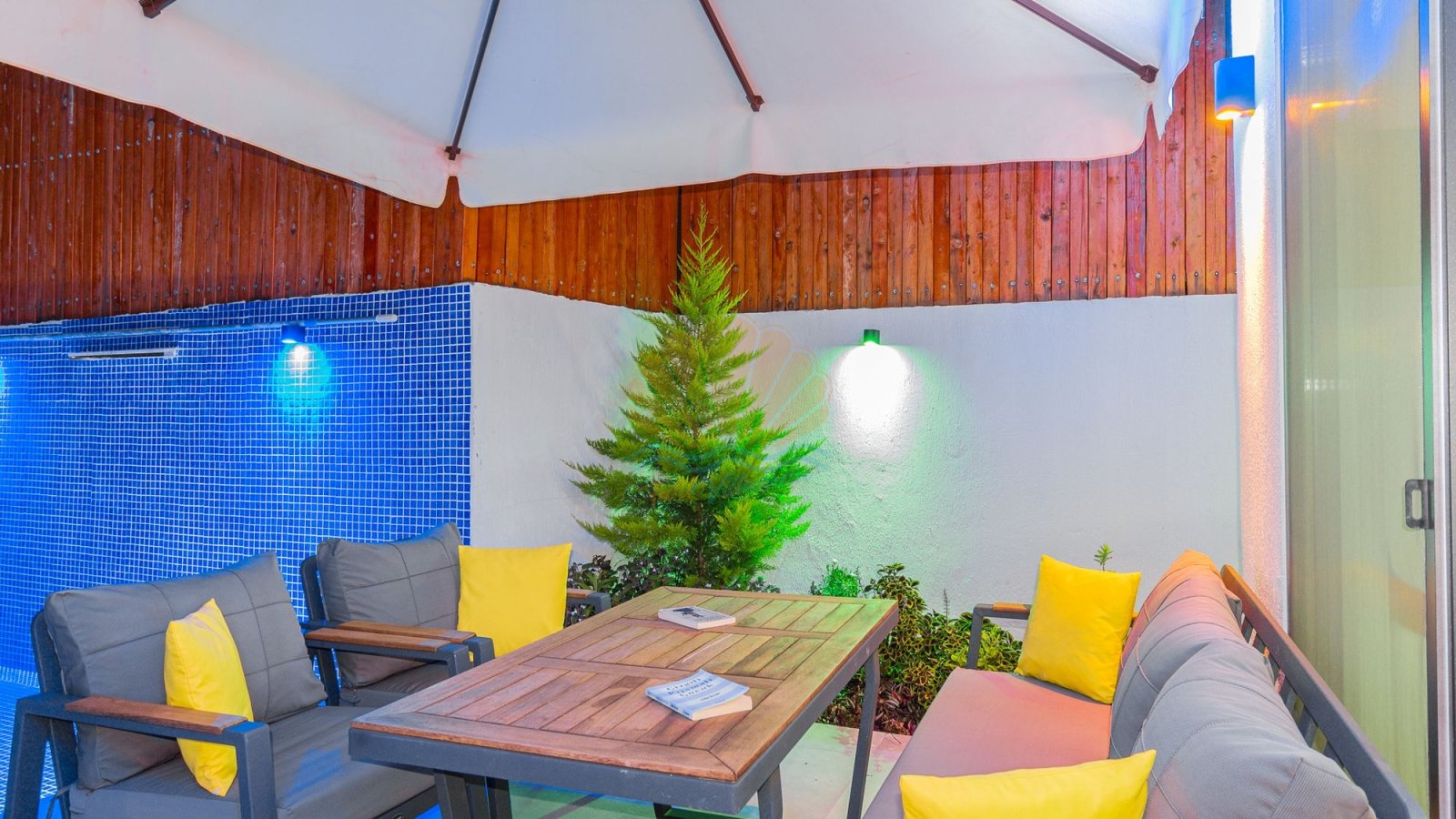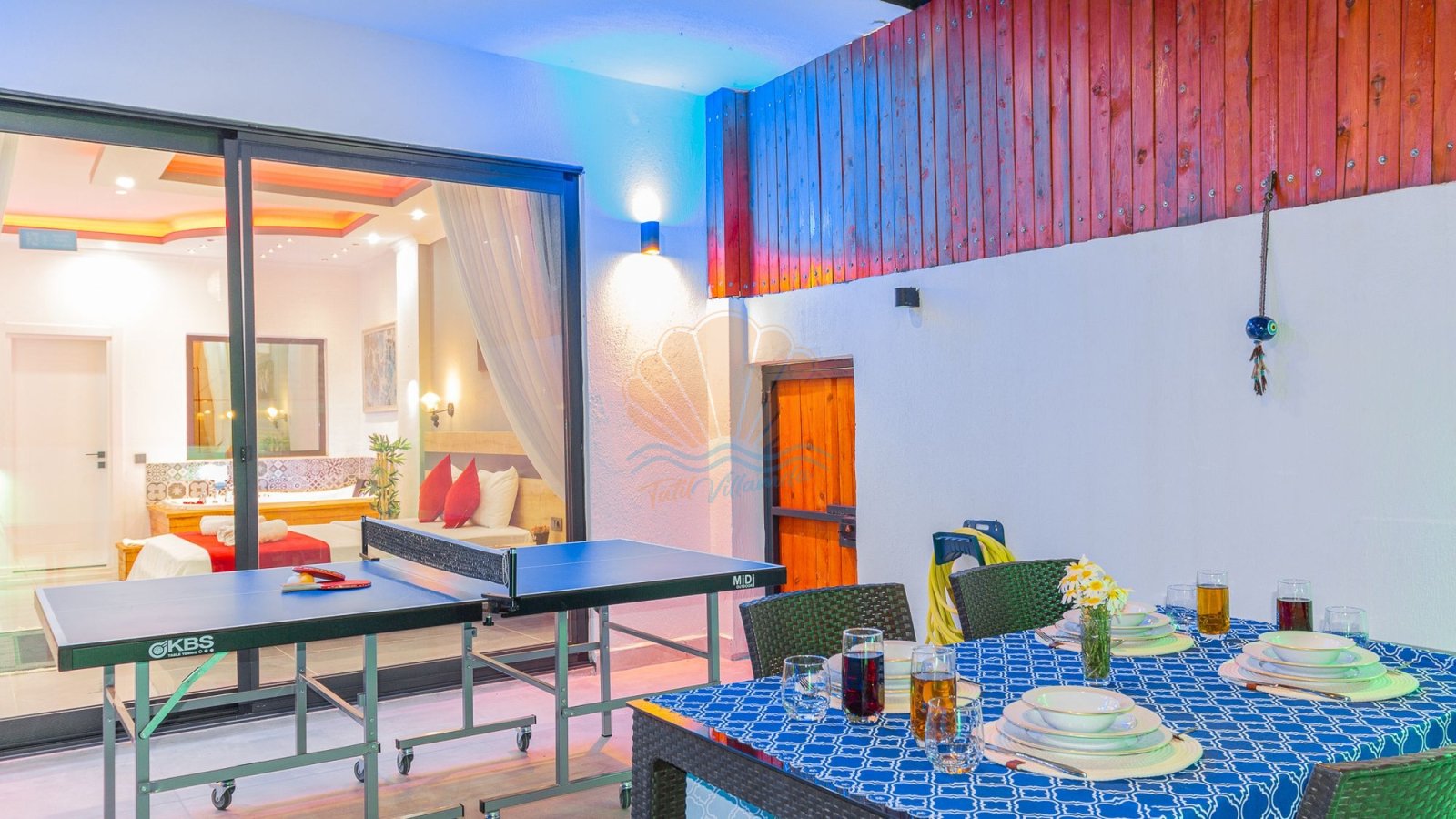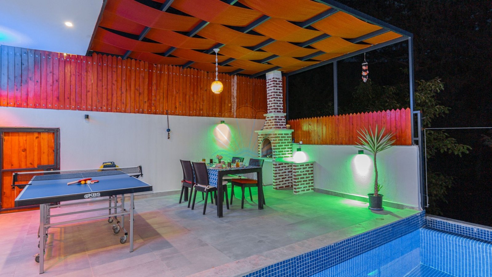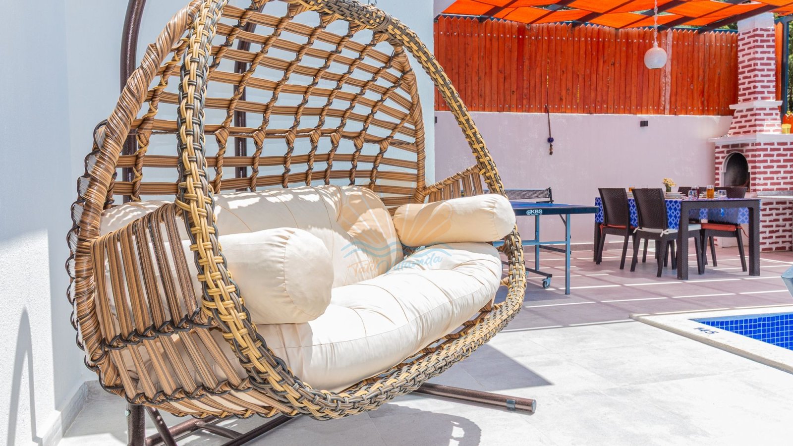 Geniş havuz terasında şezlonglar, şemsiye, salıncak ve masa takımı yer almakta olup gün boyu güneşin ve temiz havanın tadını çıkarabilirsiniz. Barbekü alanı, sevdiklerinizle keyifli akşam yemekleri hazırlamanıza olanak tanırken, masa tenisi ise tatilinize eğlenceli anlar katar.