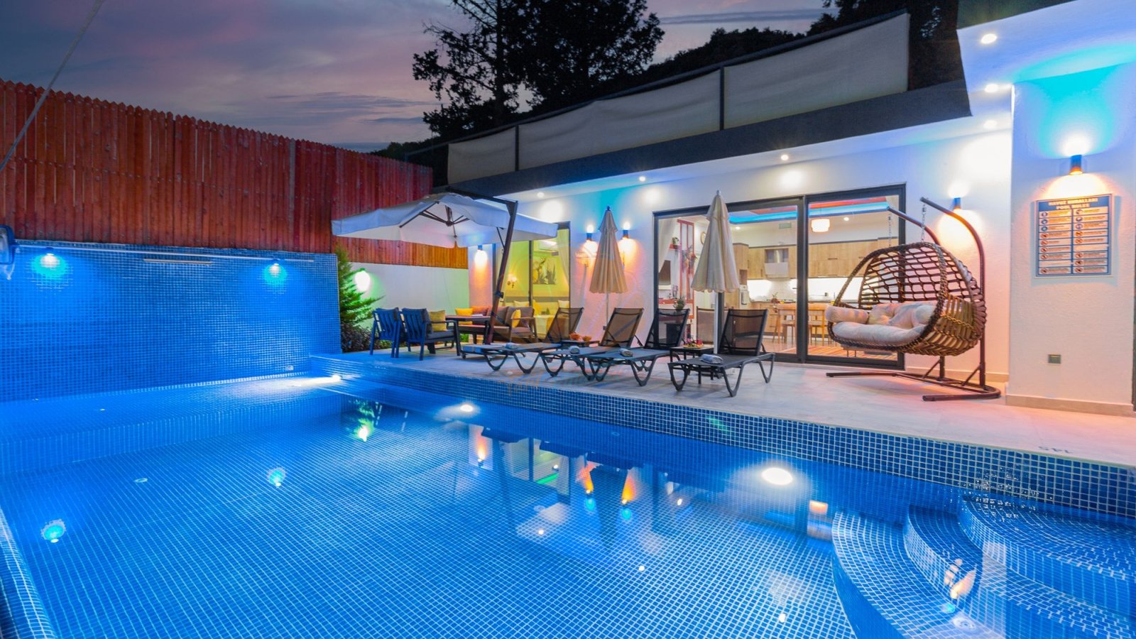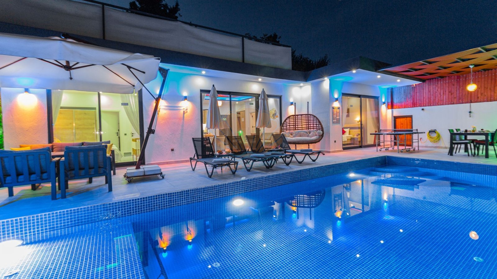 Kalkan’ın doğayla iç içe ve sakin atmosferiyle öne çıkan İslamlar mevkiinde konumlanmaktadır. Şehrin kalabalığından uzak, huzurlu bir tatil arayan misafirler için özenle tasarlanmış bu villa, korunaklı ve geniş havuz alanı sayesinde muhafazakâr aileler ve balayı çiftleri için ideal bir konaklama seçeneği sunar. Doğa manzarası eşliğinde güne başlamak, kuş sesleri arasında dinlenmek isteyenler için keyifli bir ortam sağlar.