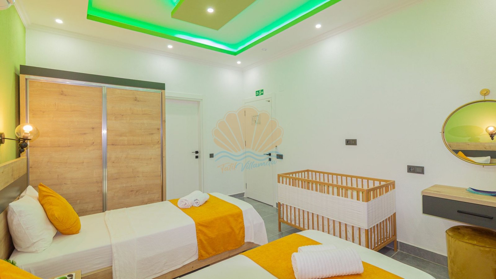 Toplamda 2 yatak odasına sahip olan Villa Nar Çiçeği 2, 4 kişilik konaklama kapasitesiyle aileler ve arkadaş grupları için uygundur. Modern ve konforlu bir şekilde dekore edilmiş yatak odalarında rahat bir tatil için ihtiyaç duyabileceğiniz tüm detaylar düşünülmüştür. Villada yer alan jakuzi, günün yorgunluğunu atmak ve tatilinize küçük bir lüks dokunuş katmak isteyen misafirler için hoş bir ayrıcalık sunar.