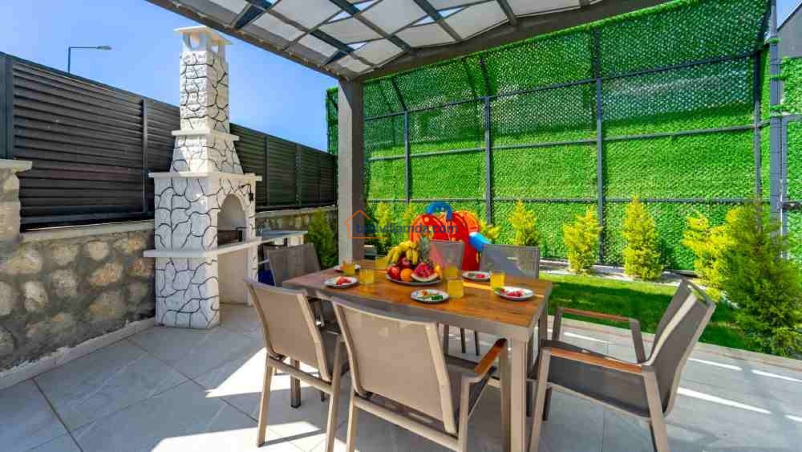 * Doğa ile iç içe olan tüm villalarımızda düzenli olarak ilaçlama yapılmaktadır. Bütün önlemlere rağmen çevrede kelebek, böcek, sinek vs. bulunma ihtimali vardır.