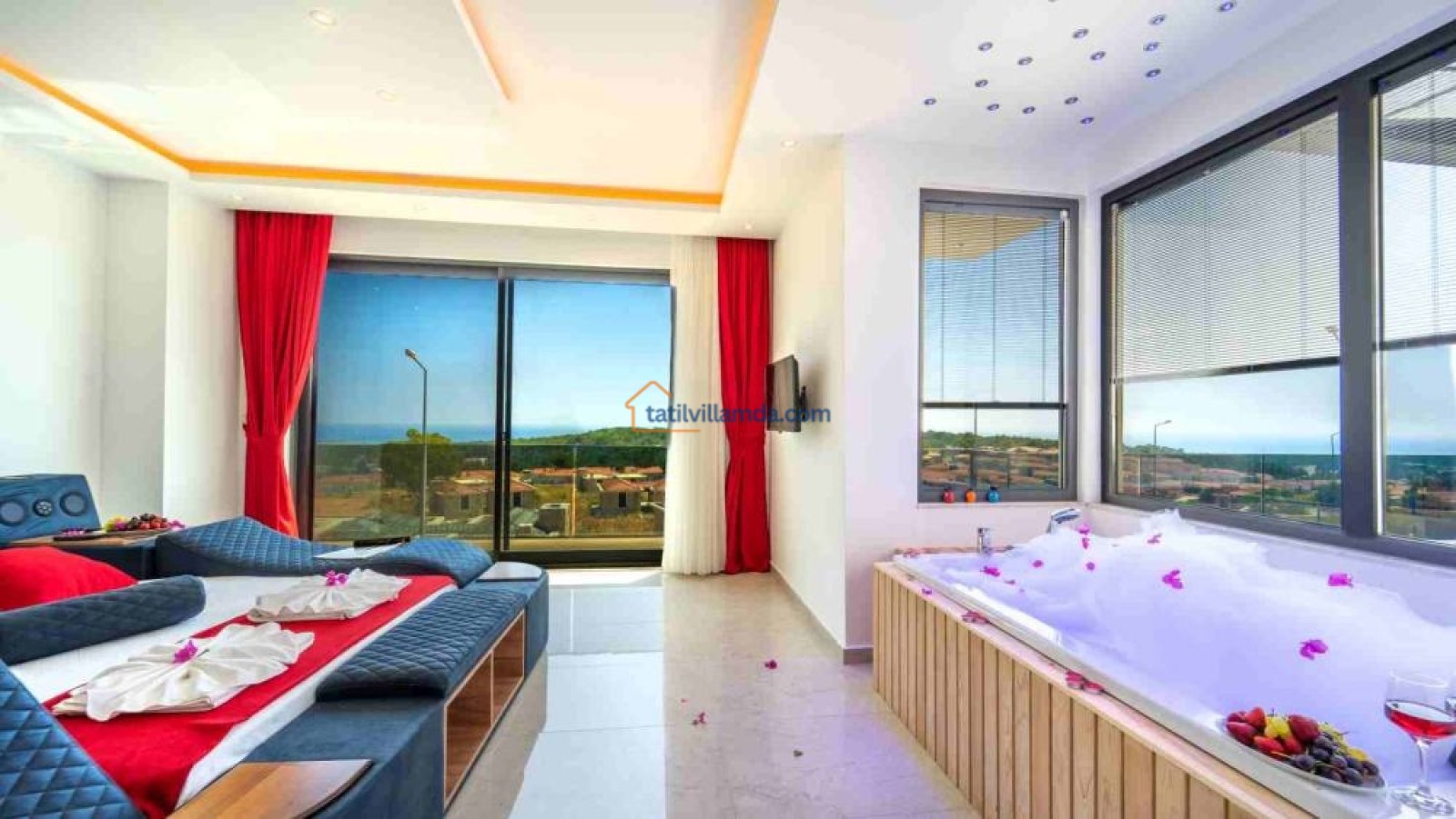 Villada 2 yatak odası bulunmakta olup, her iki odada da jakuzi mevcuttur. Yatak odalarında 2 çift kişilik yatak ve 1 tek kişilik yatak yer alır. Bu sayede hem aileler hem de arkadaş grupları için rahat bir konaklama alanı sunar.