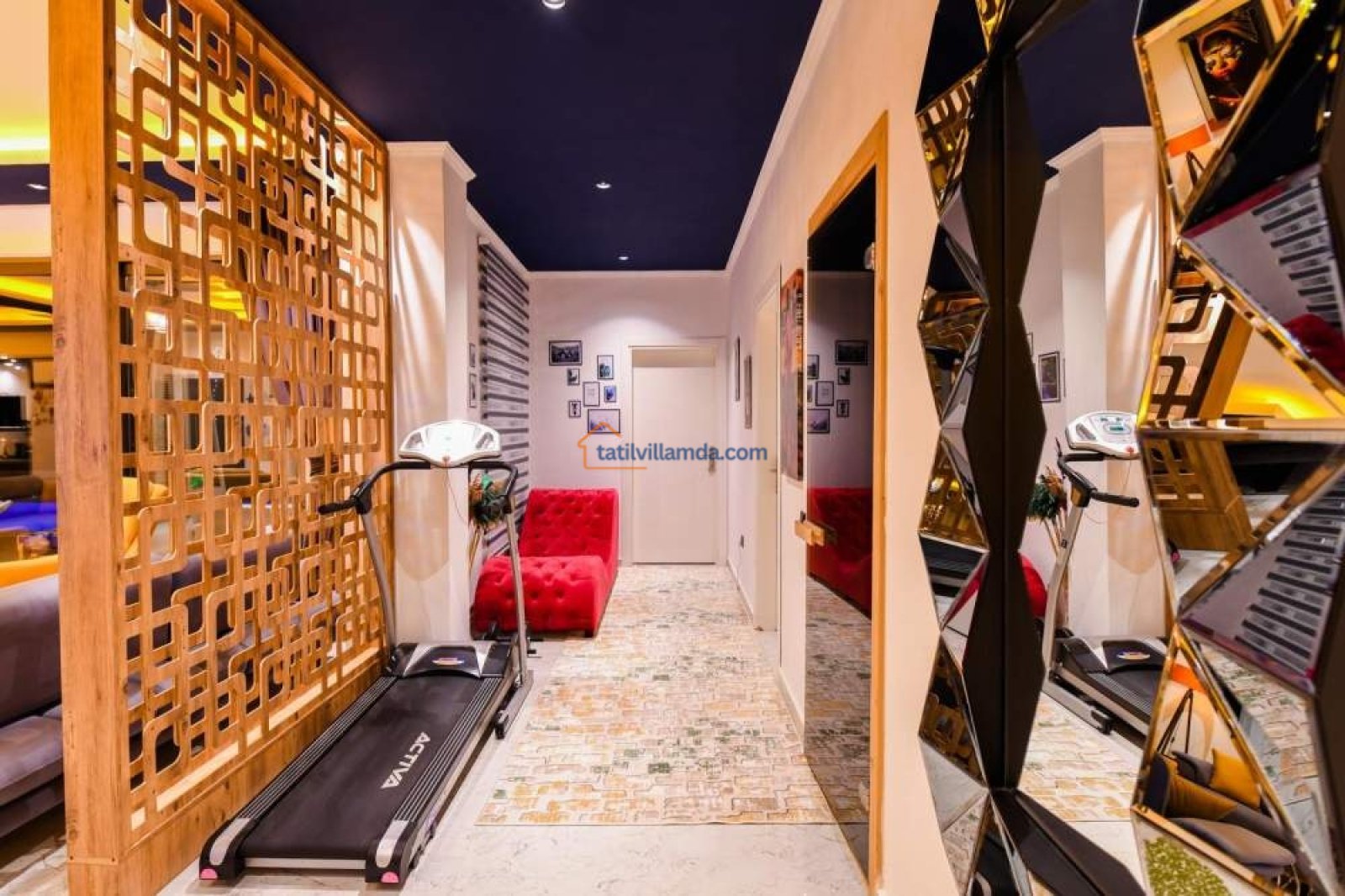 Villada iki adet jakuzi bulunuyor: her iki yatak odasında. Böylece dilediğiniz her an rahatlamanın tadını çıkarabilirsiniz. Sağlığınızı ve formunuzu korumak isteyenler için yürüyüş bandı ve sauna da düşünülmüş. Ayrıca masaj koltuğu da bulunmaktadır. Eğlenceli vakit geçirmek isteyen misafirler için masa tenisi, langırt gibi aktiviteler de mevcut. Ayrı bir oda sinema odası olarak düşünülmüş.