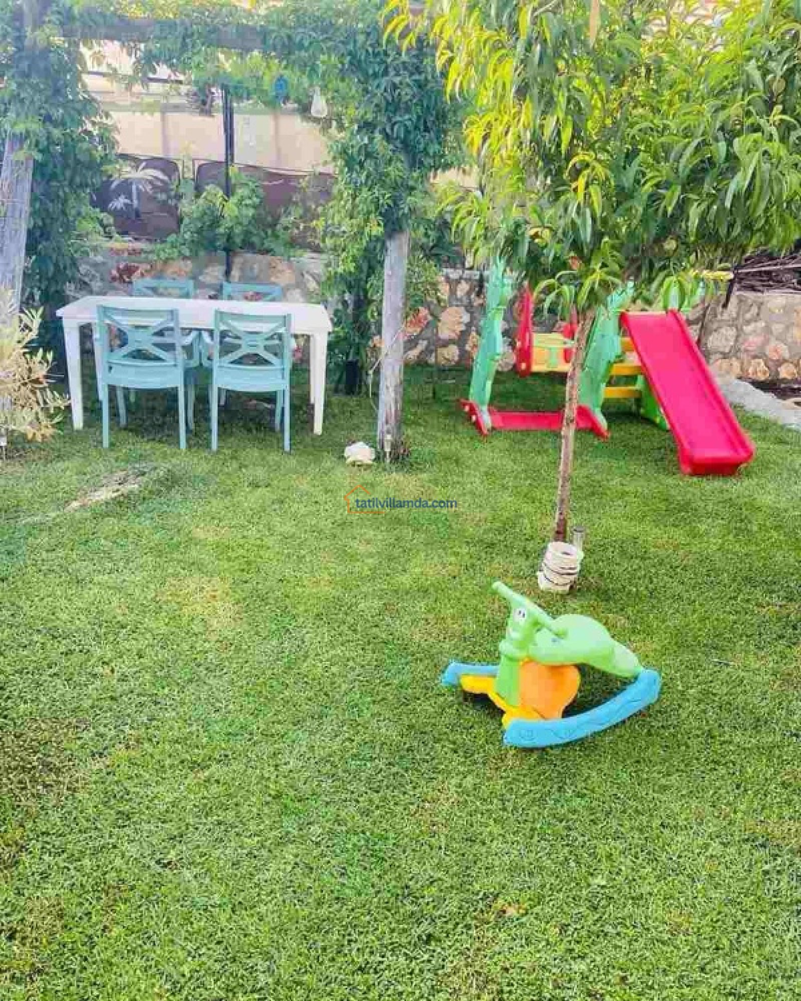 Geniş havuz alanı, şezlonglar, şemsiye, salıncak ve otantik bir şark köşesi ile donatılmış. Çocuklu aileler için özel olarak hazırlanmış mini oyun alanı sayesinde minikler de tatilin tadını doyasıya çıkarabilir.