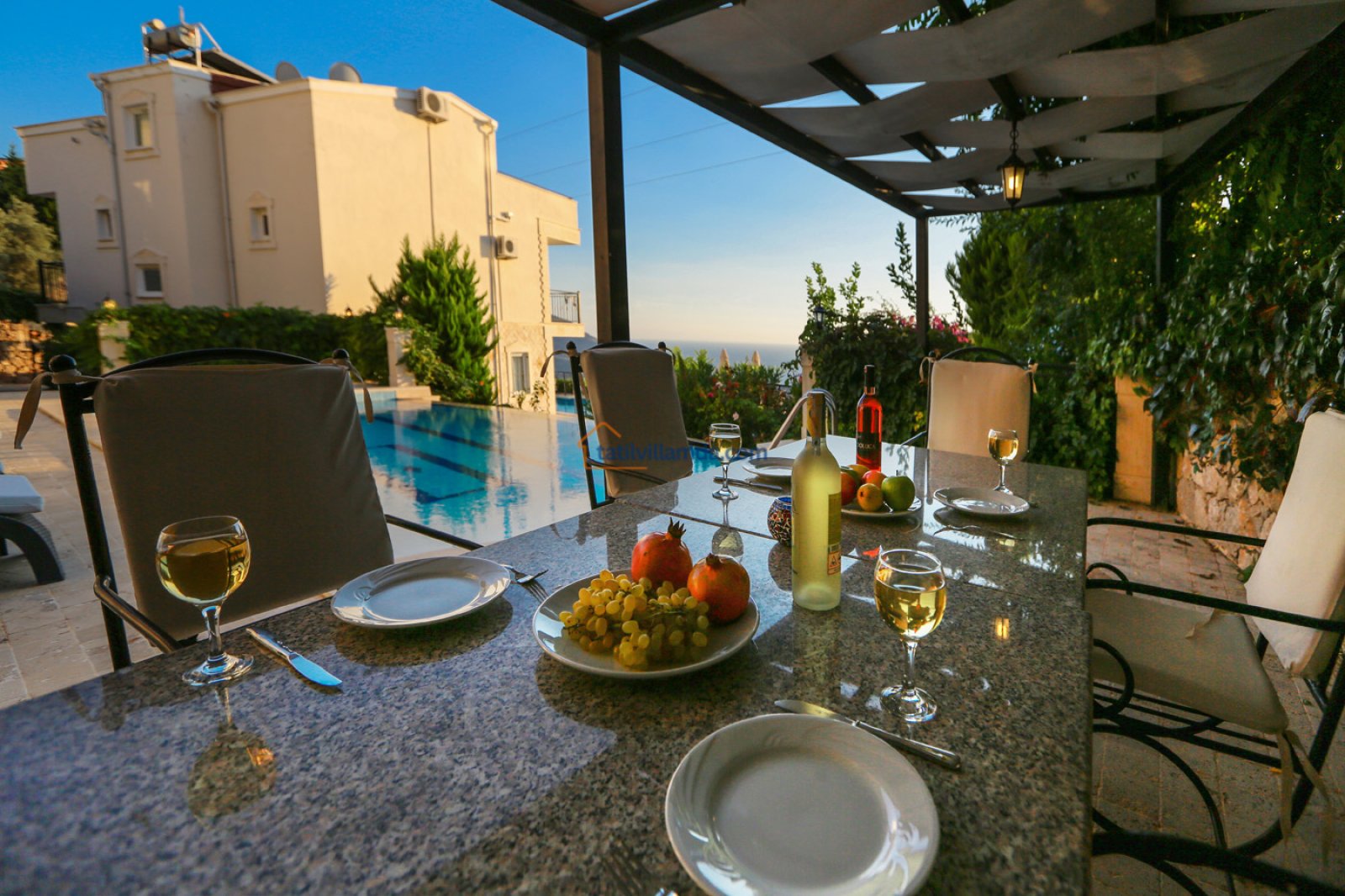 Havuz başında şezlong, şemsiye, masa takımı ve barbekü alanı yer almaktadır. Misafirler gün boyu güneşlenebilir, havuz keyfi yapabilir veya akşam saatlerinde barbekü eşliğinde manzaralı keyifli bir akşam geçirebilir. Doğa ve deniz manzarasına karşı huzurlu bir tatil deneyimi sunan Villa Sarnıç, Kalkan’da keyifli bir konaklama arayan herkes için ideal bir tercihtir.