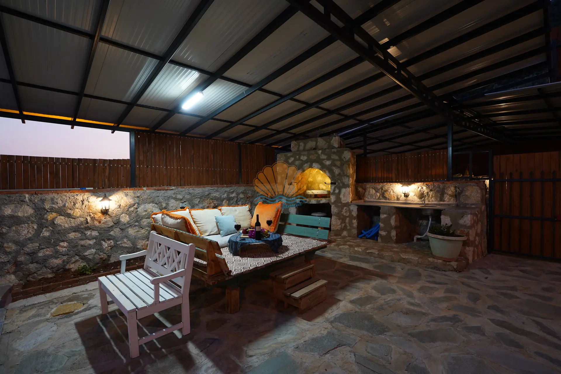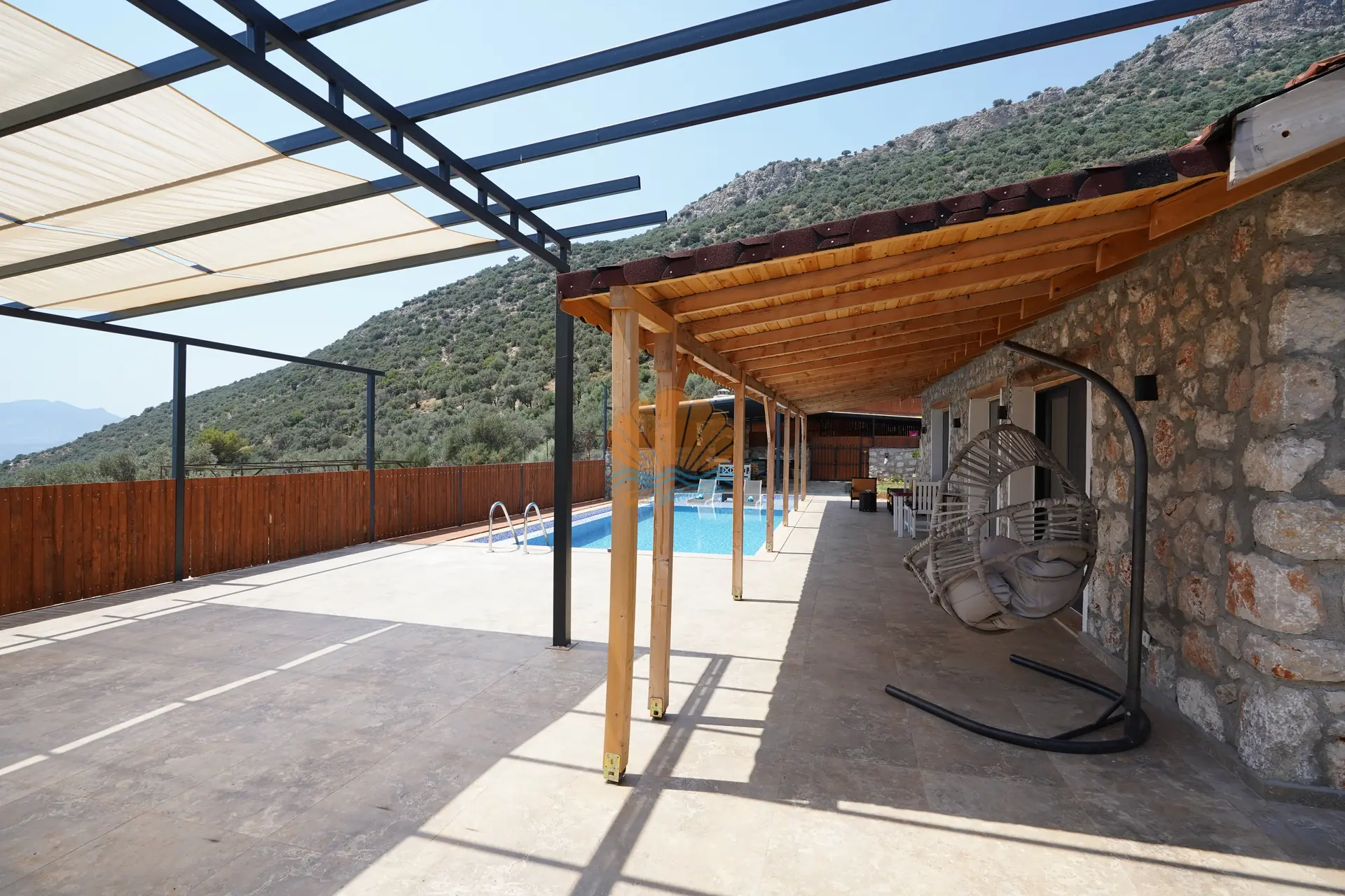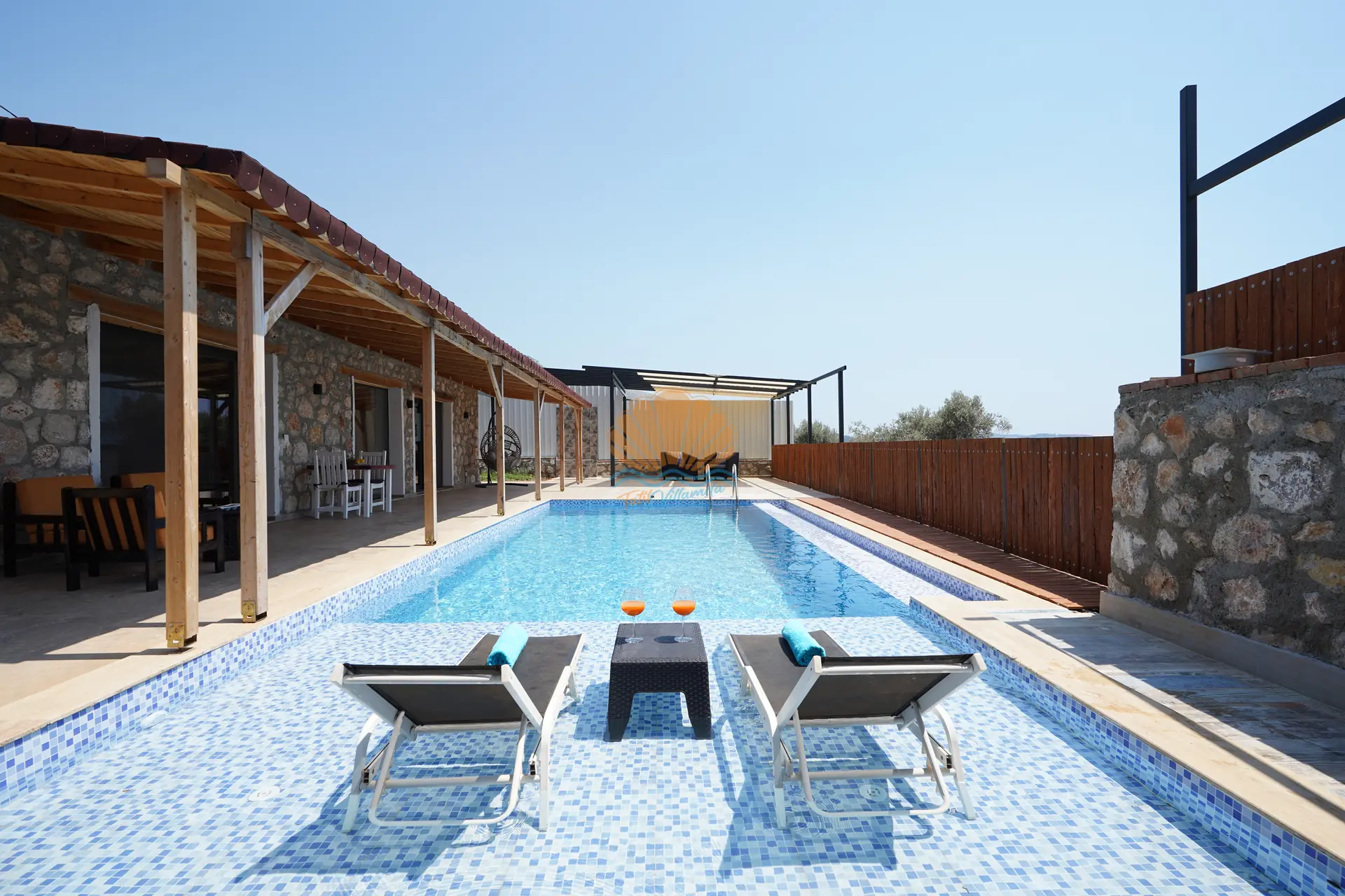 Villanın geniş ve korunaklı özel havuzu, dışarıdan görünmeyecek şekilde tasarlanmıştır. Bu sayede gözlerden uzak, özgürce yüzme ve güneşlenme imkânı sunar. Havuz başında yer alan şezlonglar, gün boyu güneşin tadını çıkarmanıza olanak tanırken; çardak, salıncak ve oturma köşesi ise sevdiklerinizle keyifli vakit geçirebileceğiniz alanlar sunar. Ayrıca barbekü alanı sayesinde akşam yemeklerinizi açık havada, doğa eşliğinde hazırlayabilirsiniz.