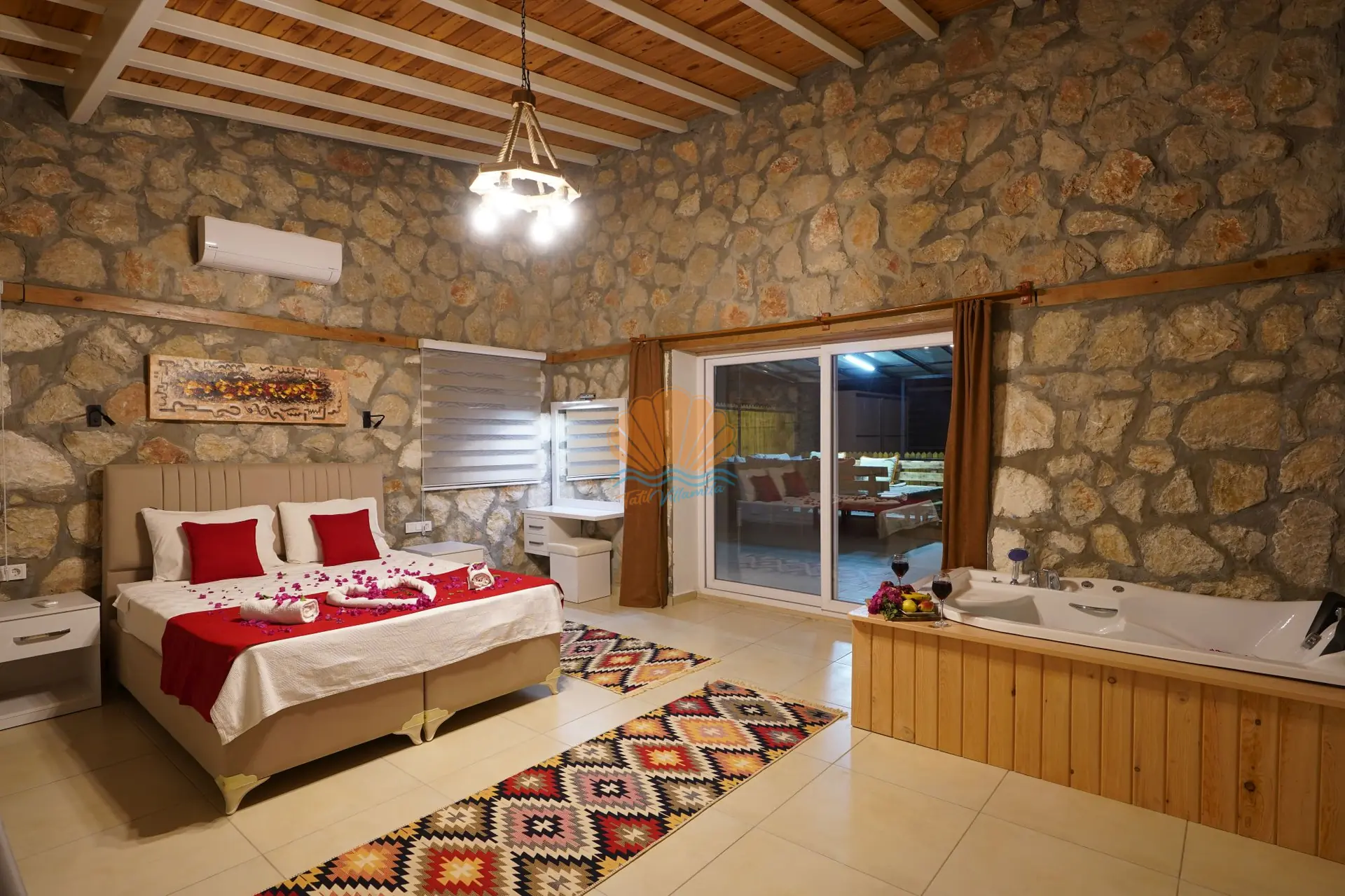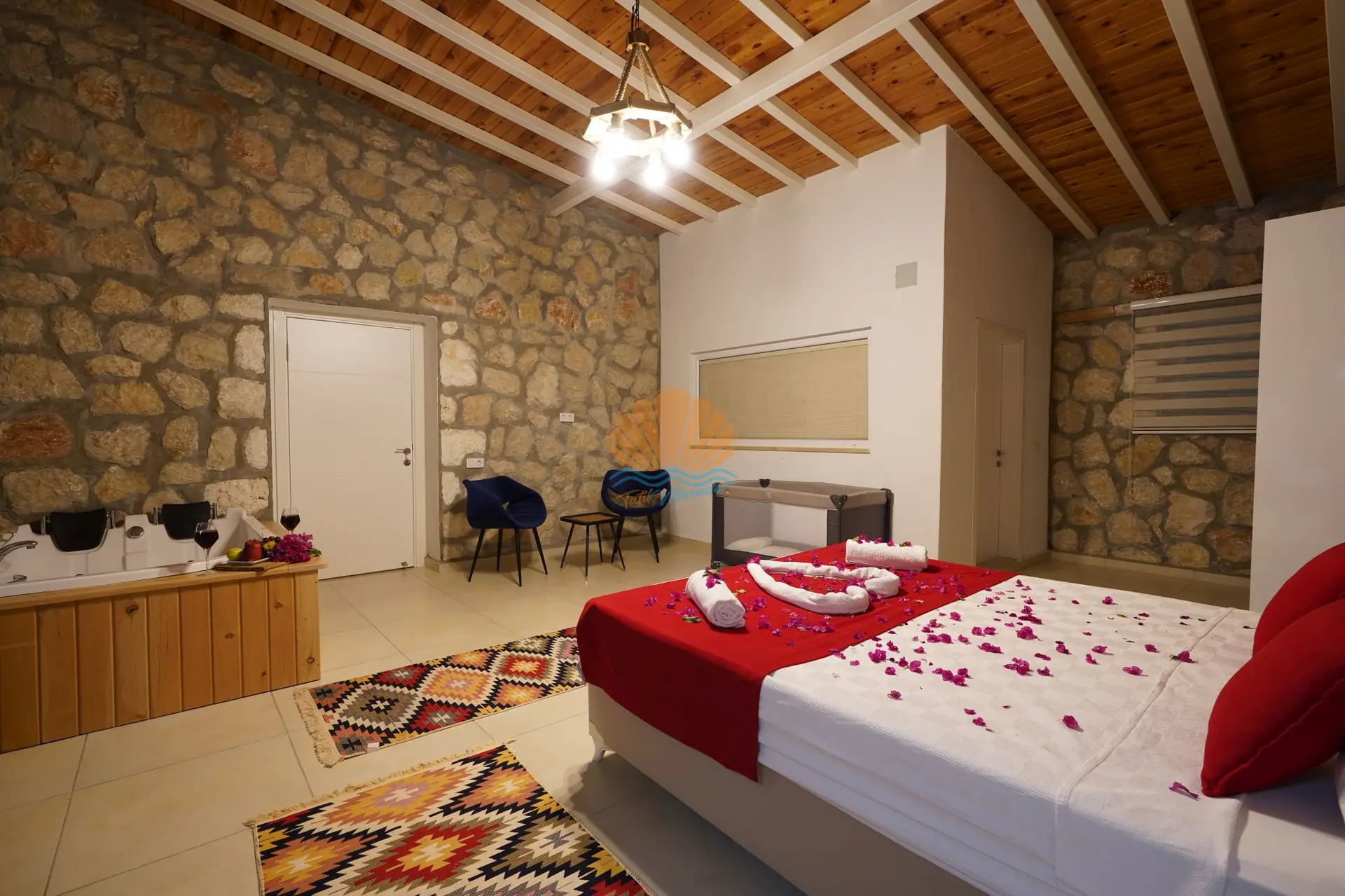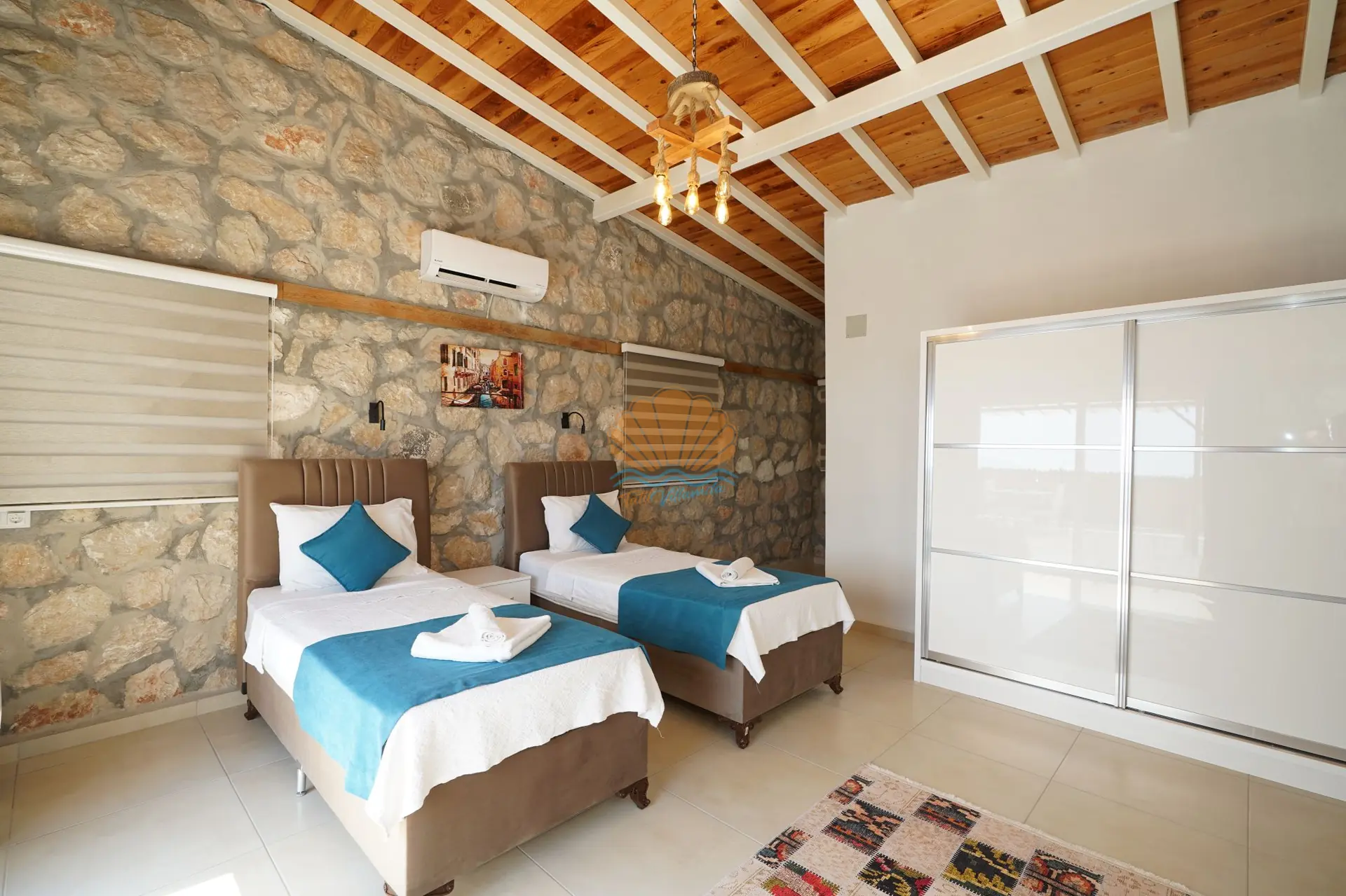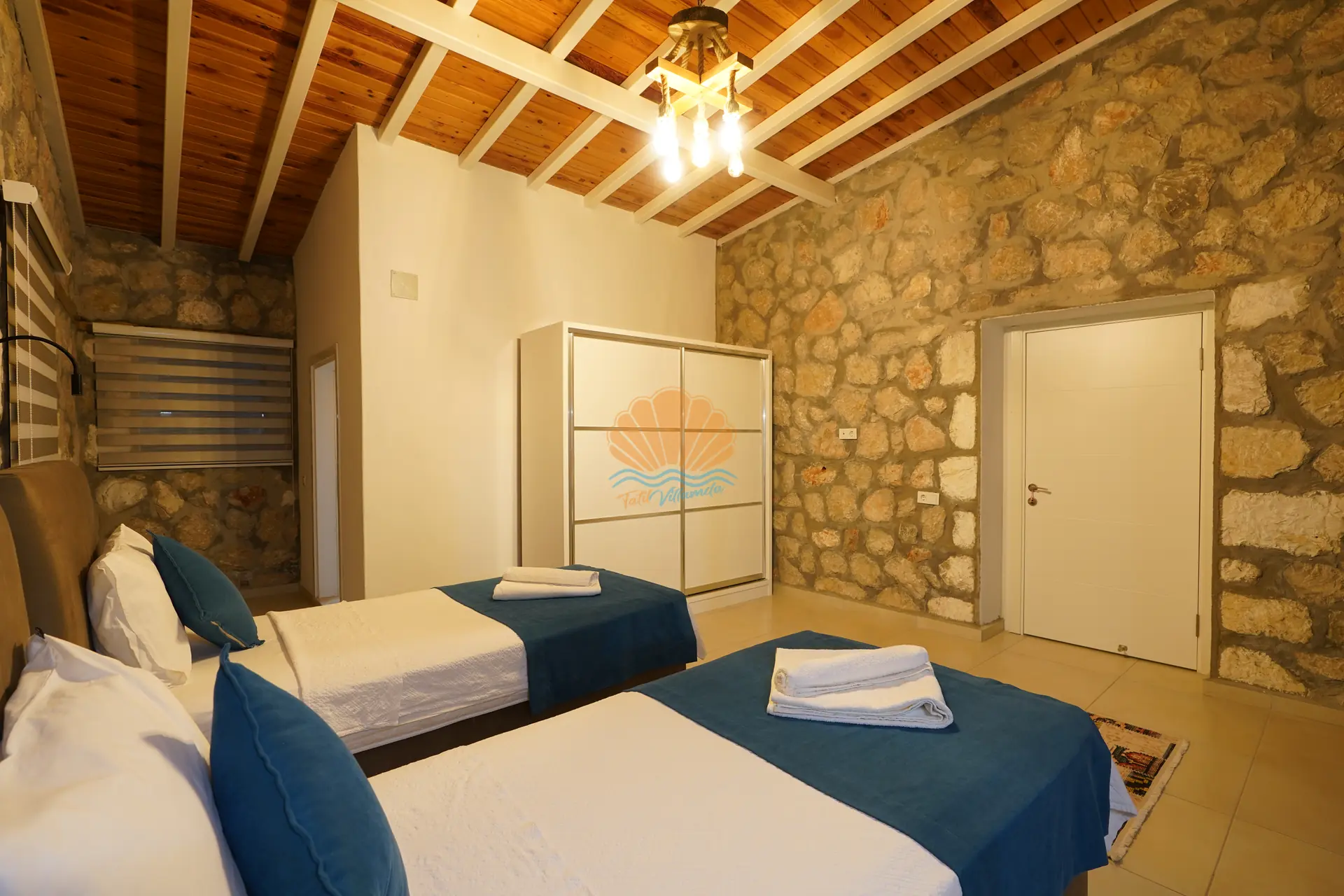 2 yatak odasına sahip olan villa, toplamda 4 kişilik konaklama kapasitesine sahiptir. Odaların tamamı ebeveyn banyolu olup misafirlere maksimum konfor ve mahremiyet sunar. Ayrıca villada yer alan jakuzi, günün yorgunluğunu atmak ve rahatlamak isteyen misafirler için keyifli bir ayrıcalık sağlamaktadır. İç dekorasyonda modern ve şık detaylar tercih edilmiş olup, ihtiyaç duyulabilecek tüm ekipmanlar eksiksiz şekilde sunulmuştur.