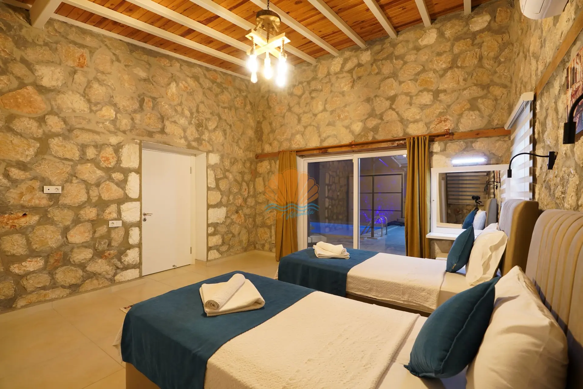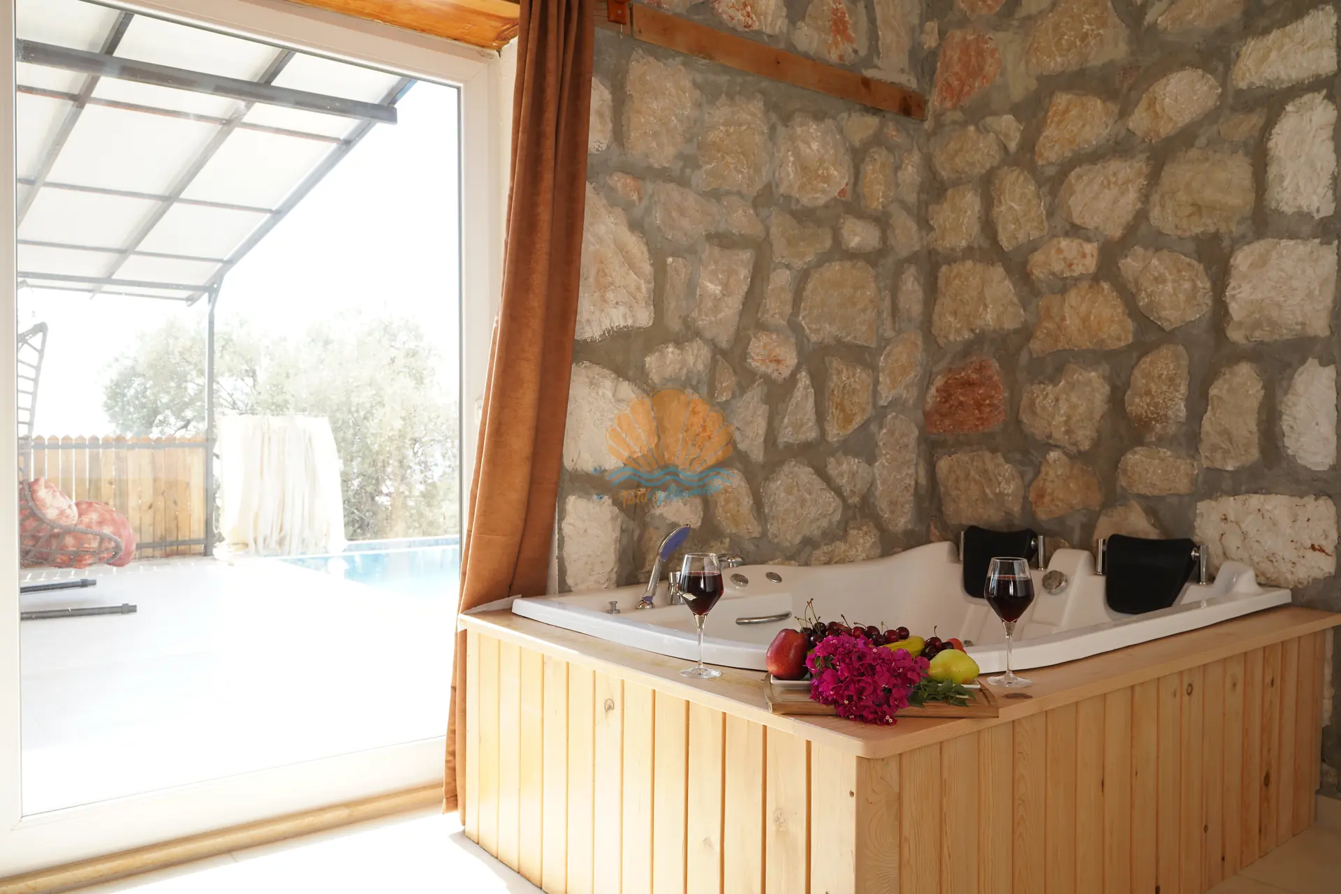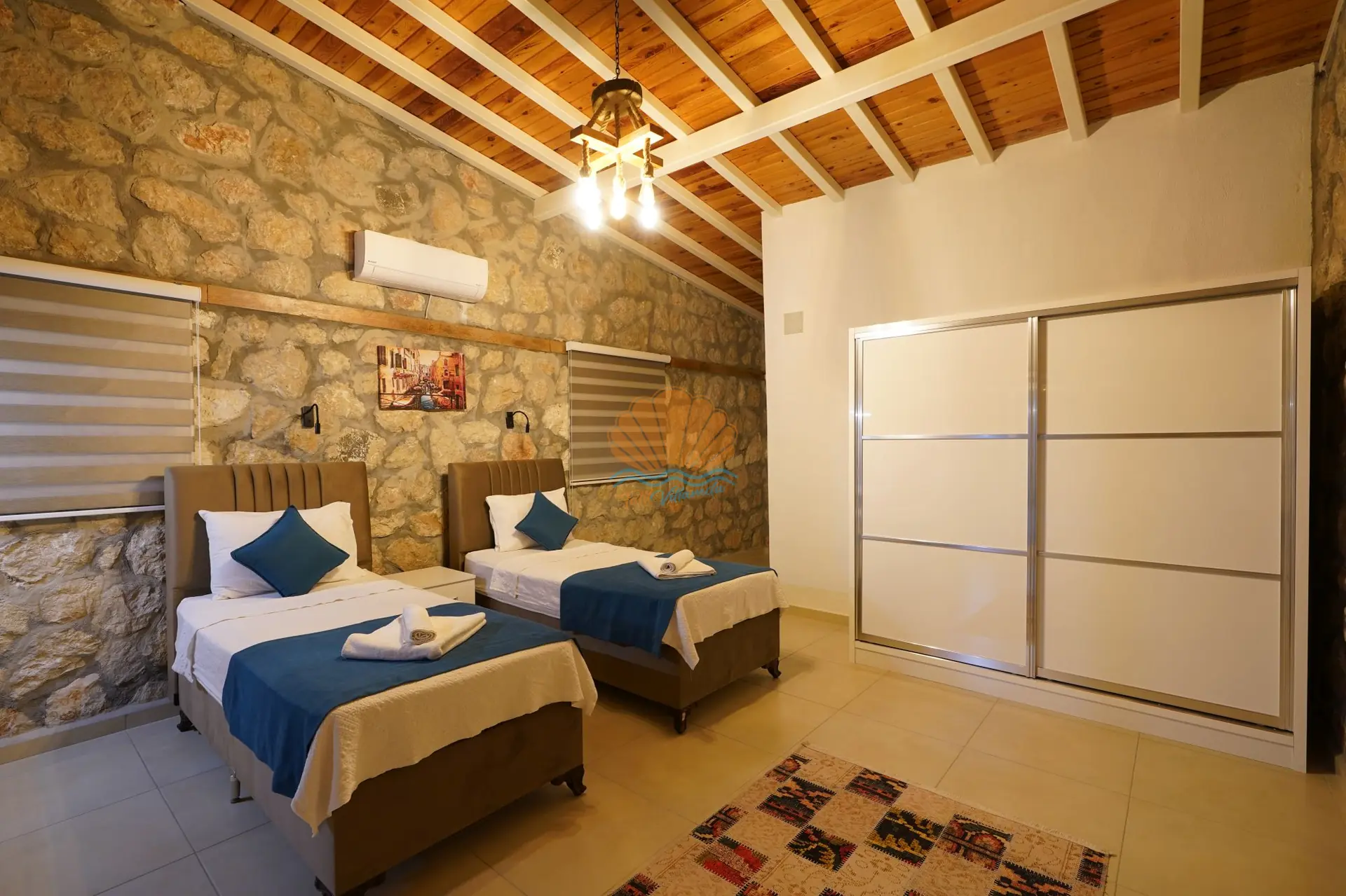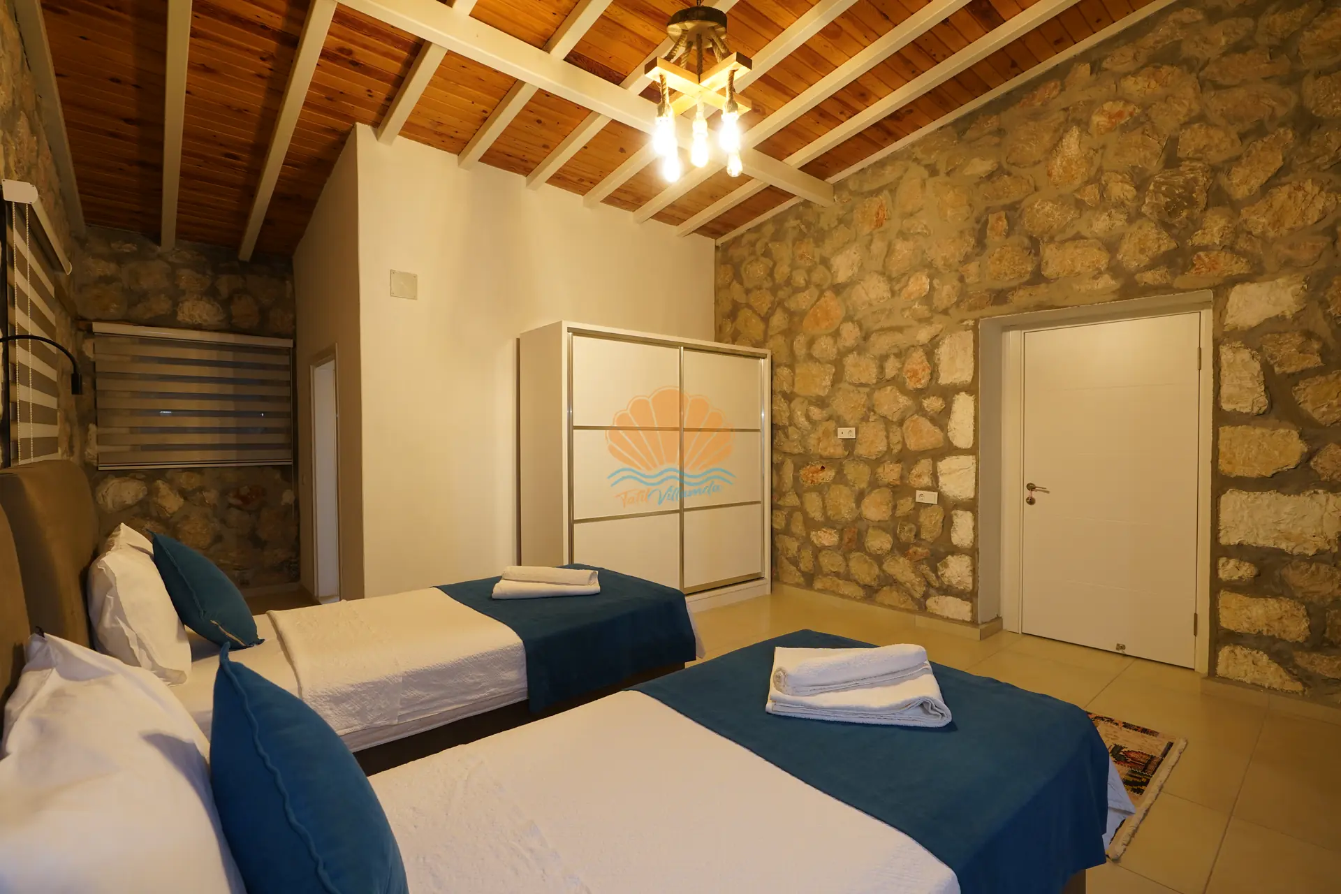 2 yatak odasına sahip olan villa, toplamda 4 kişilik konaklama kapasitesine sahiptir. Odaların tamamı ebeveyn banyolu olup misafirlere maksimum konfor ve mahremiyet sunar. Ayrıca villada yer alan jakuzi, günün yorgunluğunu atmak ve rahatlamak isteyen misafirler için keyifli bir ayrıcalık sağlamaktadır. İç dekorasyonda modern ve şık detaylar tercih edilmiş olup, ihtiyaç duyulabilecek tüm ekipmanlar eksiksiz şekilde sunulmuştur.