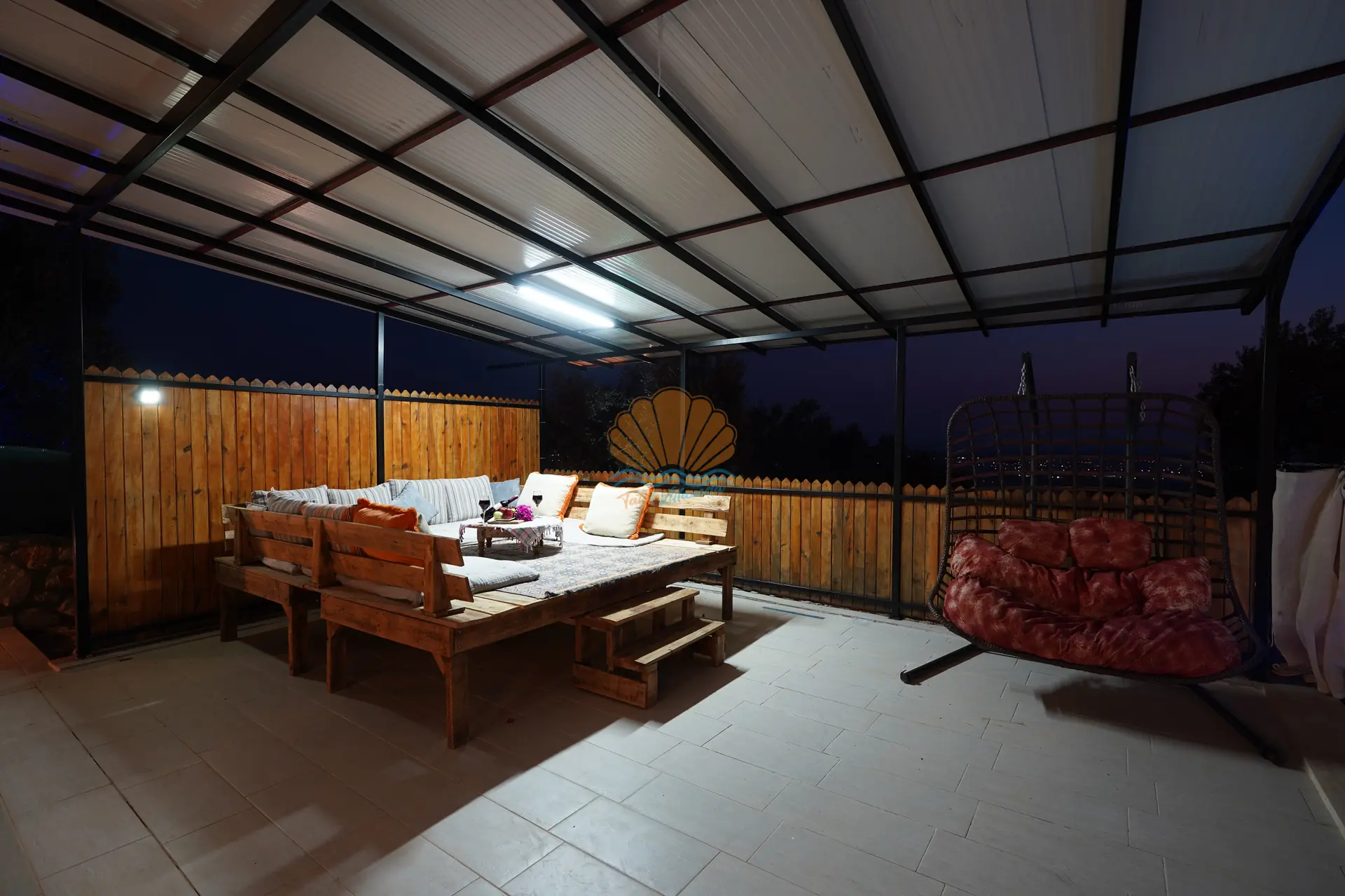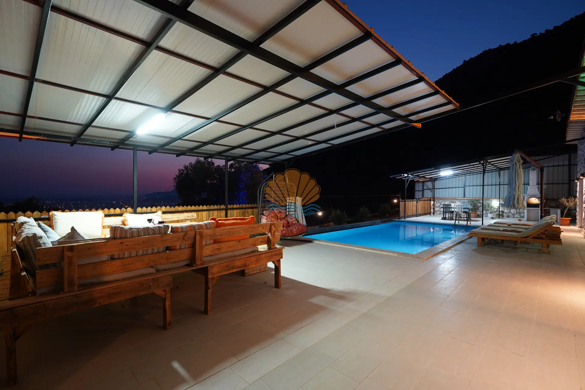 Villanın geniş ve korunaklı özel havuzu, dışarıdan görünmeyecek şekilde tasarlanmıştır. Bu sayede gözlerden uzak, özgürce yüzme ve güneşlenme imkânı sunar. Havuz başında yer alan şezlonglar, gün boyu güneşin tadını çıkarmanıza olanak tanırken; çardak, salıncak ve oturma köşesi ise sevdiklerinizle keyifli vakit geçirebileceğiniz alanlar sunar. Ayrıca barbekü alanı sayesinde akşam yemeklerinizi açık havada, doğa eşliğinde hazırlayabilirsiniz.