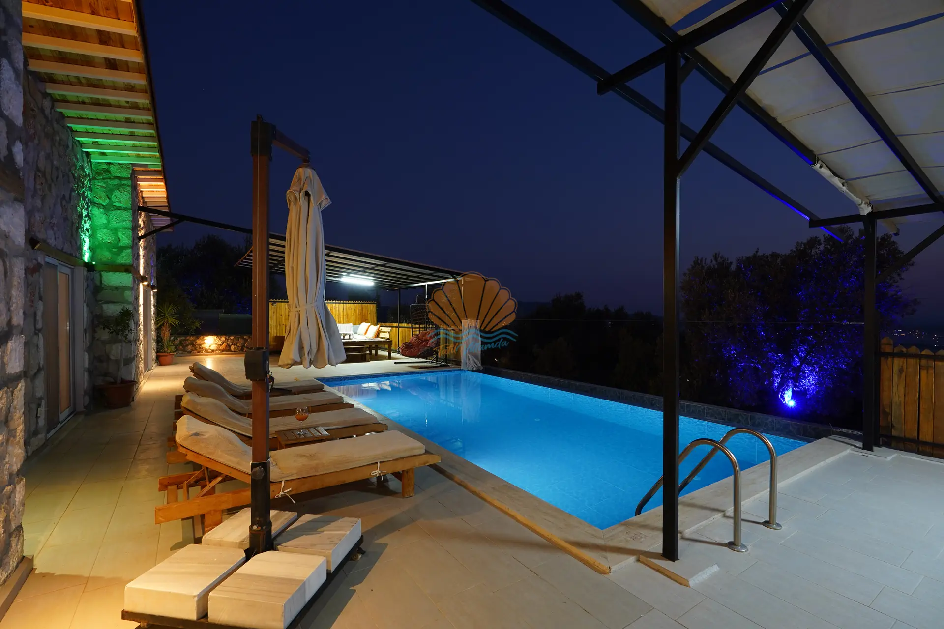 Kalkan’ın doğayla iç içe ve huzurlu bölgelerinden biri olan Çayköy mevkiinde konumlanmaktadır. Şehrin kalabalığından uzak, sakin bir tatil arayan misafirler için ideal olan bu villa, korunaklı yapısı sayesinde özellikle muhafazakâr aileler ve balayı çiftleri tarafından tercih edilmektedir. Doğa manzarası eşliğinde keyifli bir tatil sunan Villa Şat 2, konforlu ve modern detaylarıyla öne çıkar.