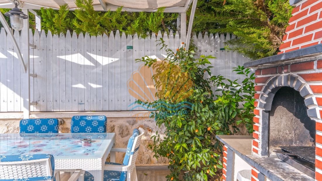 Villanın geniş havuz terası tatilin en keyifli anlarını yaşayabileceğiniz şekilde tasarlanmıştır. Havuz başında şezlonglar ve şemsiye bulunmakta olup güneşin tadını çıkarabilir veya gölgede dinlenebilirsiniz. Aynı zamanda açık havada keyifli yemekler hazırlayabileceğiniz bir barbekü alanı ve masa takımı da mevcuttur. Bahçe kısmında bulunan salıncak ve bahçe oturma grubu, gün batımını izlerken keyifli sohbetler yapabileceğiniz güzel bir alan sunar.
