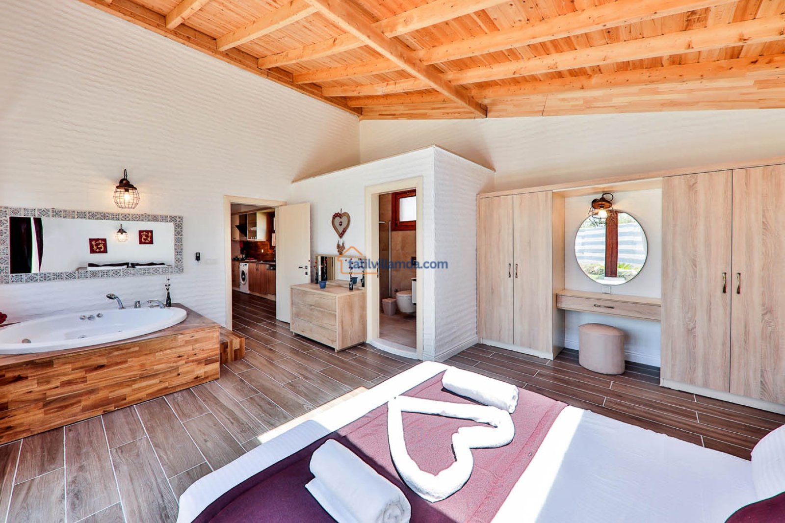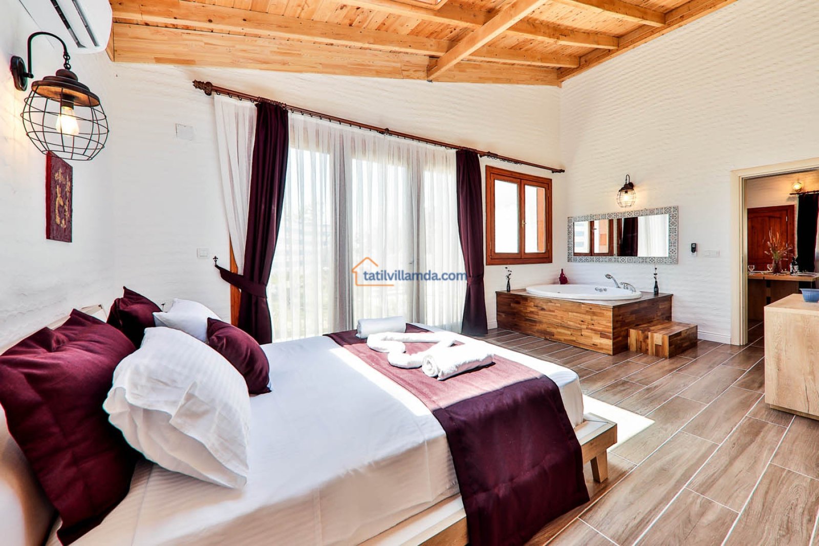 Villanın jakuzili yatak odası, günün yorgunluğunu atmanız için özel bir rahatlama alanı sunar. Bahçesinde ise şezlonglar, şemsiye, salıncak, barbekü alanı, yemek masası, bahçe oturma grubu ve masa tenisi bulunmaktadır. Sabah kahvaltınızı kuş sesleri eşliğinde yapabilir, akşamları ise sevdiklerinizle barbekü keyfi yaşayabilirsiniz.