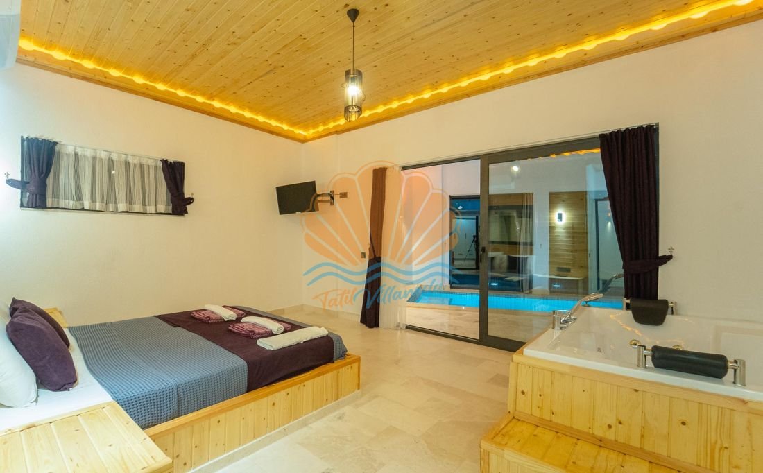 Villada yer alan jakuzi, tatilinize ekstra konfor ve keyif katarken, yılın her döneminde kullanım imkanı sunan ısıtmalı kapalı iç havuz sayesinde serin havalarda dahi yüzme keyfi yaşayabilirsiniz. Geniş ve korunaklı dış havuz alanı ise gözlerden uzak, özgürce vakit geçirebileceğiniz bir ortam sunar.