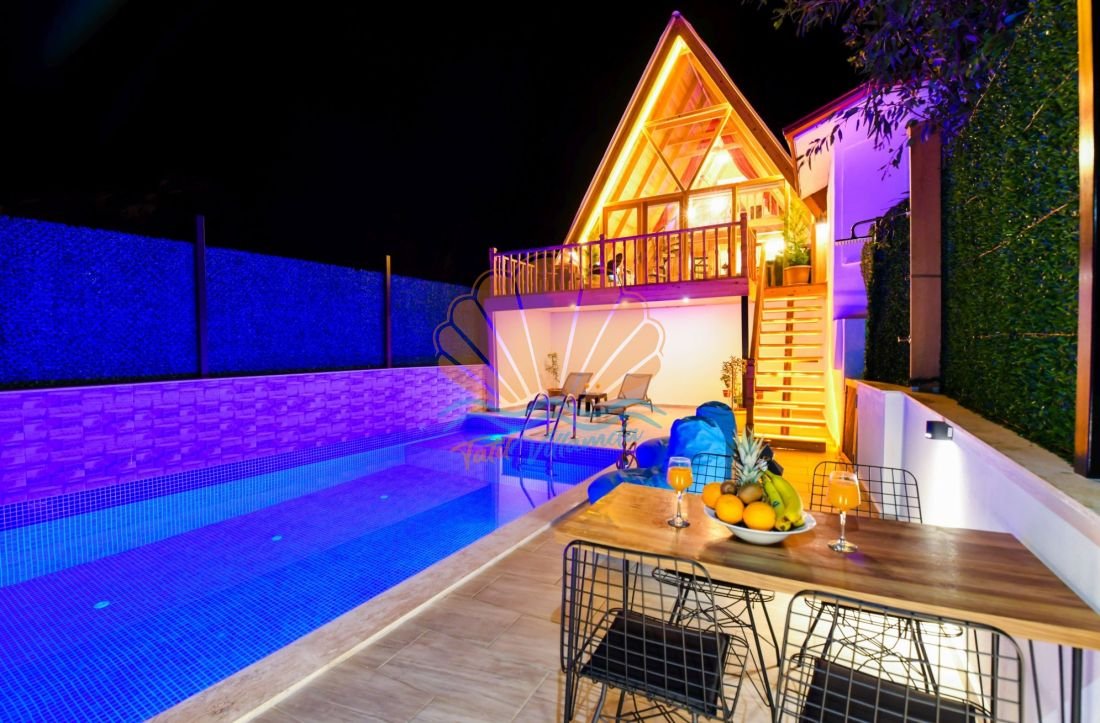 Kalkan’ın Ulugöl mevkiinde konumlanan, doğayla iç içe huzurlu bir tatil arayanlar için özel olarak tasarlanmış şık bir bungalov villadır. Korunaklı havuz alanı sayesinde özellikle balayı çiftleri ve gözlerden uzak tatil yapmak isteyen misafirler için ideal bir seçenek sunar. Tek yatak odalı ve 2 kişilik kapasiteye sahip olan villa, sade ve konforlu dizaynıyla dikkat çeker.
