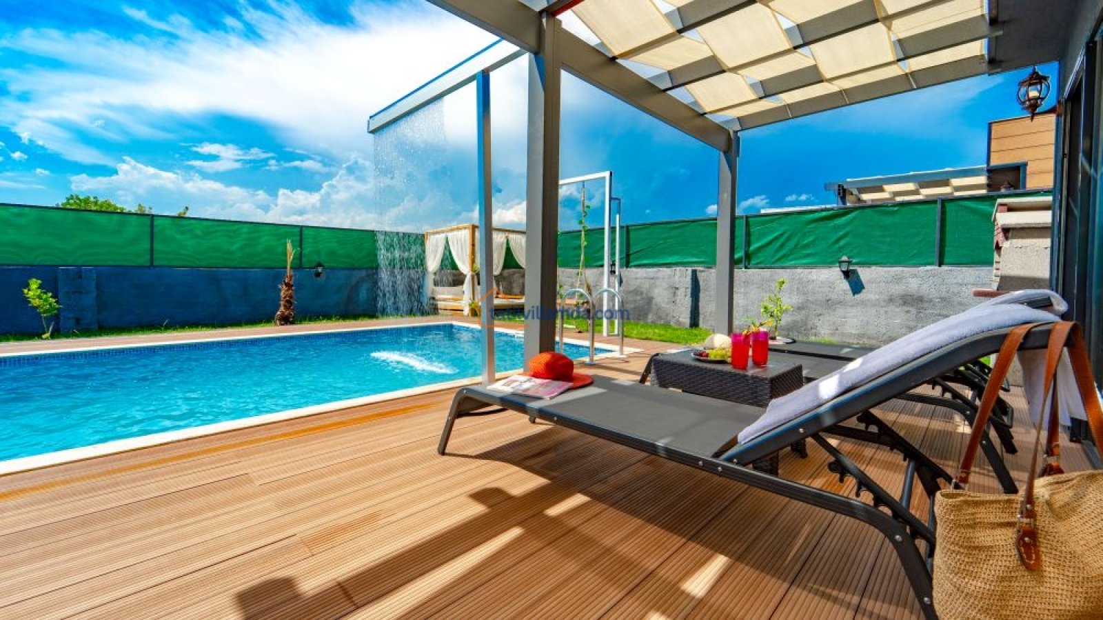 Korunaklı özel havuzu, dışarıdan görünmeyecek şekilde tasarlanmıştır, böylece tatilinizi huzur içinde geçirebilirsiniz. Havuz başında bir salıncak ve dinlenmek için keyifli bir ahşap loca kamelya mevcuttur. Gün boyu güneşlenip, akşamüstü serin bir içecekle gün batımını izleyebilirsiniz. Ayrıca villanın jakuzisi, tatilinize ekstra bir rahatlama ve lüks katacaktır.