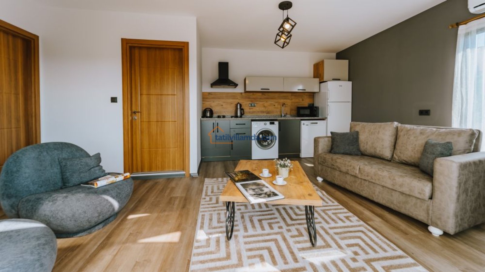 Villa, 1 yatak odası ve 1 salondan oluşur. Yatak odasında rahat bir çift kişilik yatak bulunurken, salondaki açılabilir koltuk 200×140 cm ölçülerinde olup, gerektiğinde ek yatak olarak kullanılabilir. Bu sayede villa, küçük aileler veya arkadaş grupları için de uygundur.