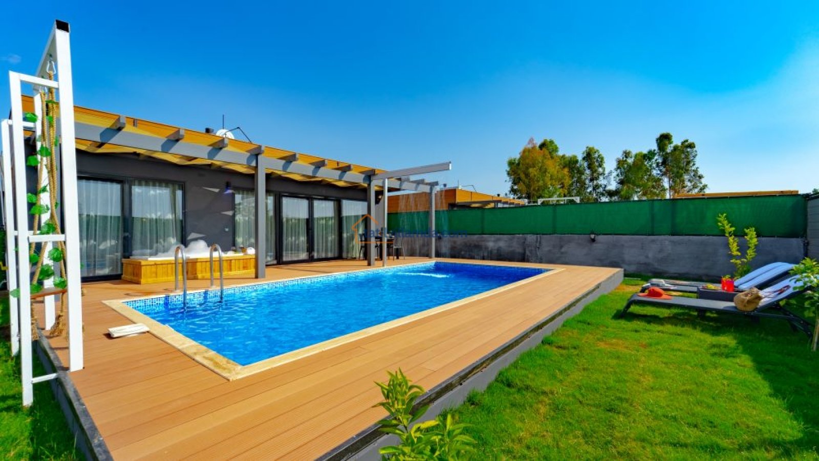 Korunaklı özel havuzu, dışarıdan görünmeyecek şekilde tasarlanmıştır, böylece tatilinizi huzur içinde geçirebilirsiniz. Havuz başında bir salıncak ve dinlenmek için keyifli bir ahşap loca kamelya mevcuttur. Gün boyu güneşlenip, akşamüstü serin bir içecekle gün batımını izleyebilirsiniz. Ayrıca villanın jakuzisi, tatilinize ekstra bir rahatlama ve lüks katacaktır.