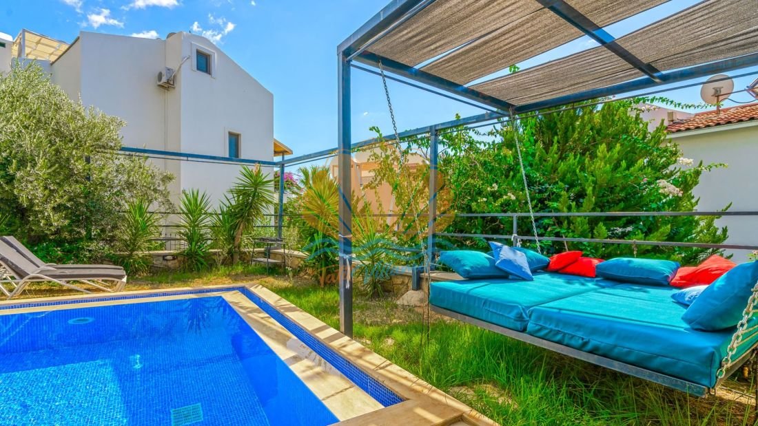 Özel ve geniş yüzme havuzuna sahip olan villamız, ferah bahçe alanıyla keyifli bir tatil atmosferi sunar. Havuz başında şezlonglar, şemsiye, konforlu bahçe oturma grubu, yemek masası, salıncak ve barbekü alanı bulunmaktadır. Gün boyu güneşin ve deniz manzarasının tadını çıkarabilir, akşam saatlerinde sevdiklerinizle birlikte barbekü keyfi yapabilirsiniz.