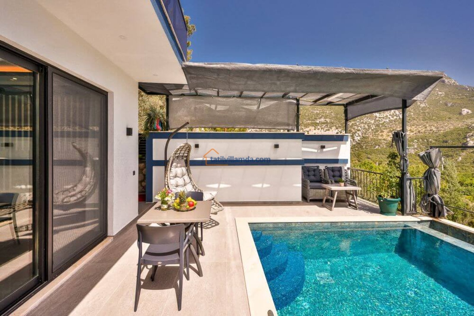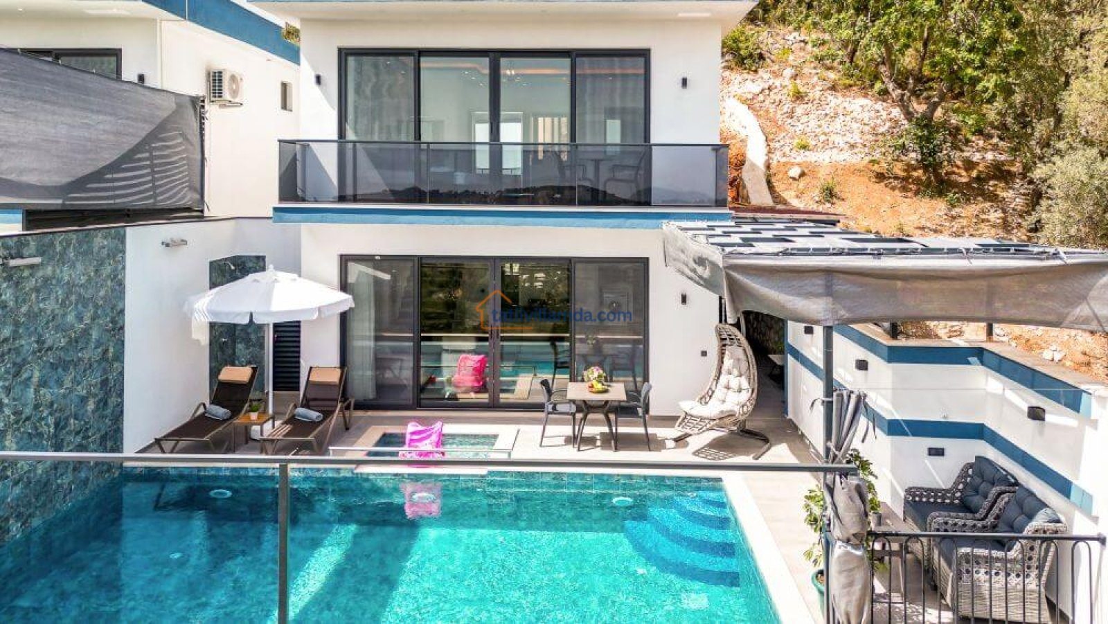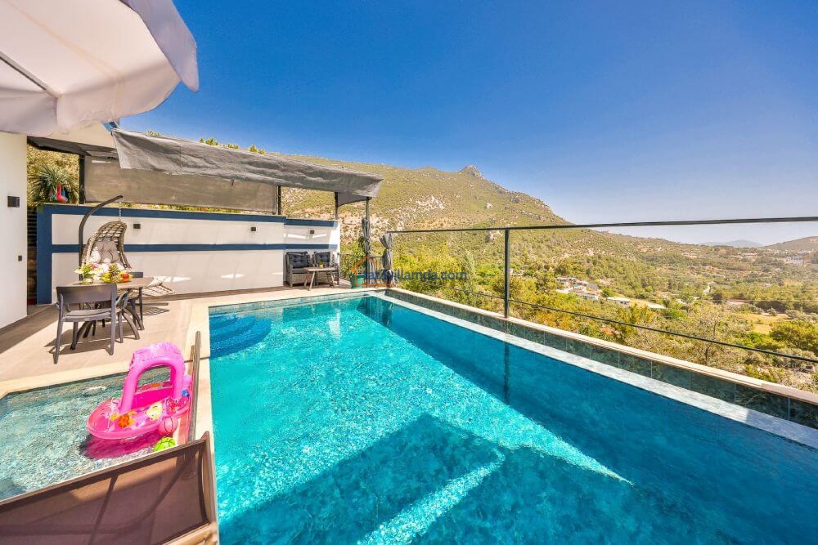 Villa Yaka Duo, Kalkan İslamlar’da, doğa manzaralı ve müstakil bir villa olarak konumlanmıştır. Bu modern ve şık tasarlanmış özel villa, ferah ve konforlu bir tatil deneyimi sunmak üzere özenle hazırlanmıştır. Müstakil havusu, 8 metre geniş korunaklı havuz alanıyla misafirlerine özel bir serinleme ve dinlenme imkânı sağlar. Jakuzili alan, yorgunluğunuzu atmanıza yardımcı olurken, barbekü/mangal alanı sevdiklerinizle keyifli vakit geçirmenizi mümkün kılar. Ayrıca, aileler için özel olarak düşünülmüş çocuk havuzu, küçük misafirlerin güvenli eğlencesini garanti eder.