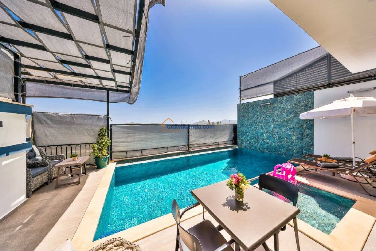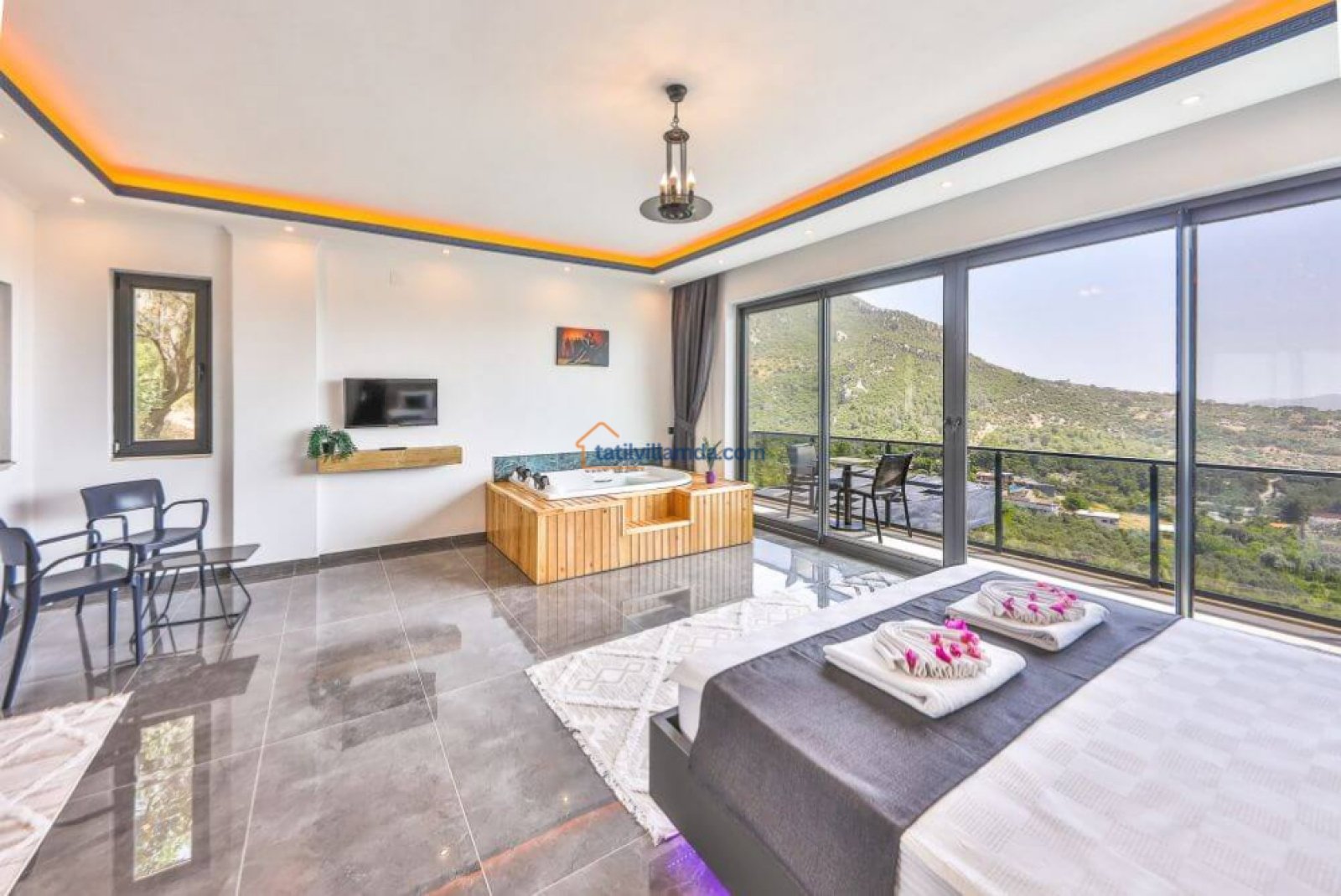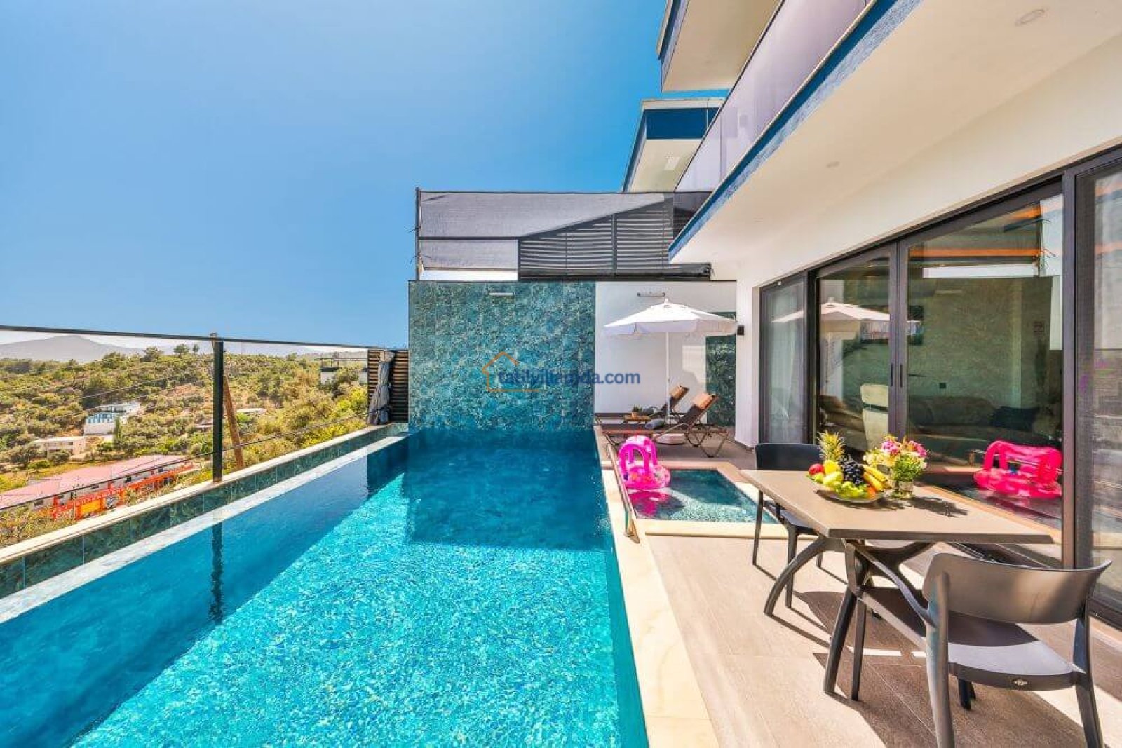 Villa Yaka Duo, Kalkan İslamlar’da, doğa manzaralı ve müstakil bir villa olarak konumlanmıştır. Bu modern ve şık tasarlanmış özel villa, ferah ve konforlu bir tatil deneyimi sunmak üzere özenle hazırlanmıştır. Müstakil havusu, 8 metre geniş korunaklı havuz alanıyla misafirlerine özel bir serinleme ve dinlenme imkânı sağlar. Jakuzili alan, yorgunluğunuzu atmanıza yardımcı olurken, barbekü/mangal alanı sevdiklerinizle keyifli vakit geçirmenizi mümkün kılar. Ayrıca, aileler için özel olarak düşünülmüş çocuk havuzu, küçük misafirlerin güvenli eğlencesini garanti eder.